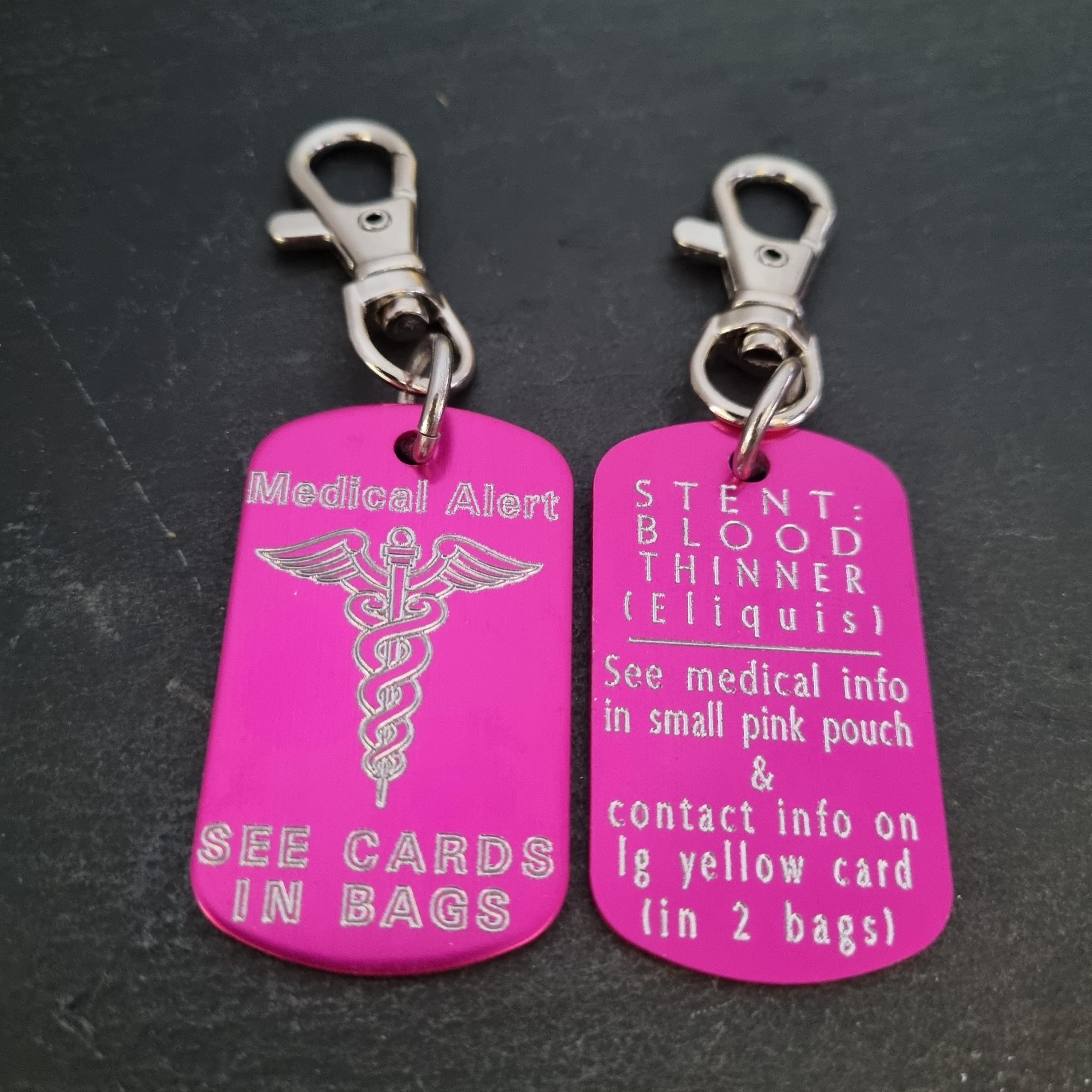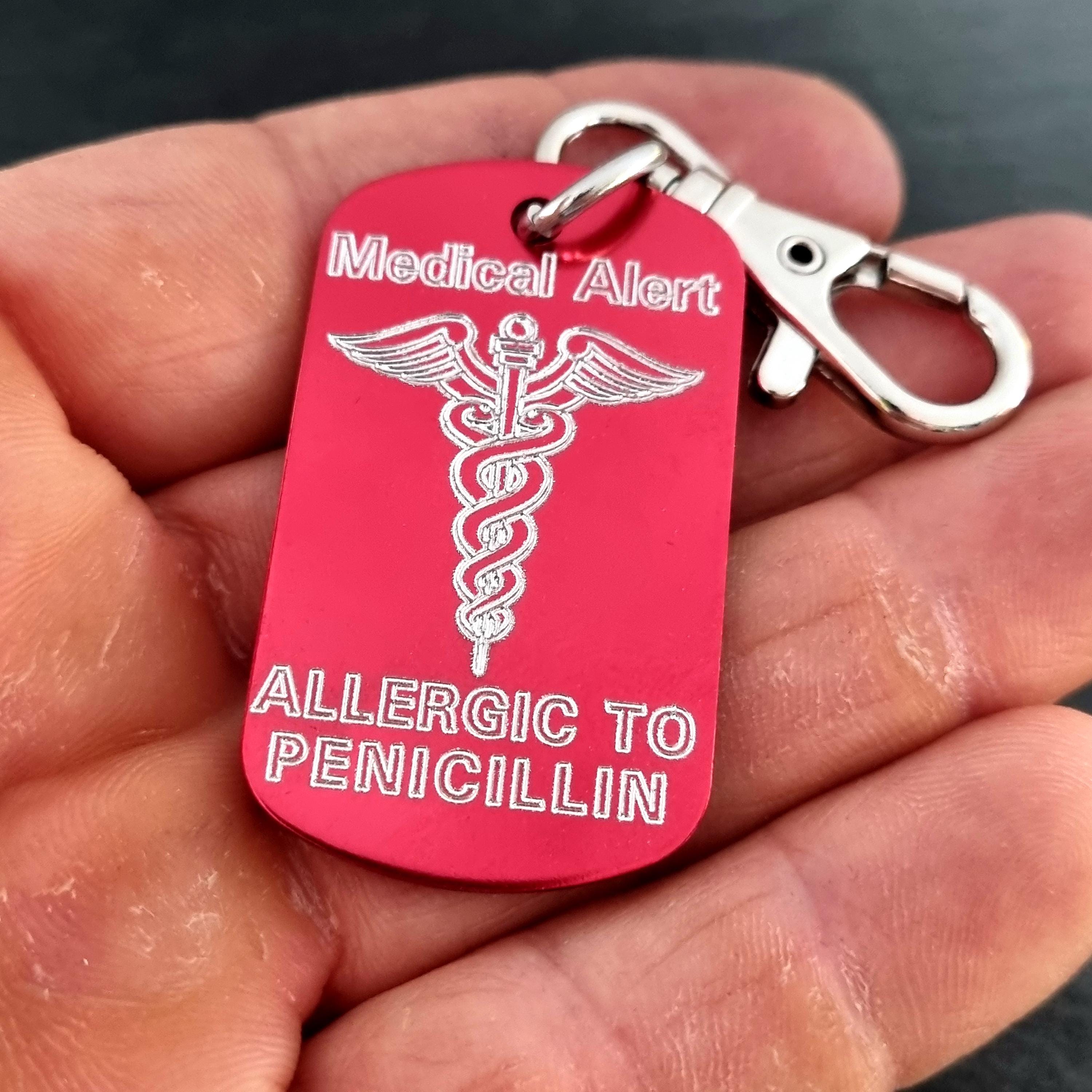 Personalized Keychain Medical Alert Tag in aluminum with personalized Medical Alert