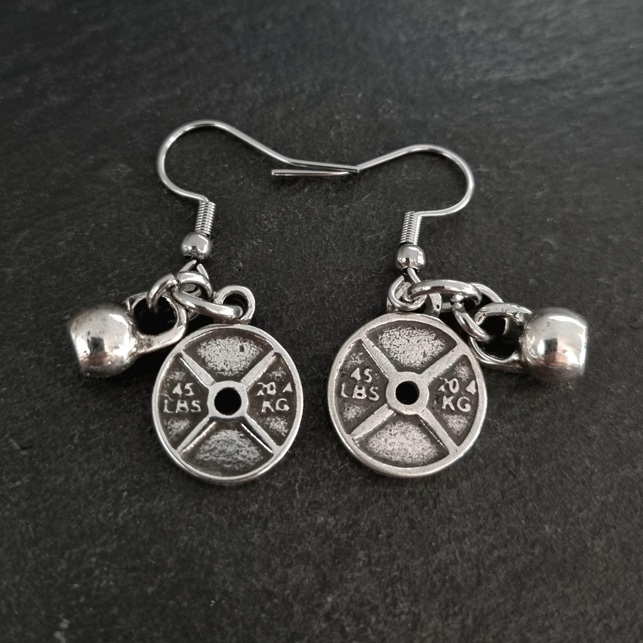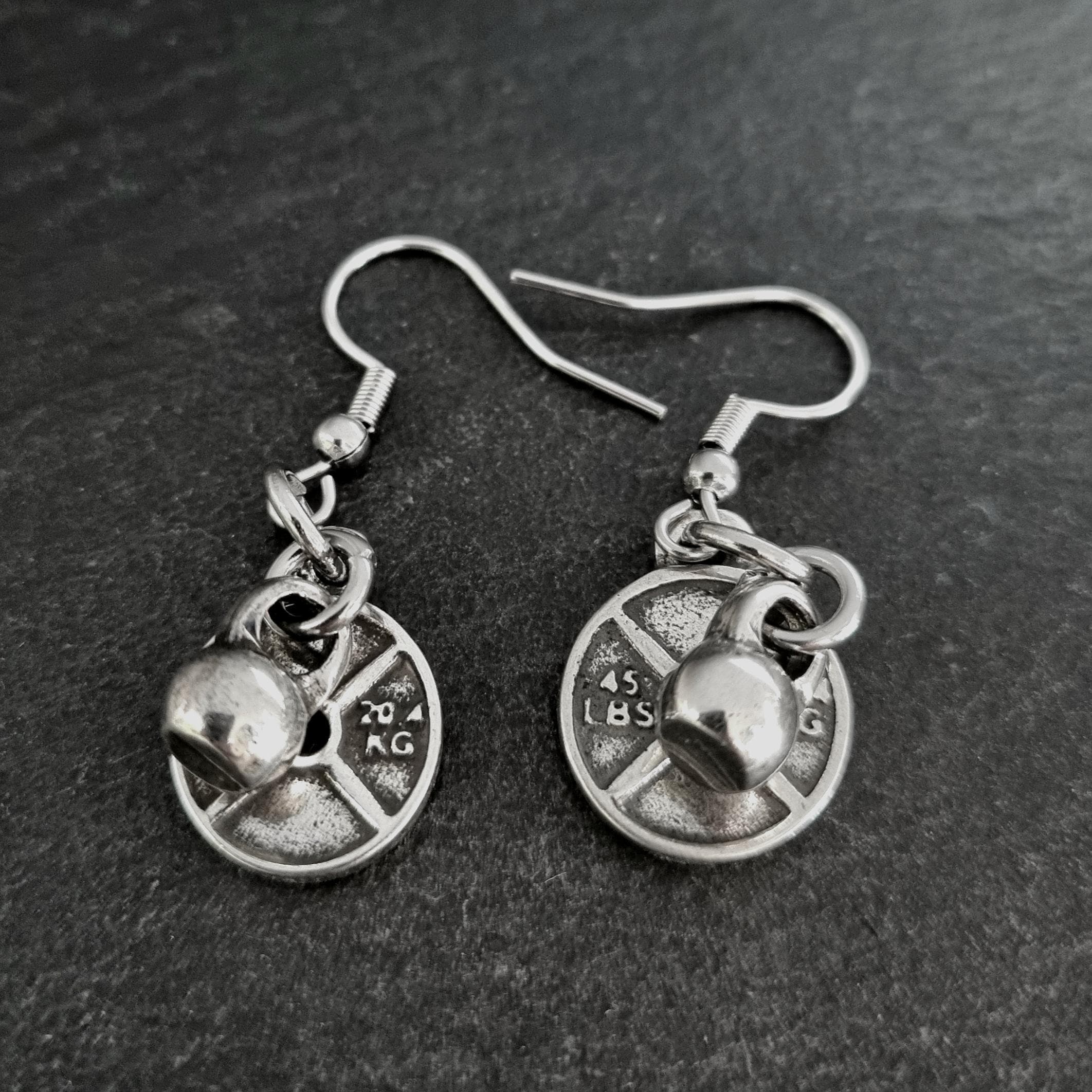 Fitness Weight Plates Earrings Small 45lbs & Kettlebell Workout by Wod & Fit