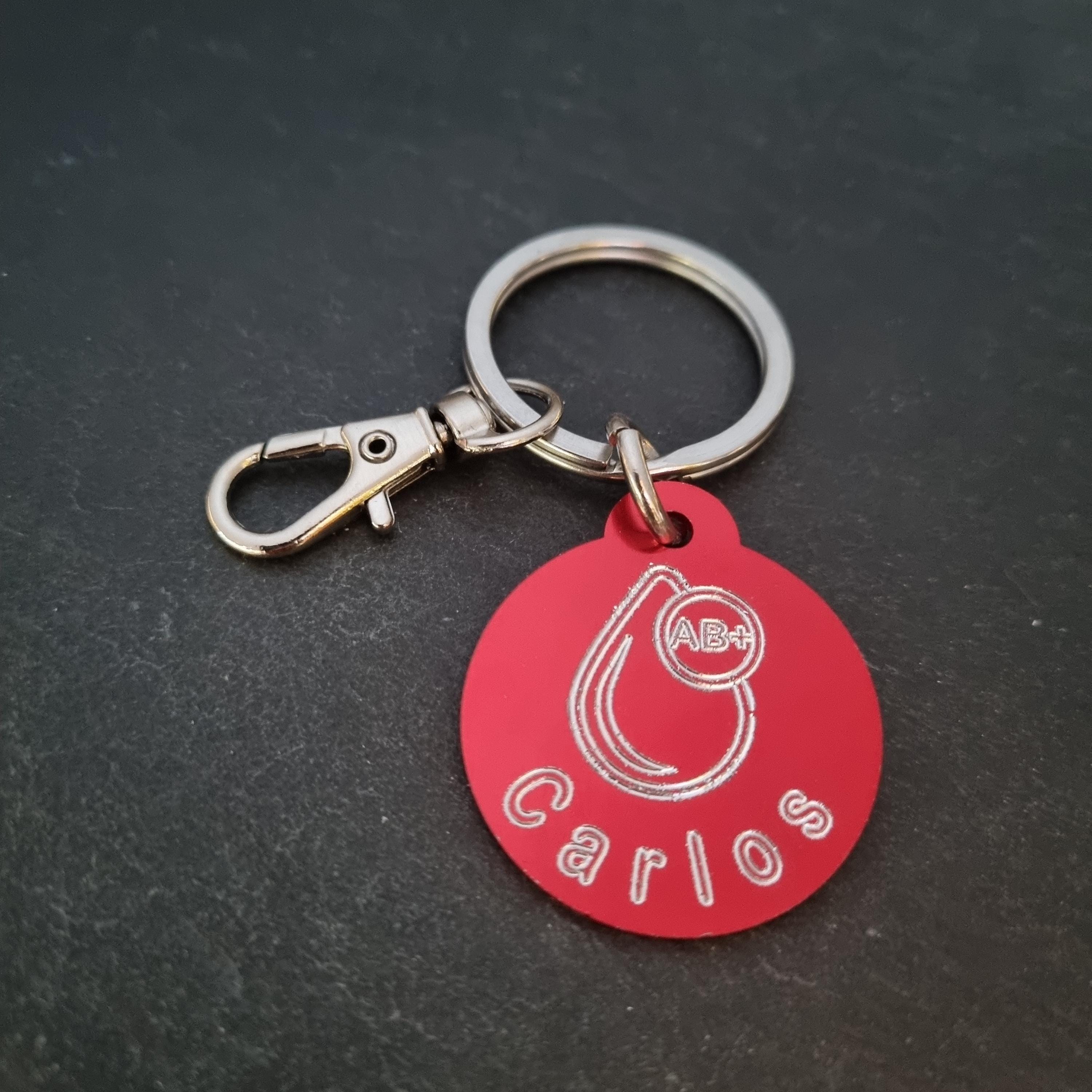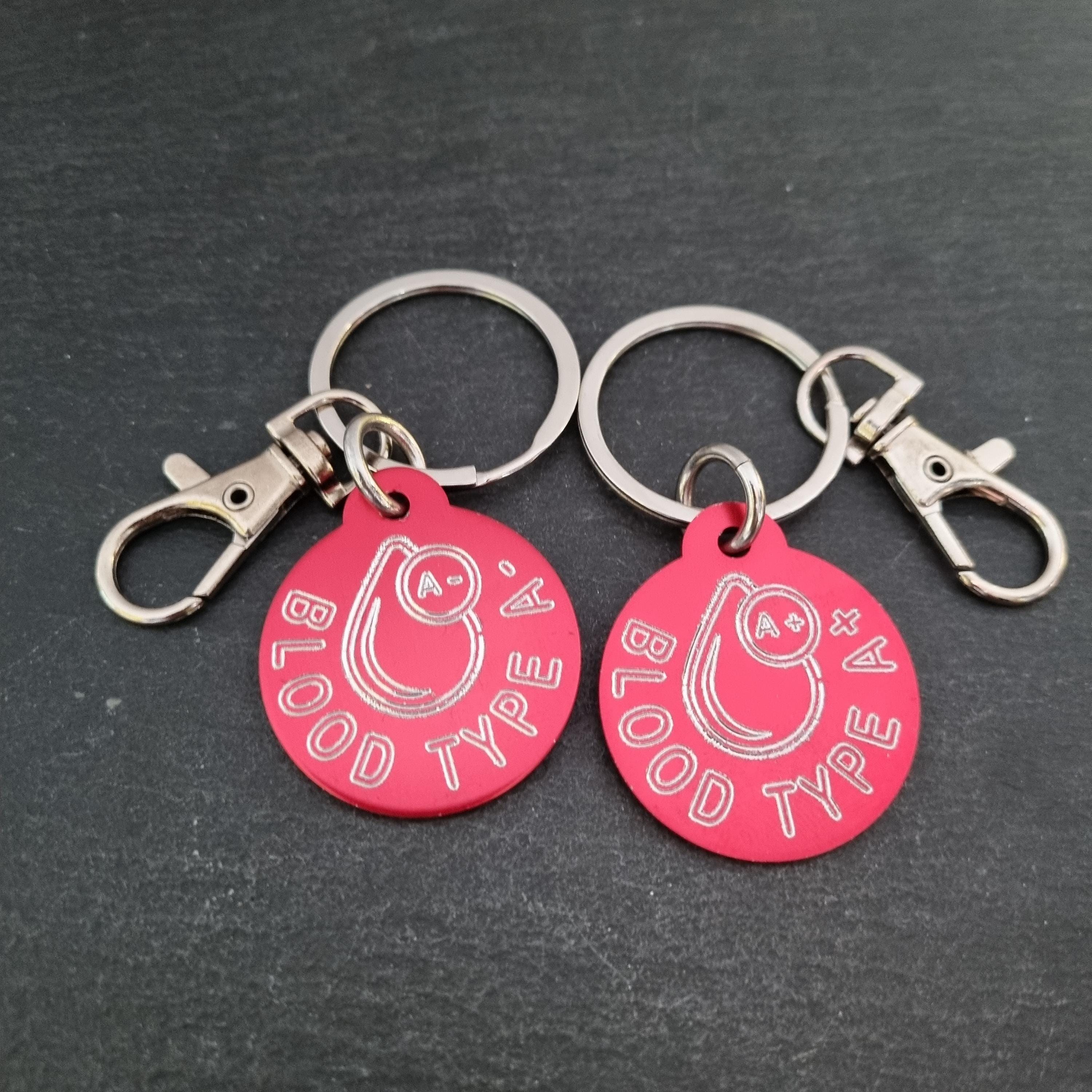 Keyring Blood Type, Organ Donor, Blood Thinners, Customizable very resistant light aluminum blood group keychain, Medical identification tag, Medical Alert, for Military, Motorcyclists, Biker, Pets, Coordinates, Logo, Luggage recognition, Engraved plate, No laser, Diamond engraving