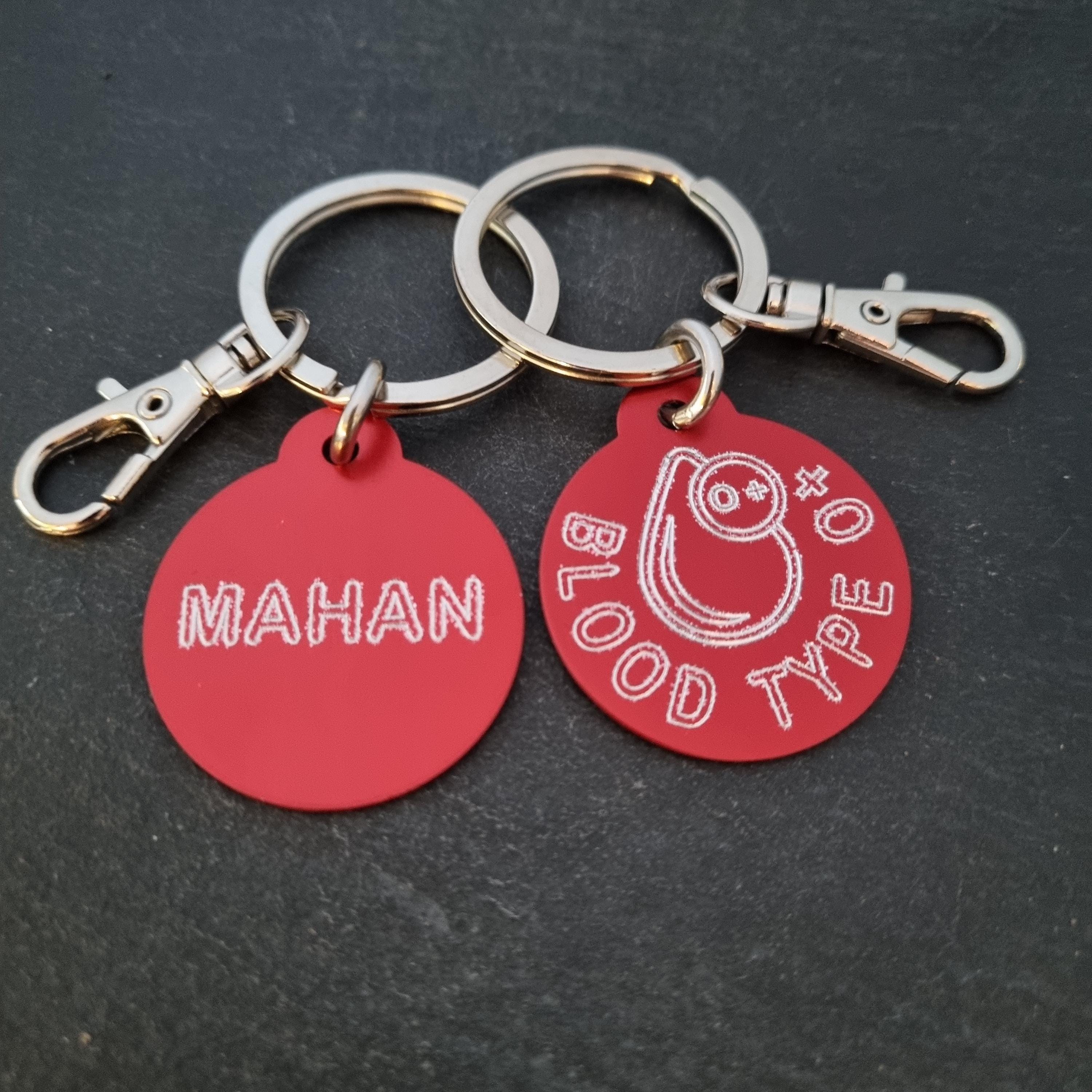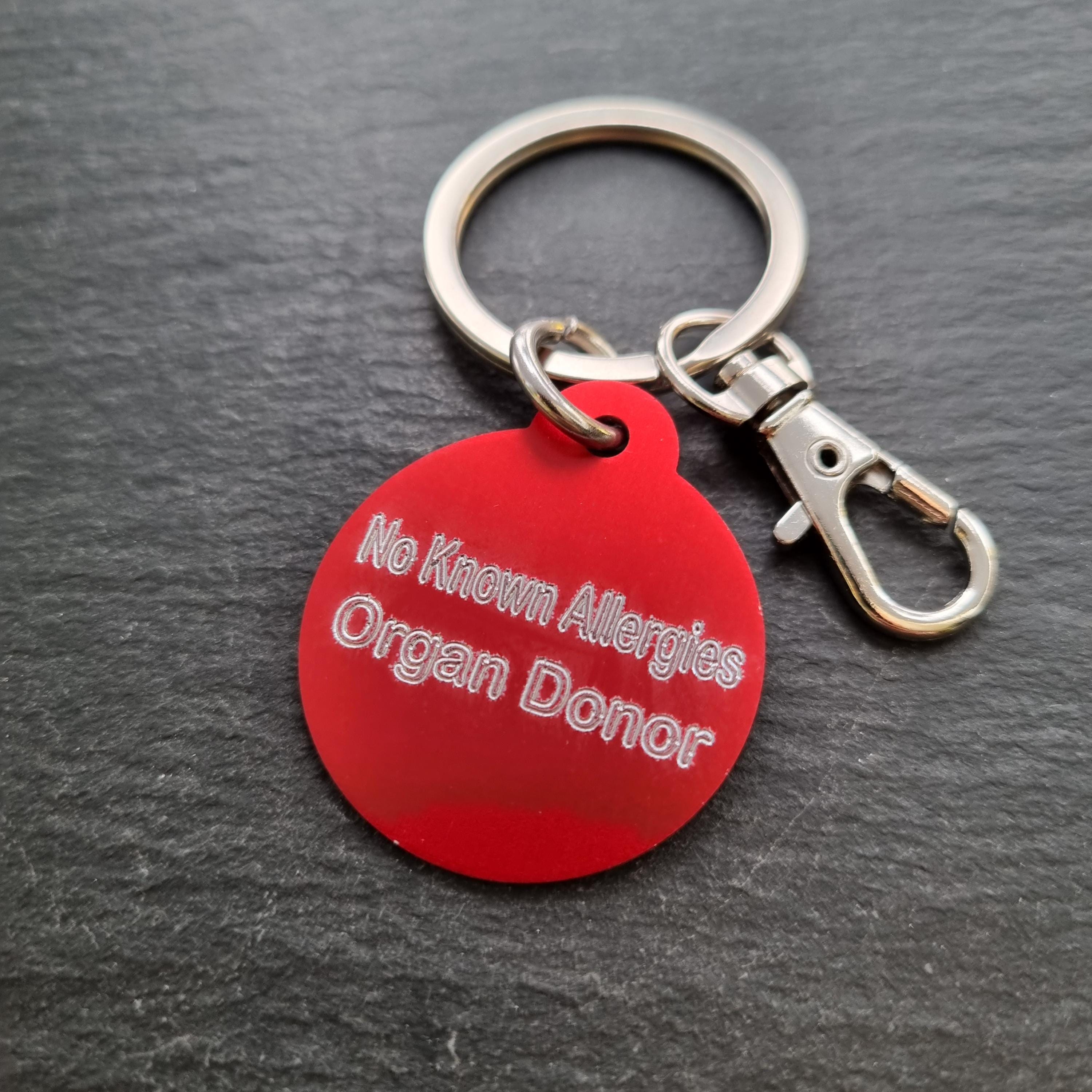 Personalized Key Ring Blood Group Type , Medical id Emergency Keychain Safety Information Diabetic / Allergy / Alzheimer, Blood Thinner, Organ Donor