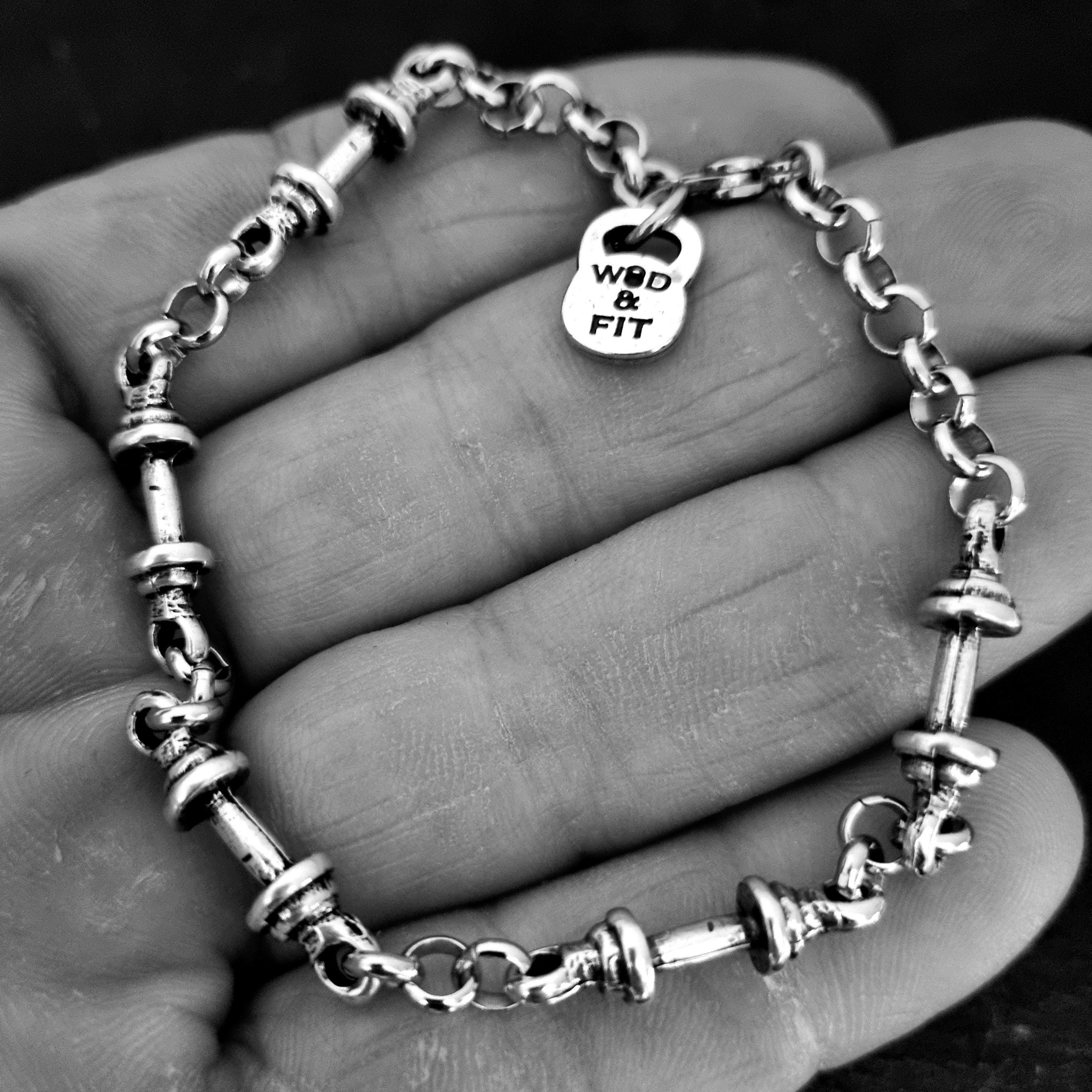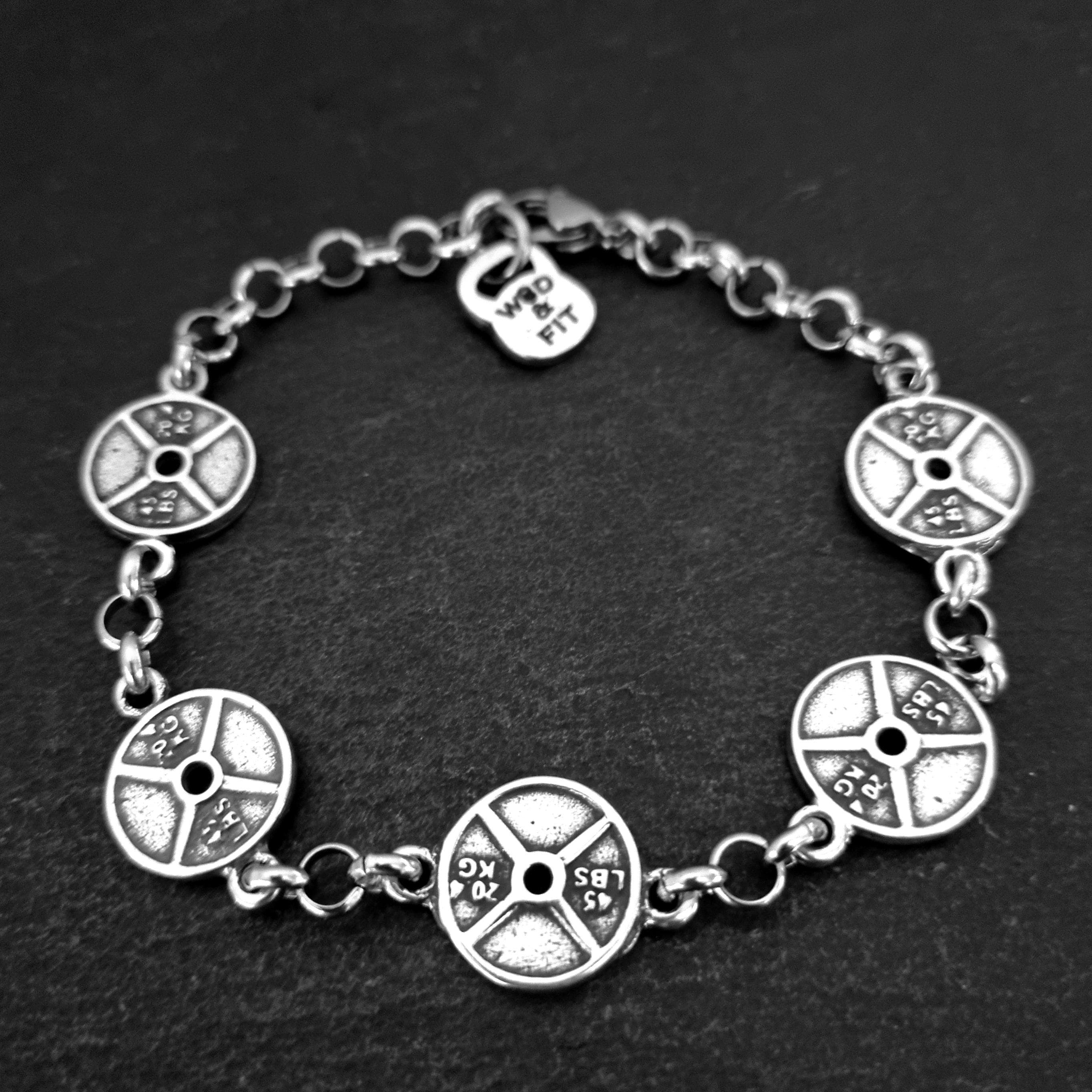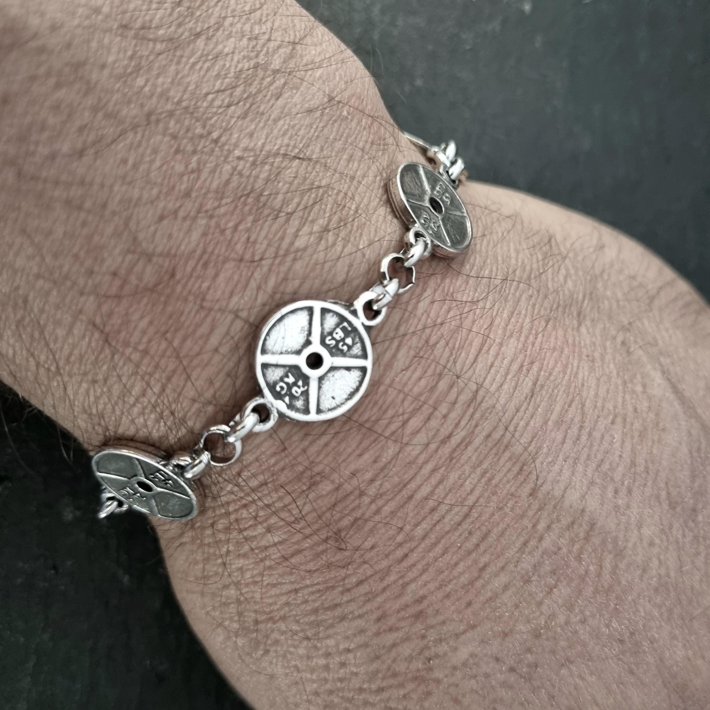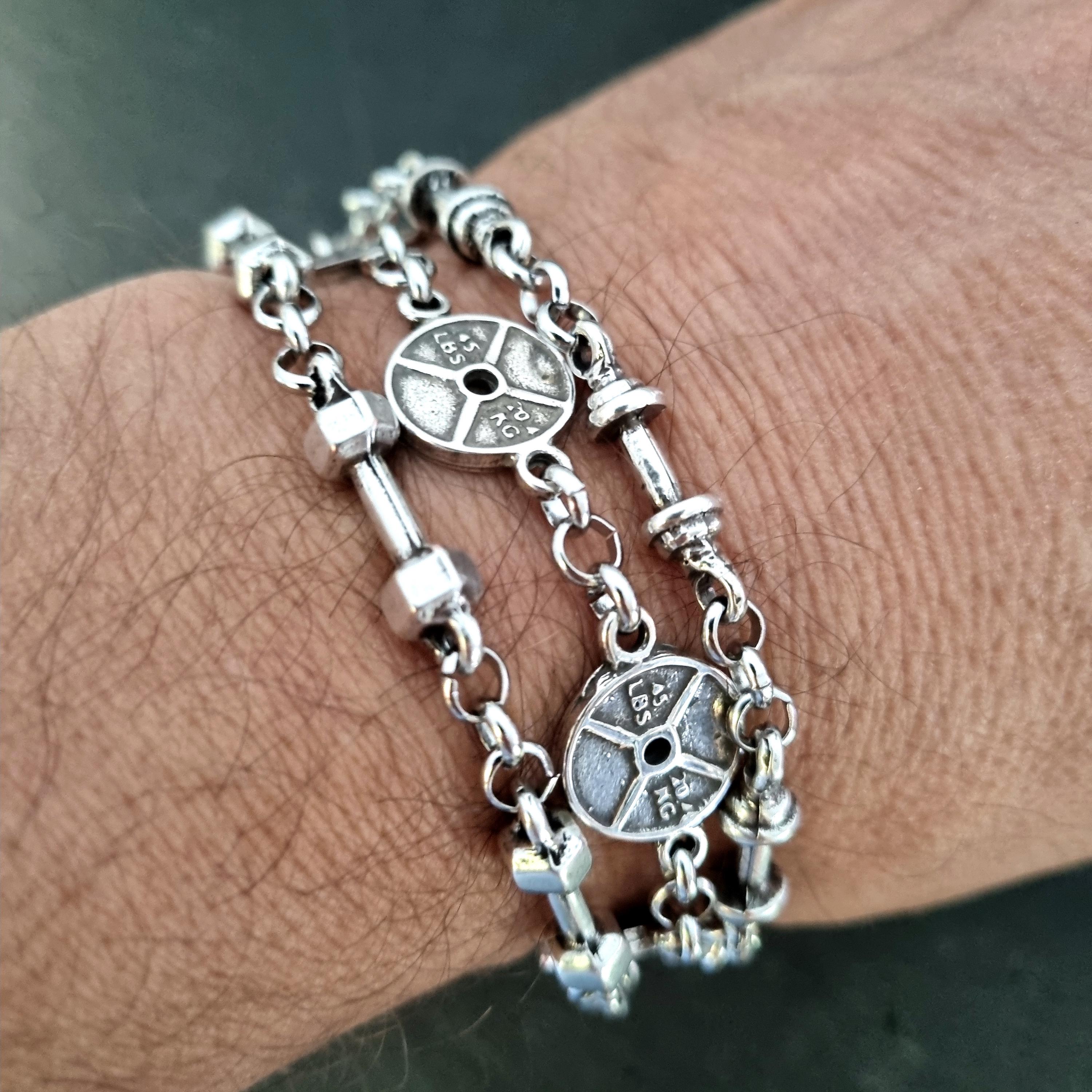 ⭐Gym Bracelet stainless steel chain with 5 silver plated Weights.