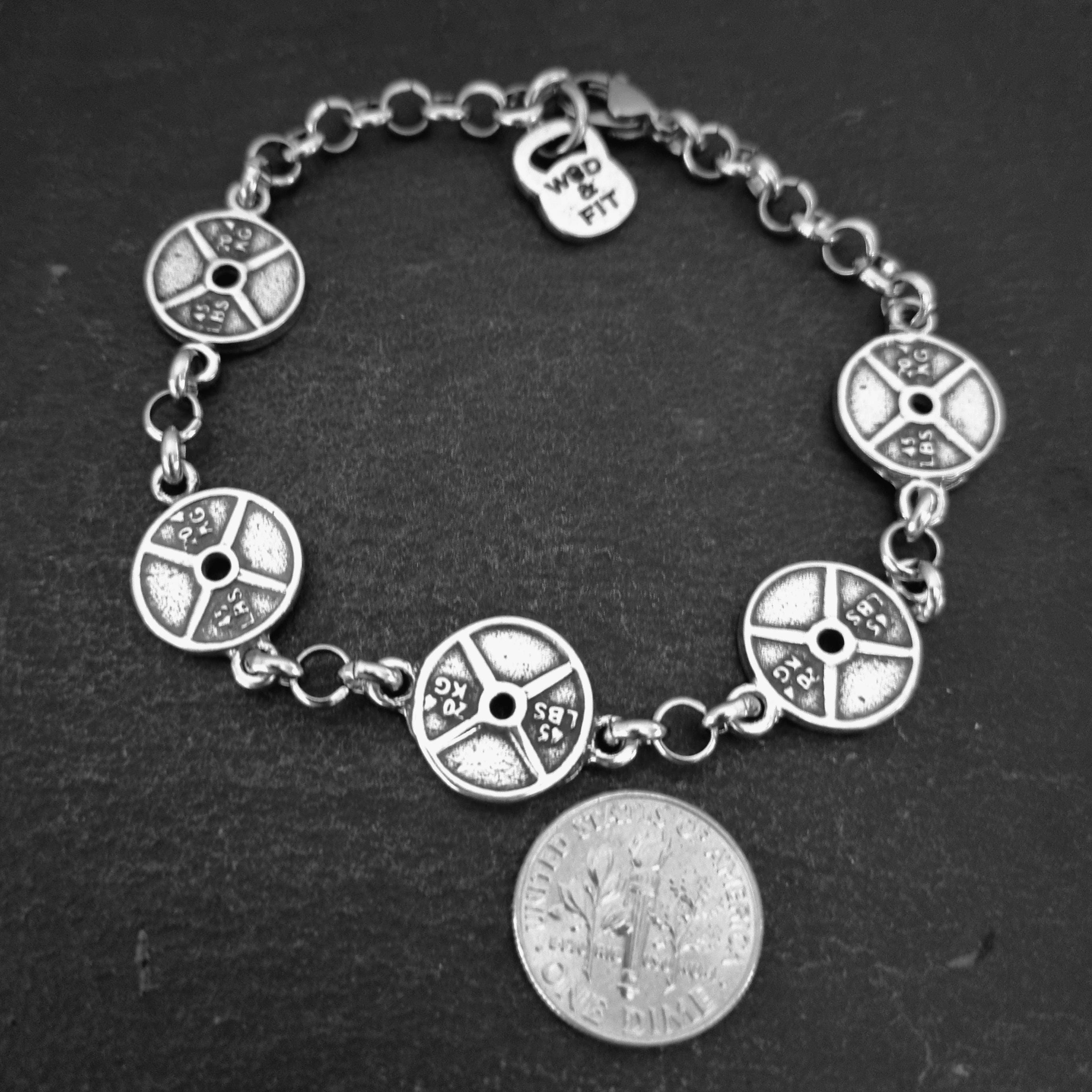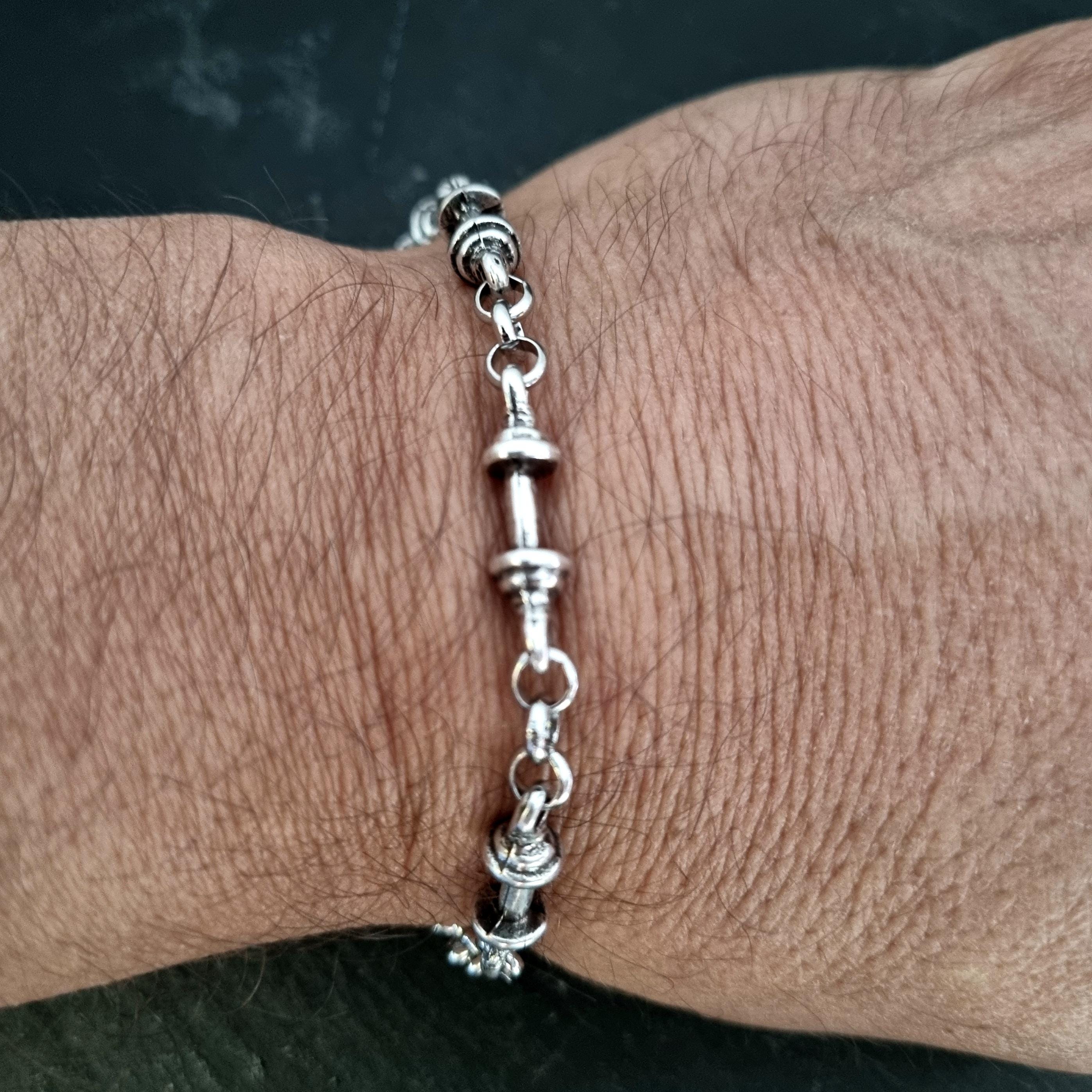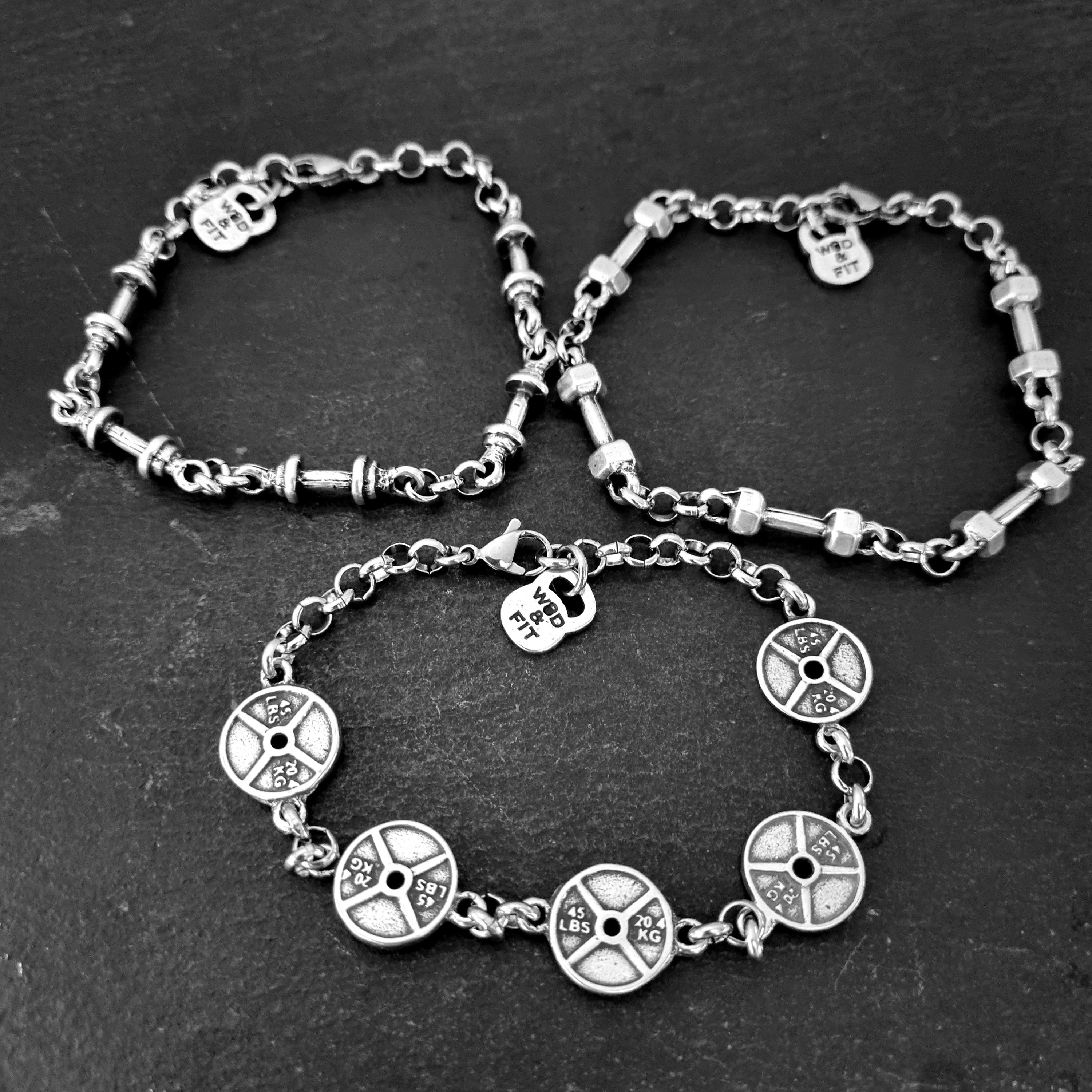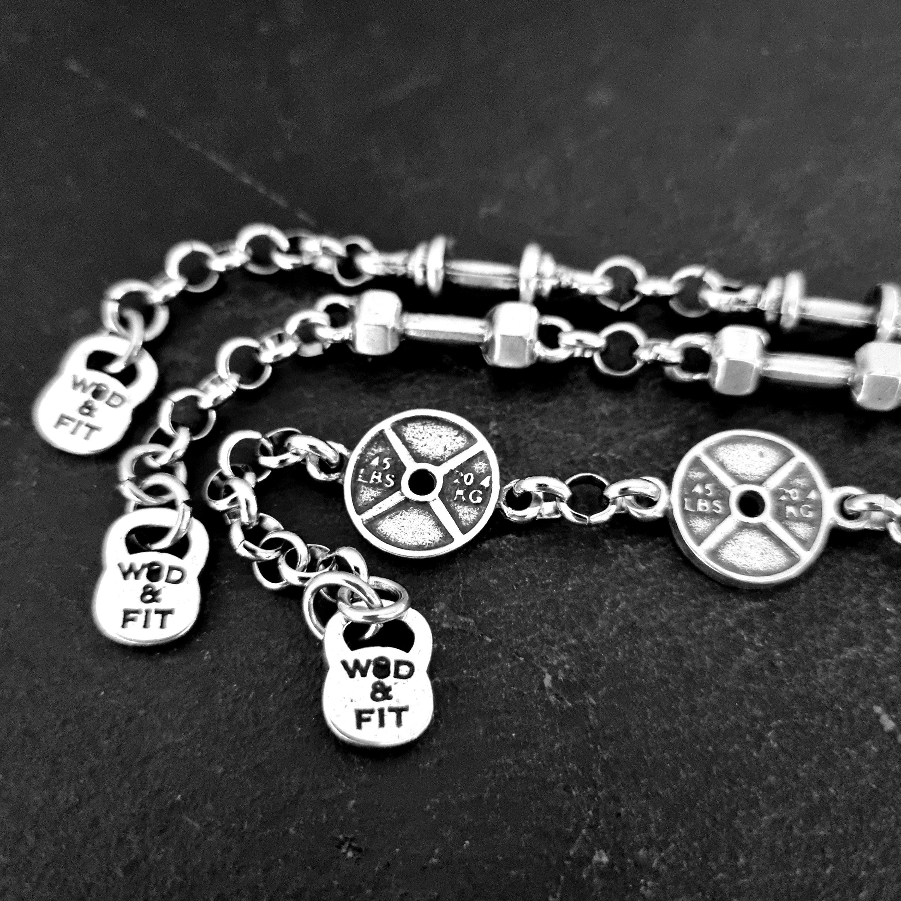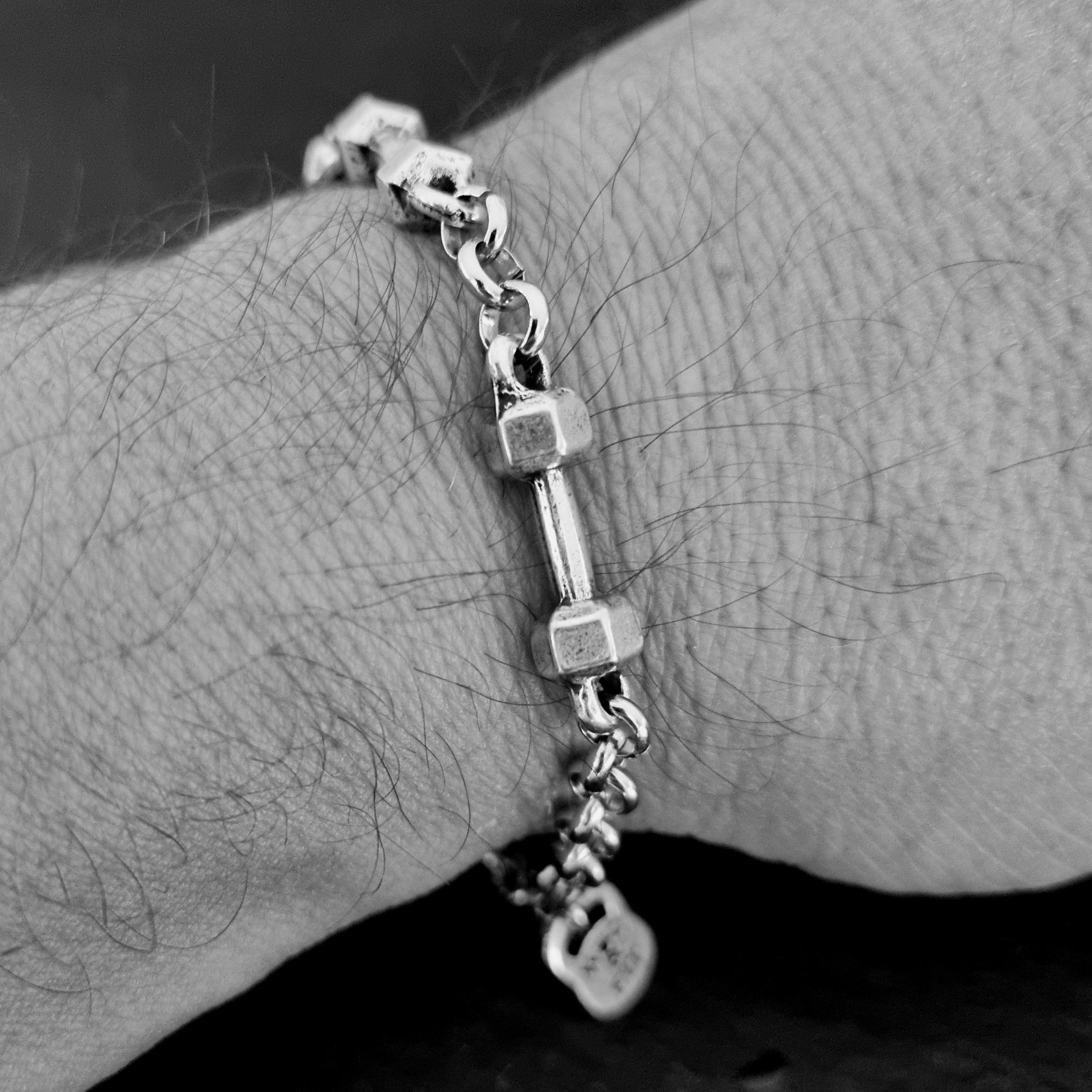 ⭐Gym Bracelet stainless steel chain with 5 silver plated Weights.