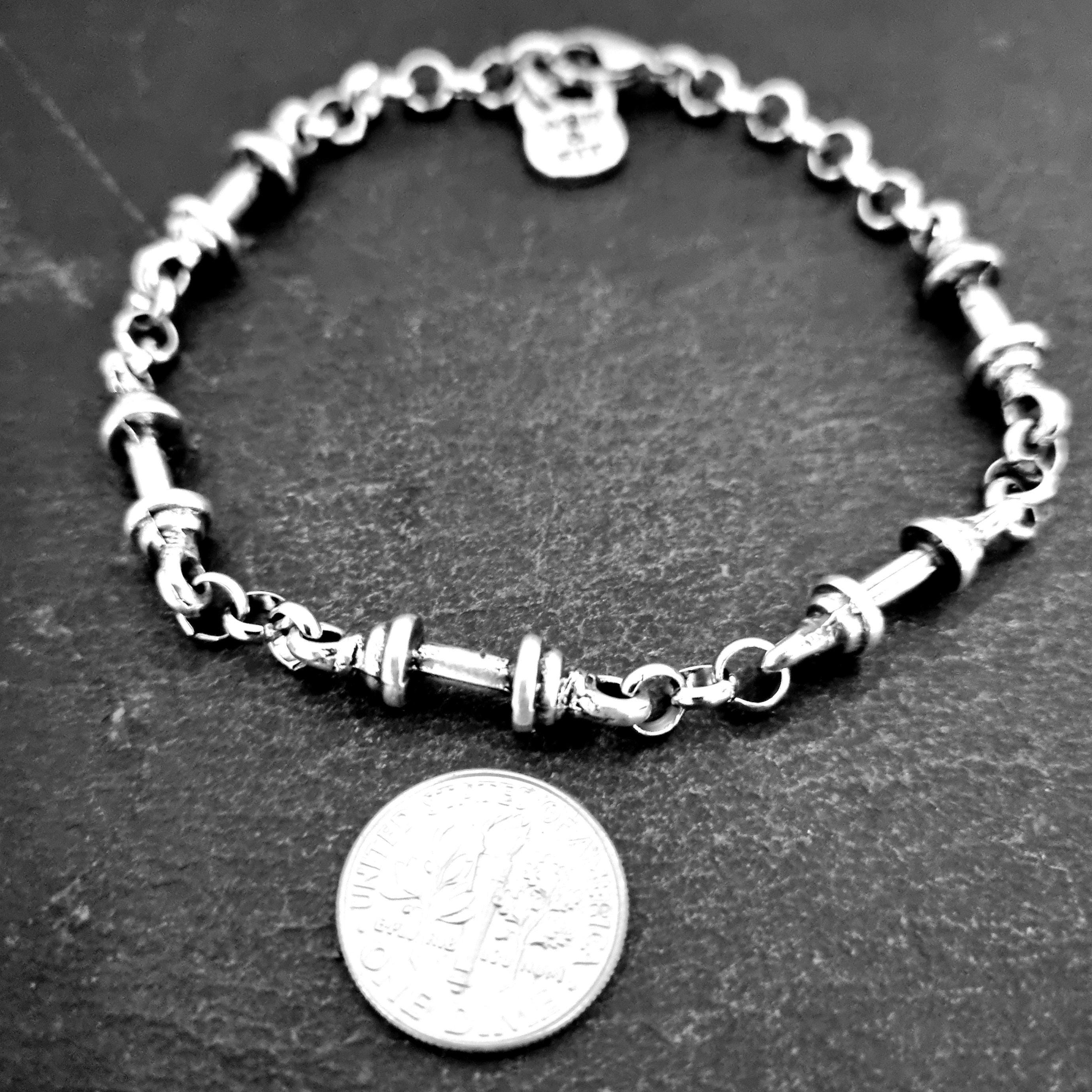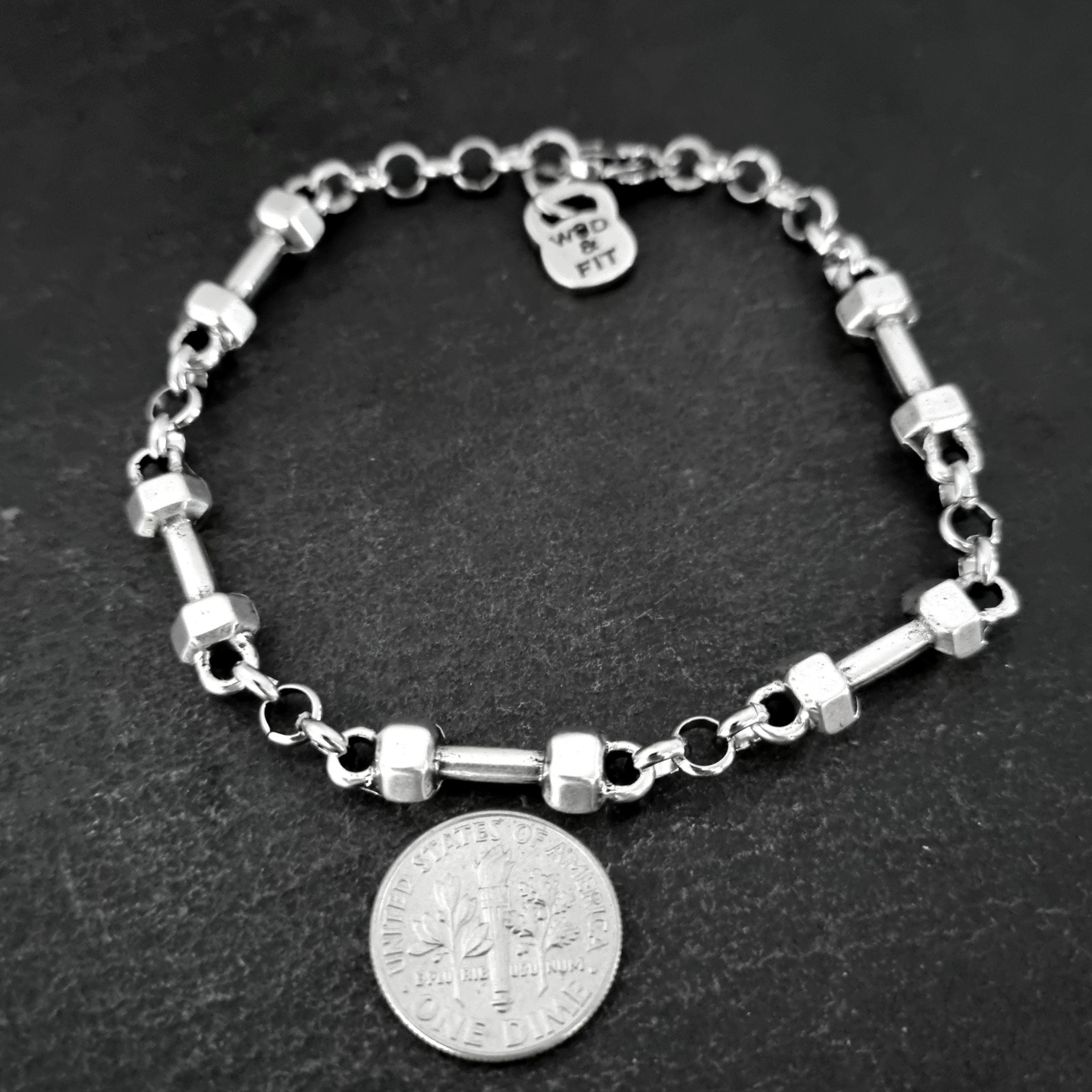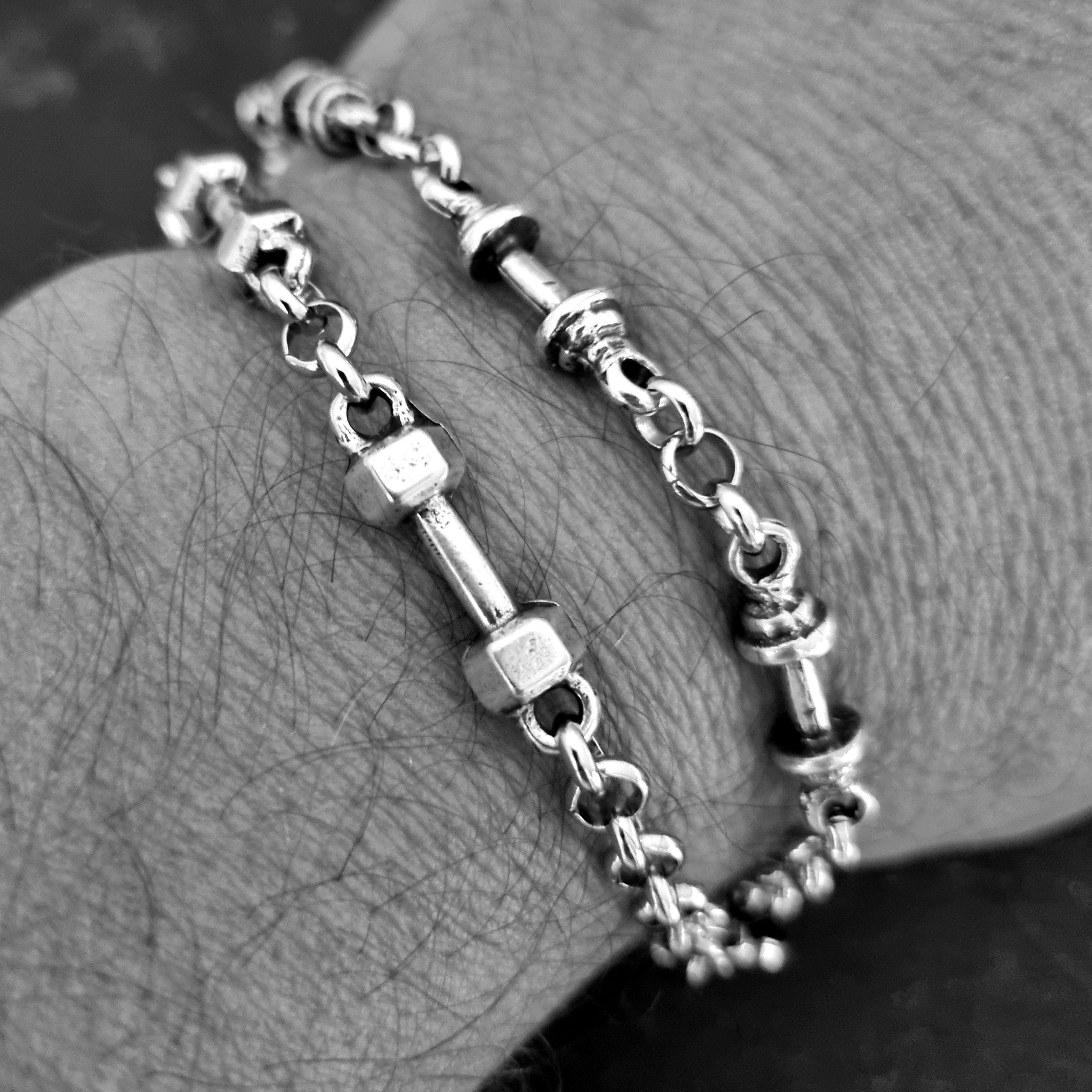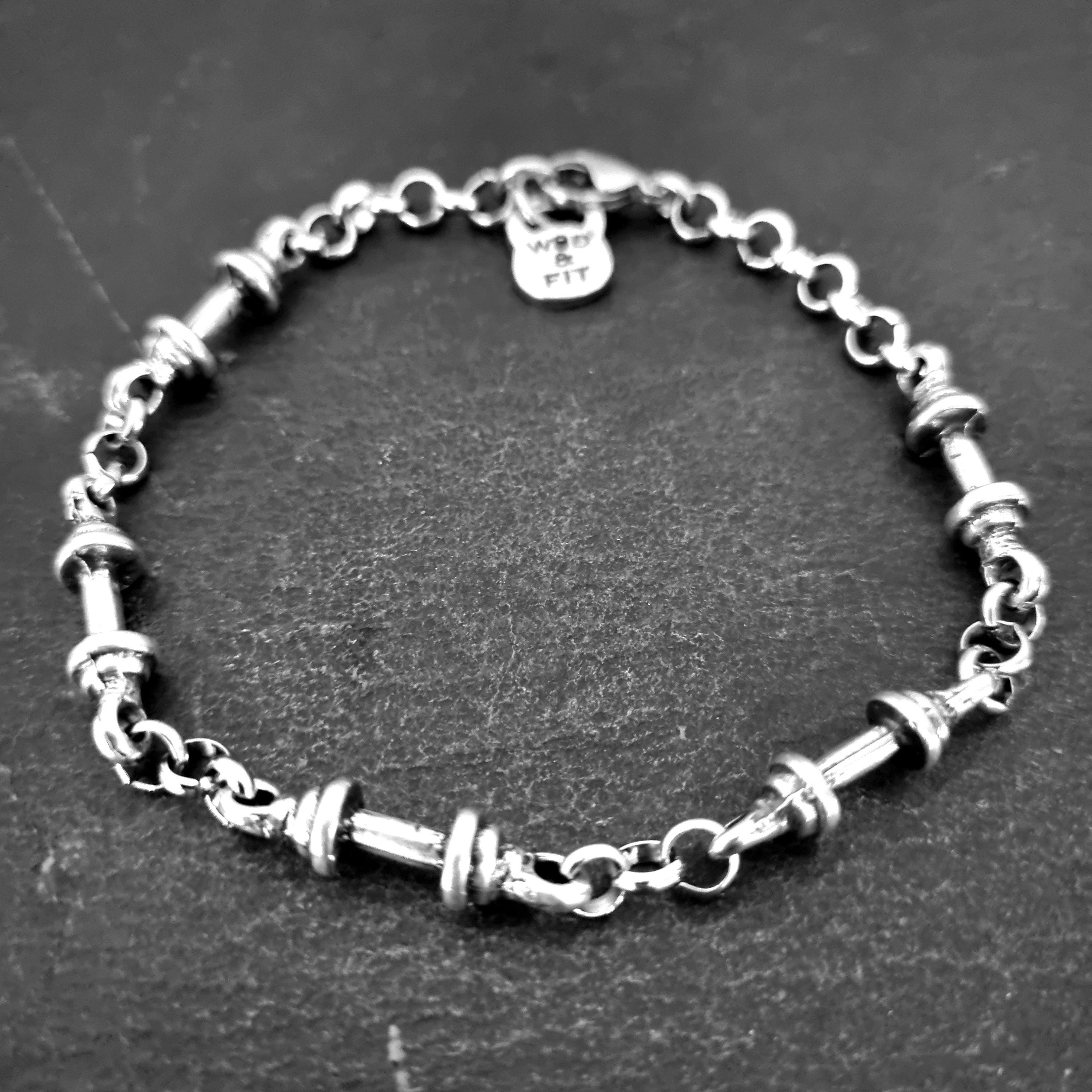 ⭐Gym Bracelet stainless steel chain with 5 silver plated Weights.