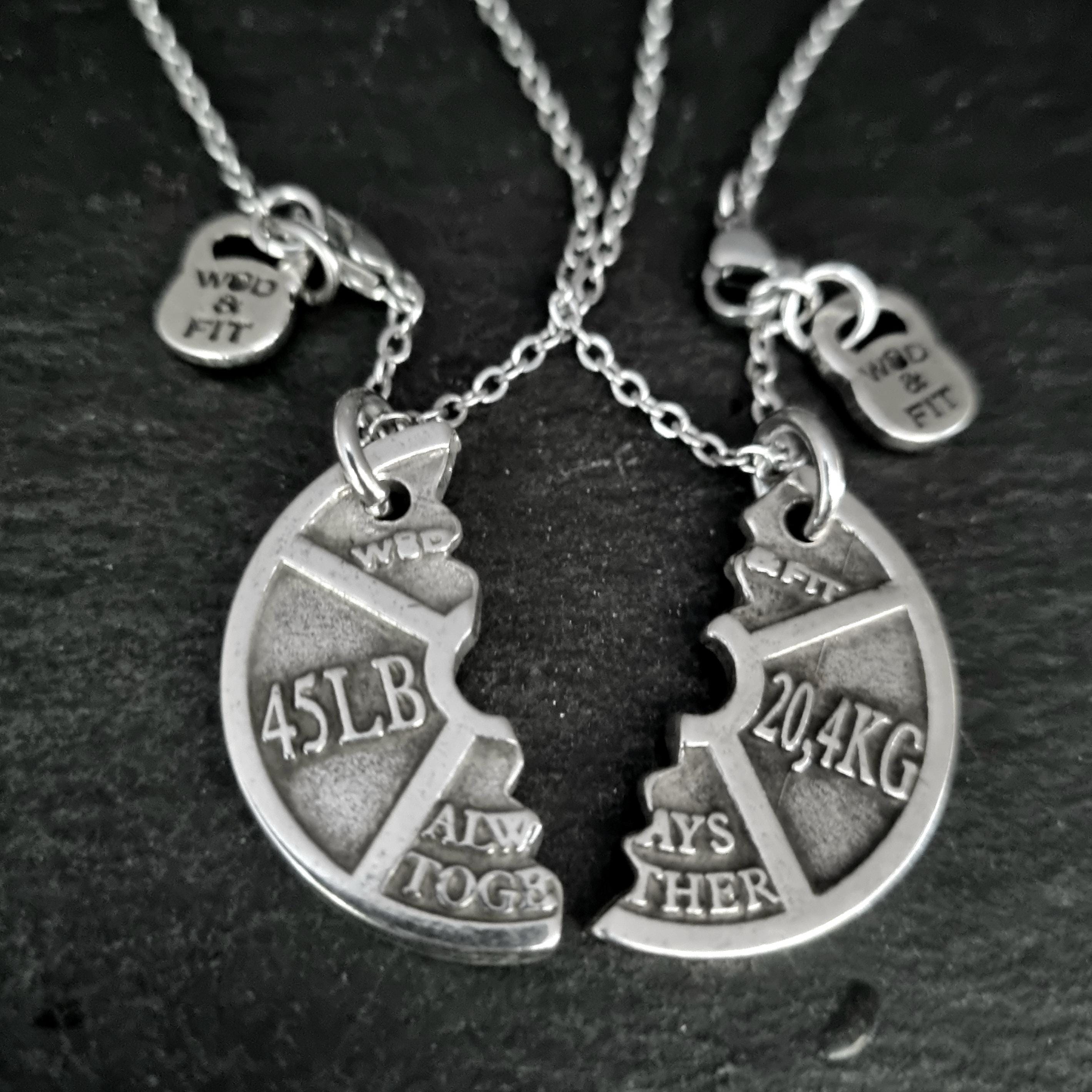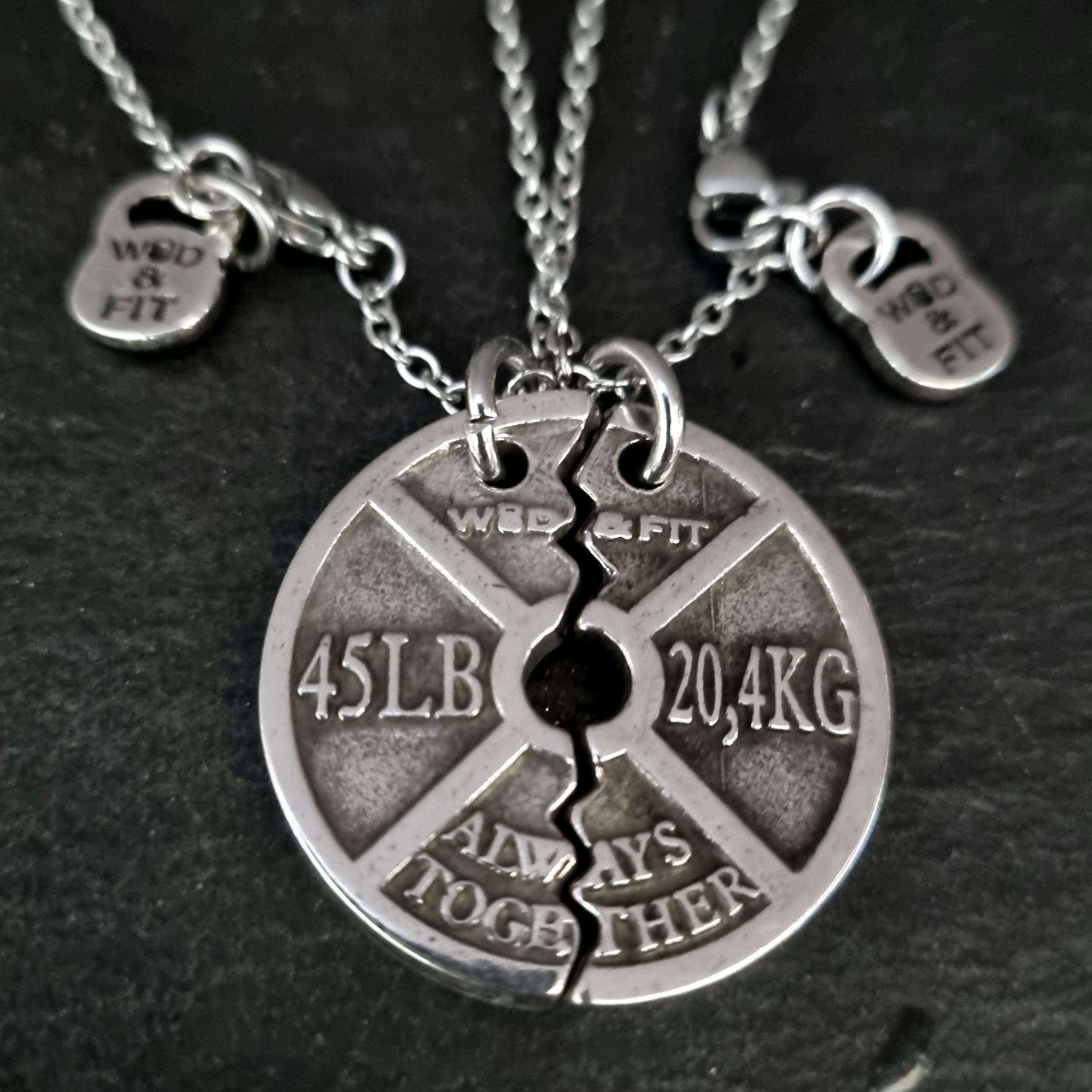 Couple Necklaces Weight Plate 45lbs Always Together. Train Together/ Stay Together by Wod & Fit