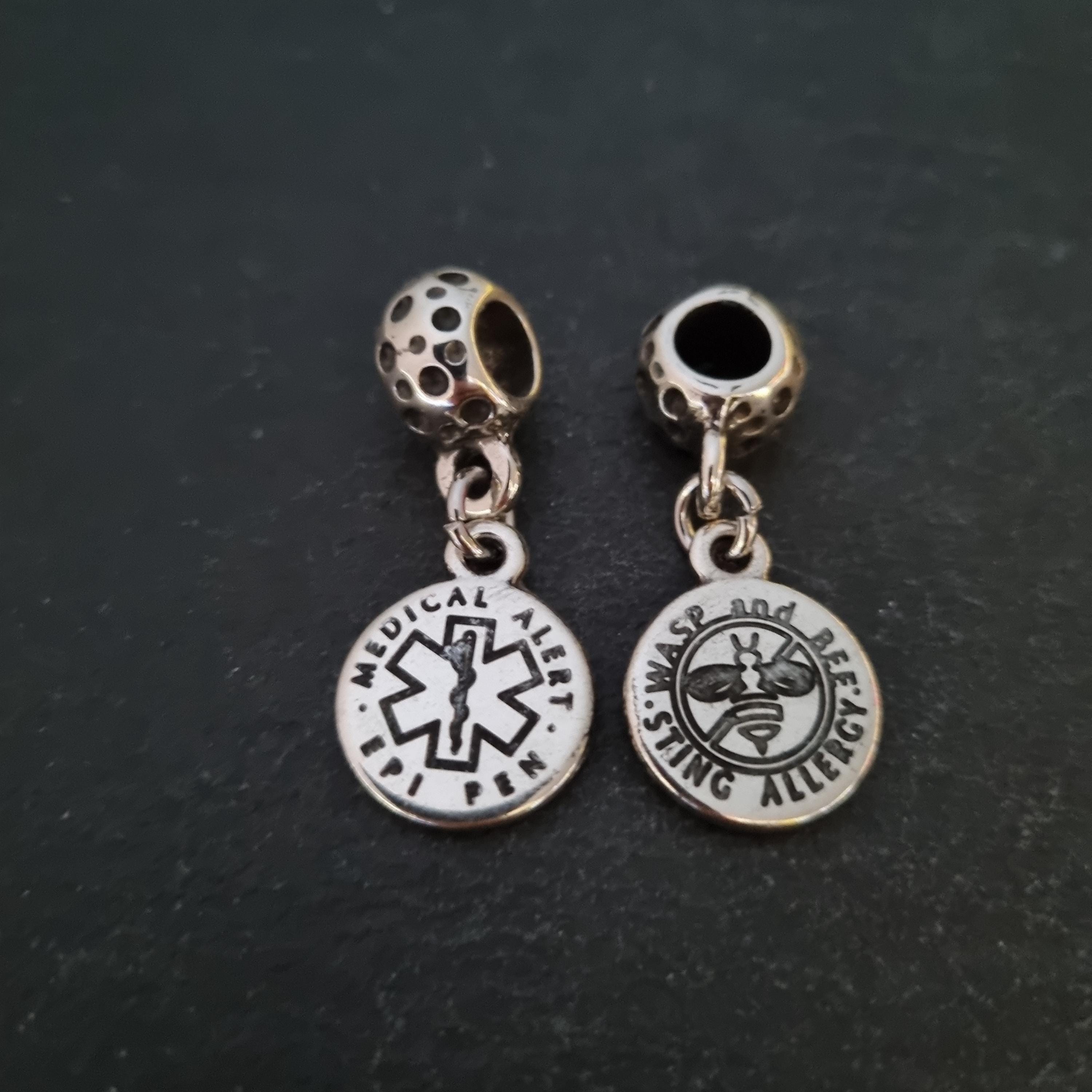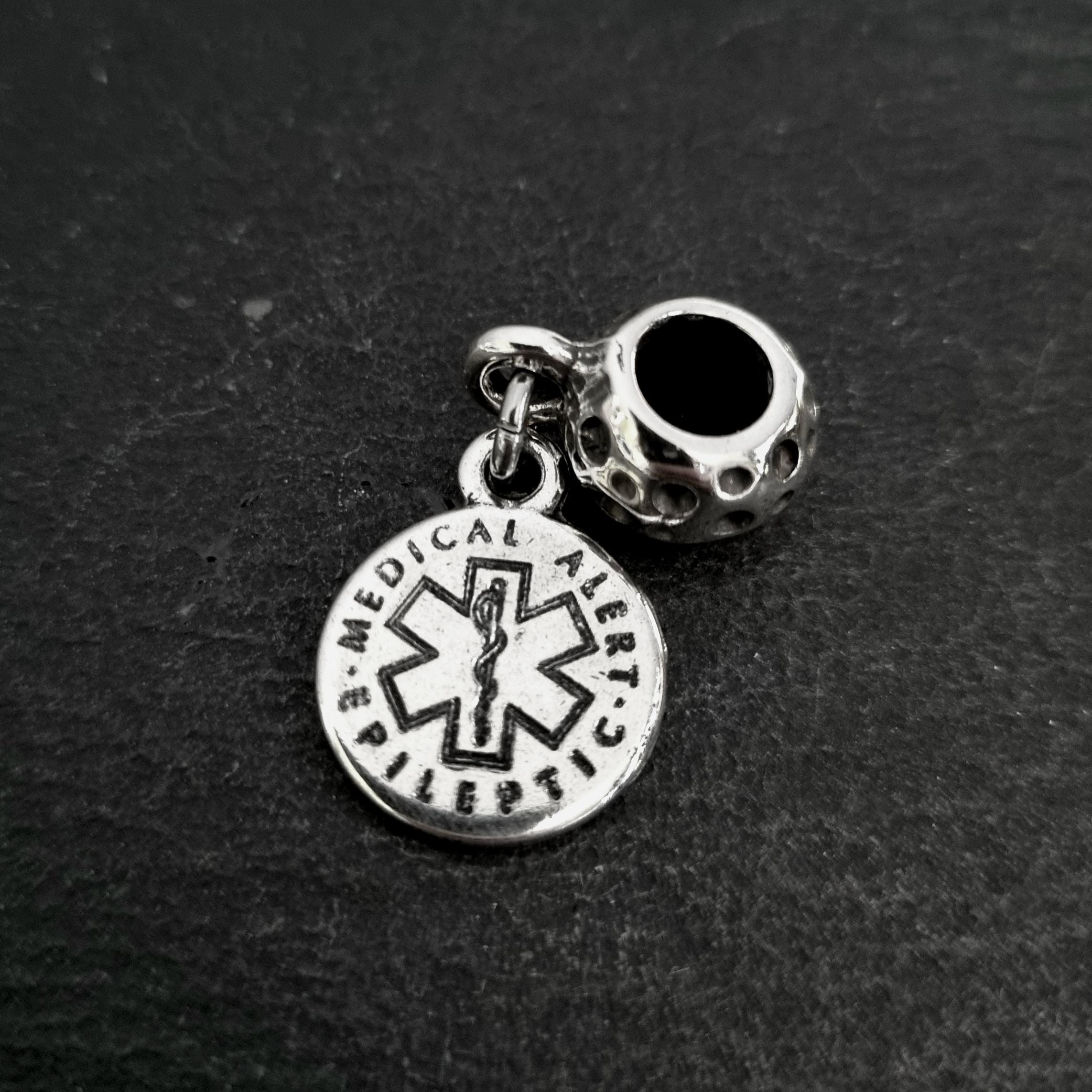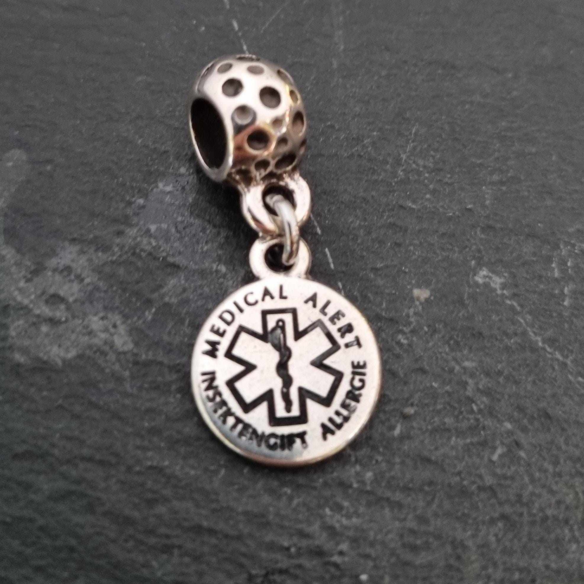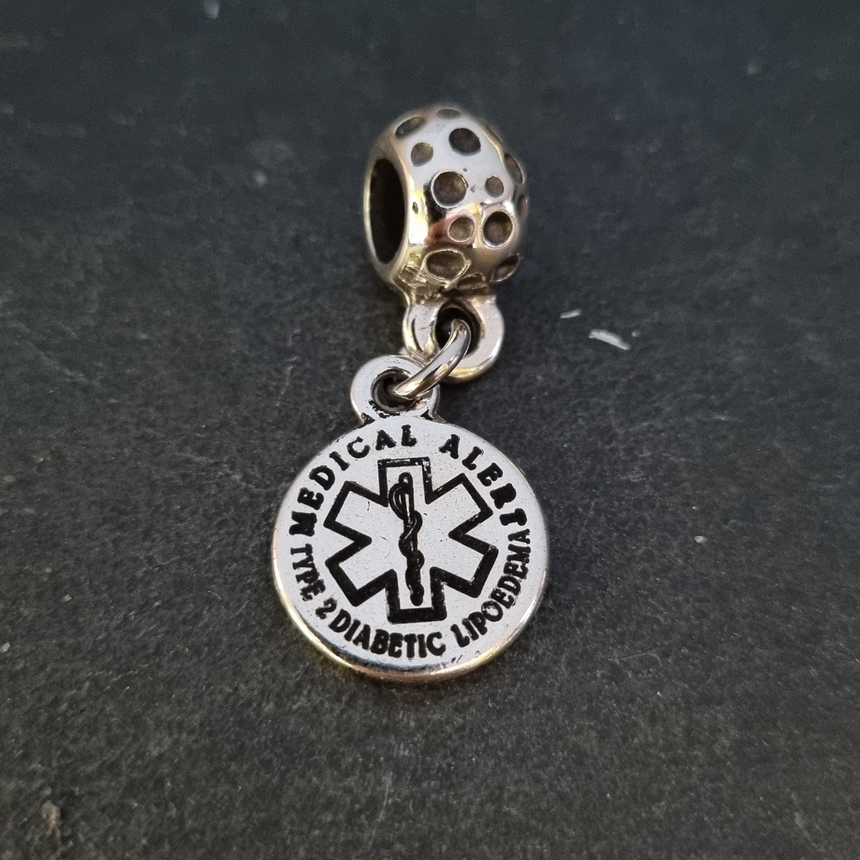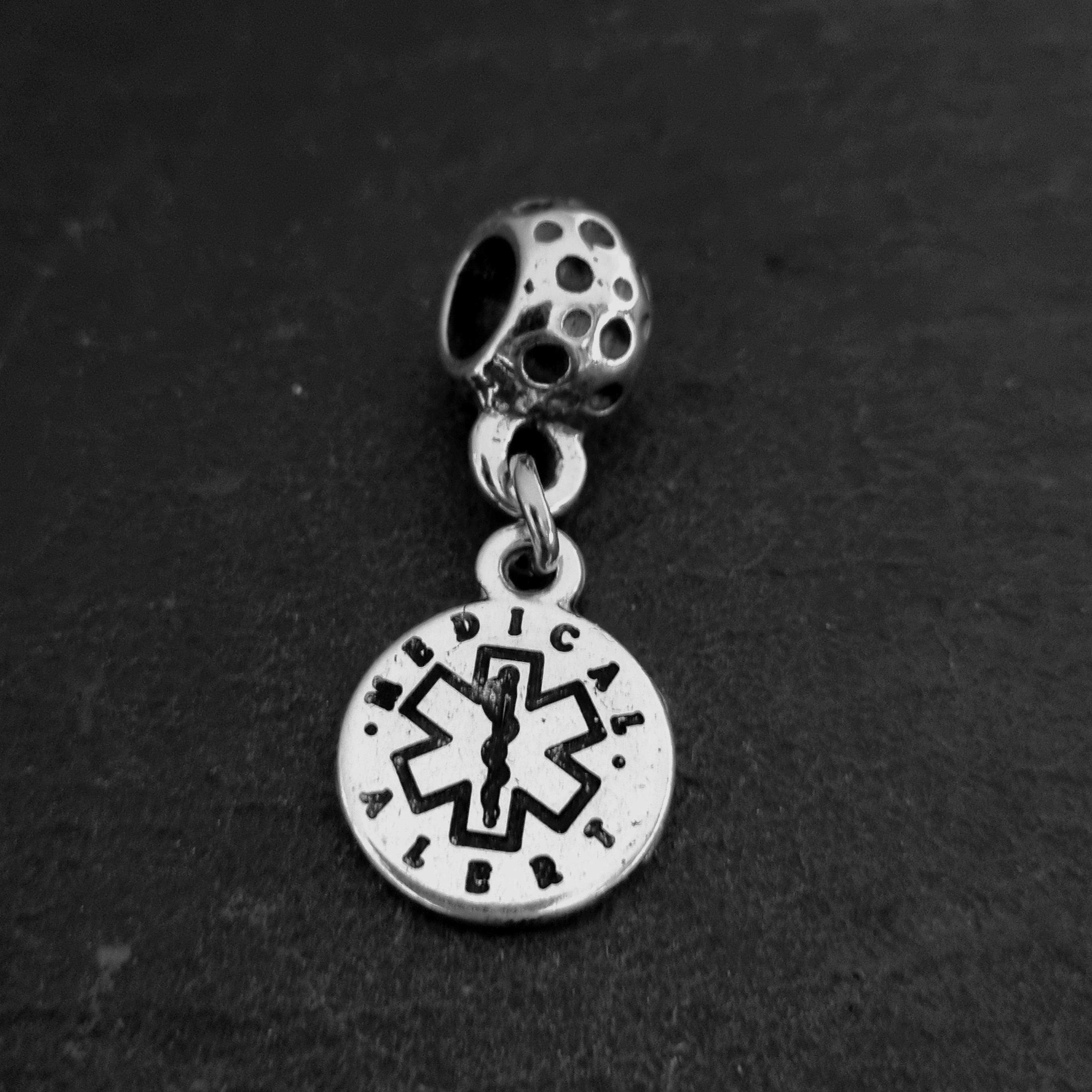- Personalized Medical Alert Charm with customizable 15mm silver plated metal Tag