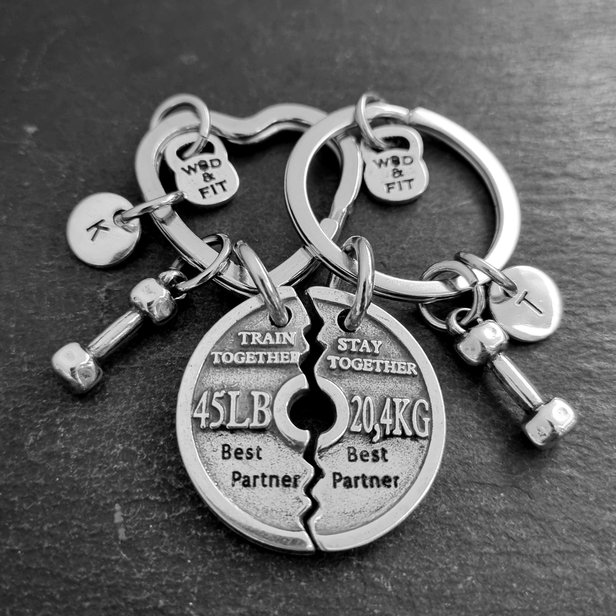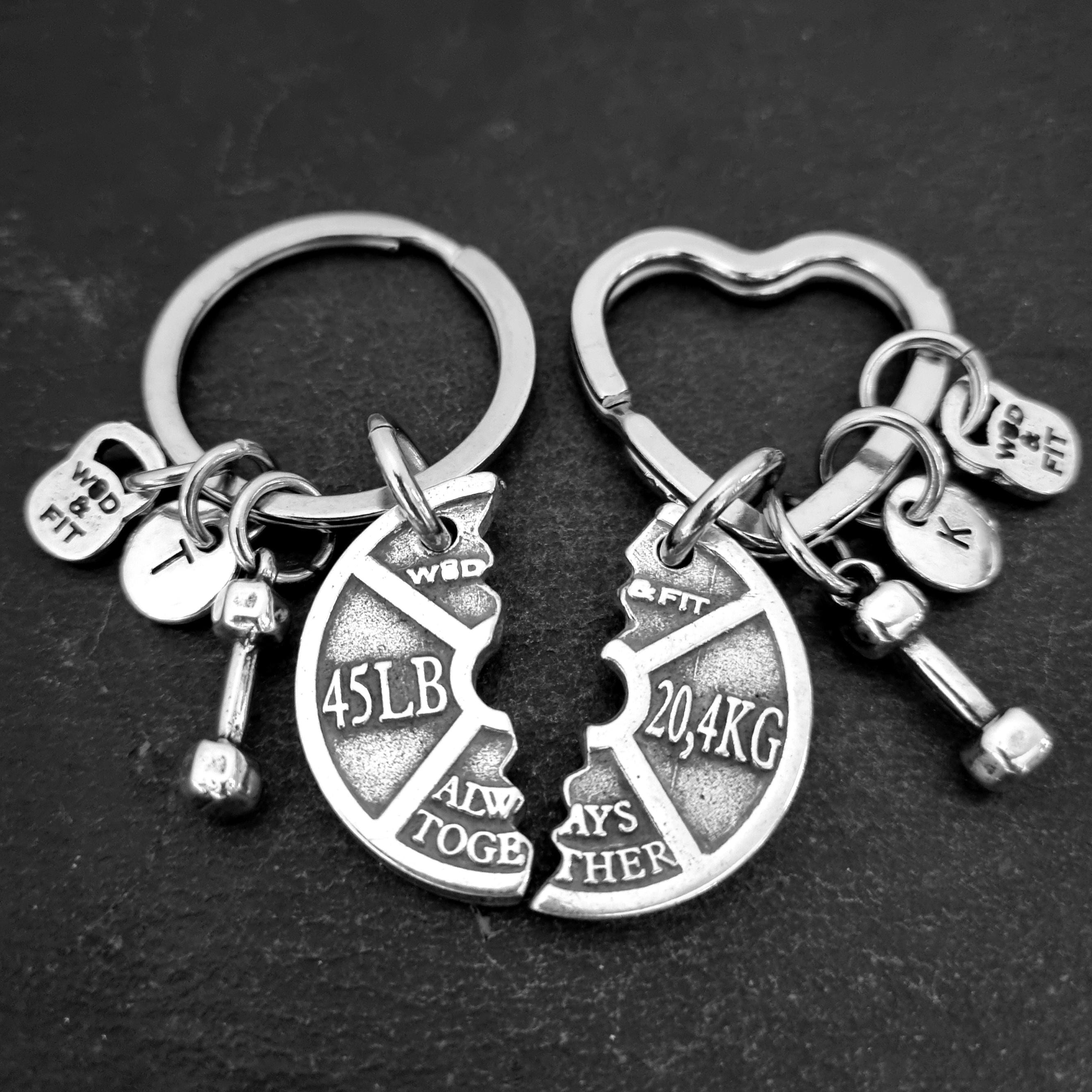 Set 2 Gym Keyring . Couples Gym Gift, the ideal Gift for lovers of gym, bodybuilding, weightlifter, Crosstraining, Couple motivation gift gift for him and her, Wod & Fit Original personalized couple gift.