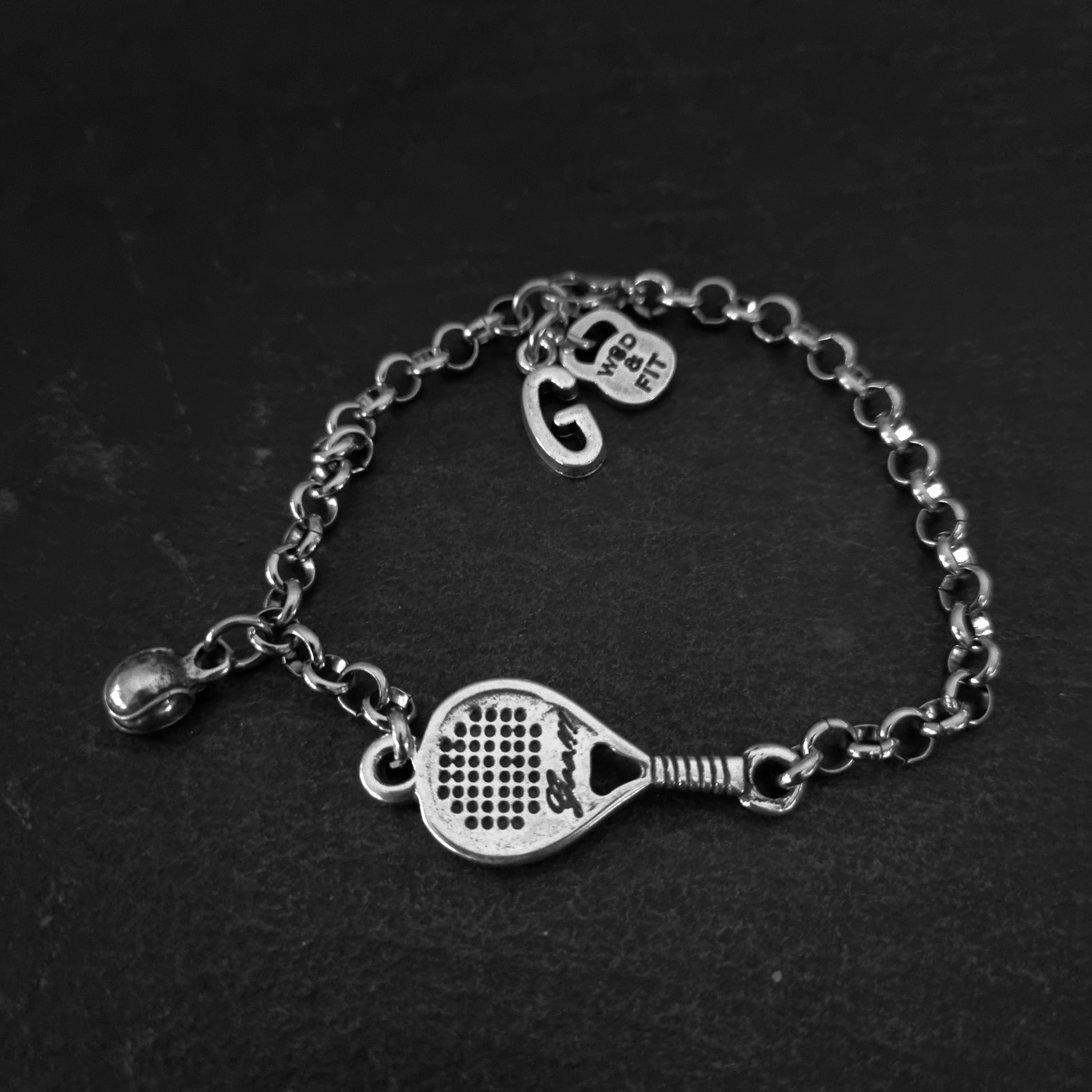 ⭐Padel Bracelet in Stainless stell with Paddle/Tennis Ball and Initial.