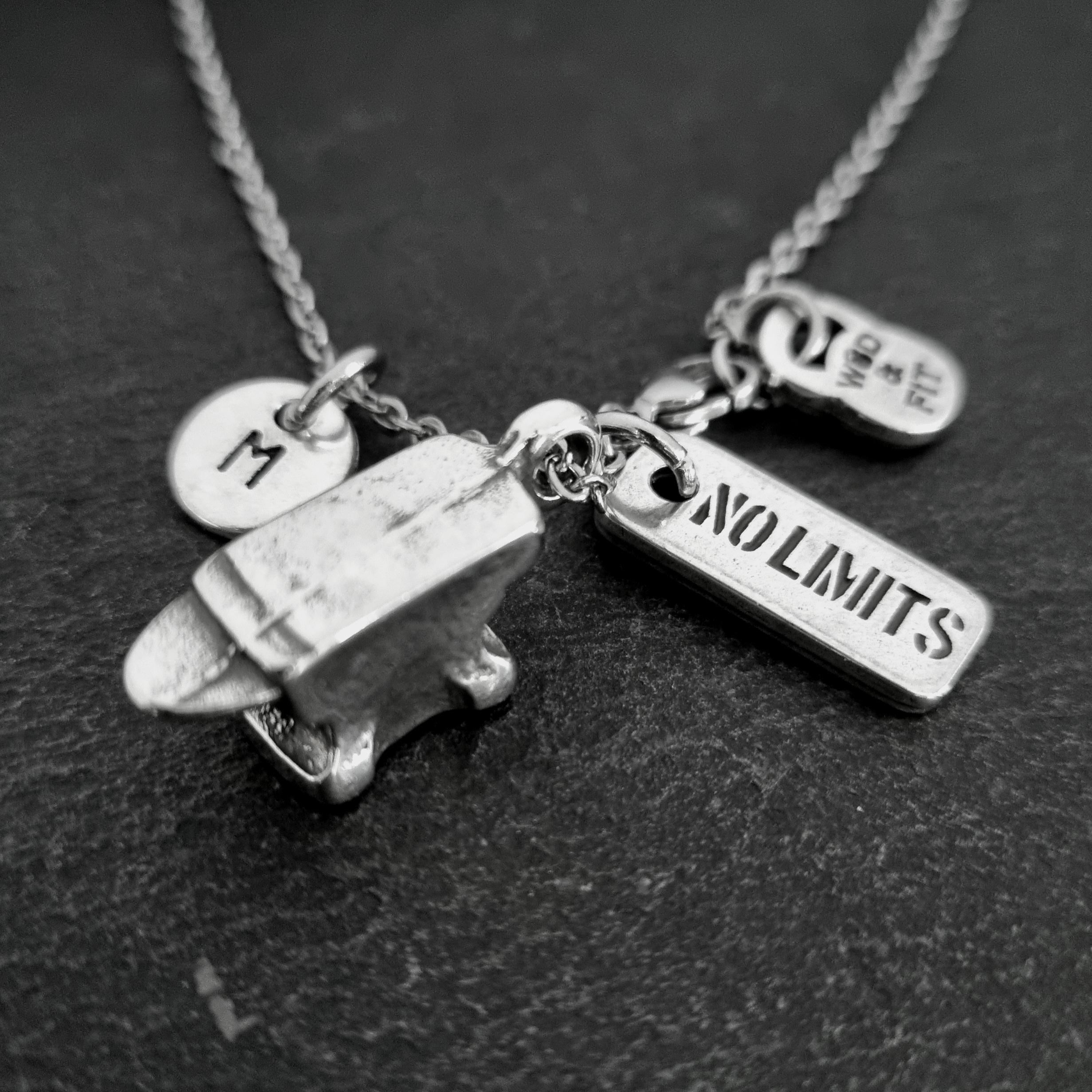 Anvil Necklace with Personalized Motivation and Initial by Wod & Fit