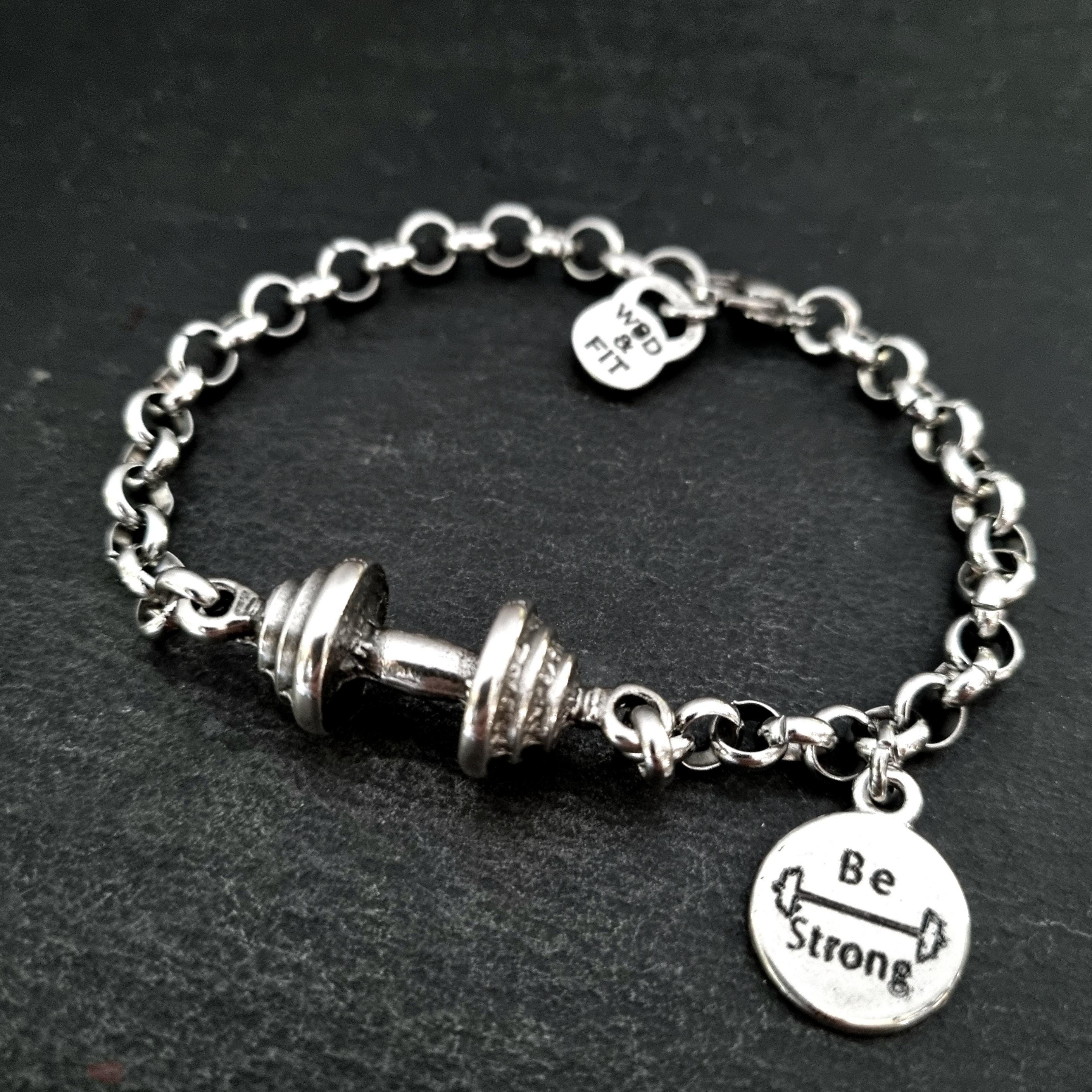 ⭐The bracelet Barbell Workout is with the Barbell and Your Motivation in metal silver plated, 6mm Stainless steel Chain