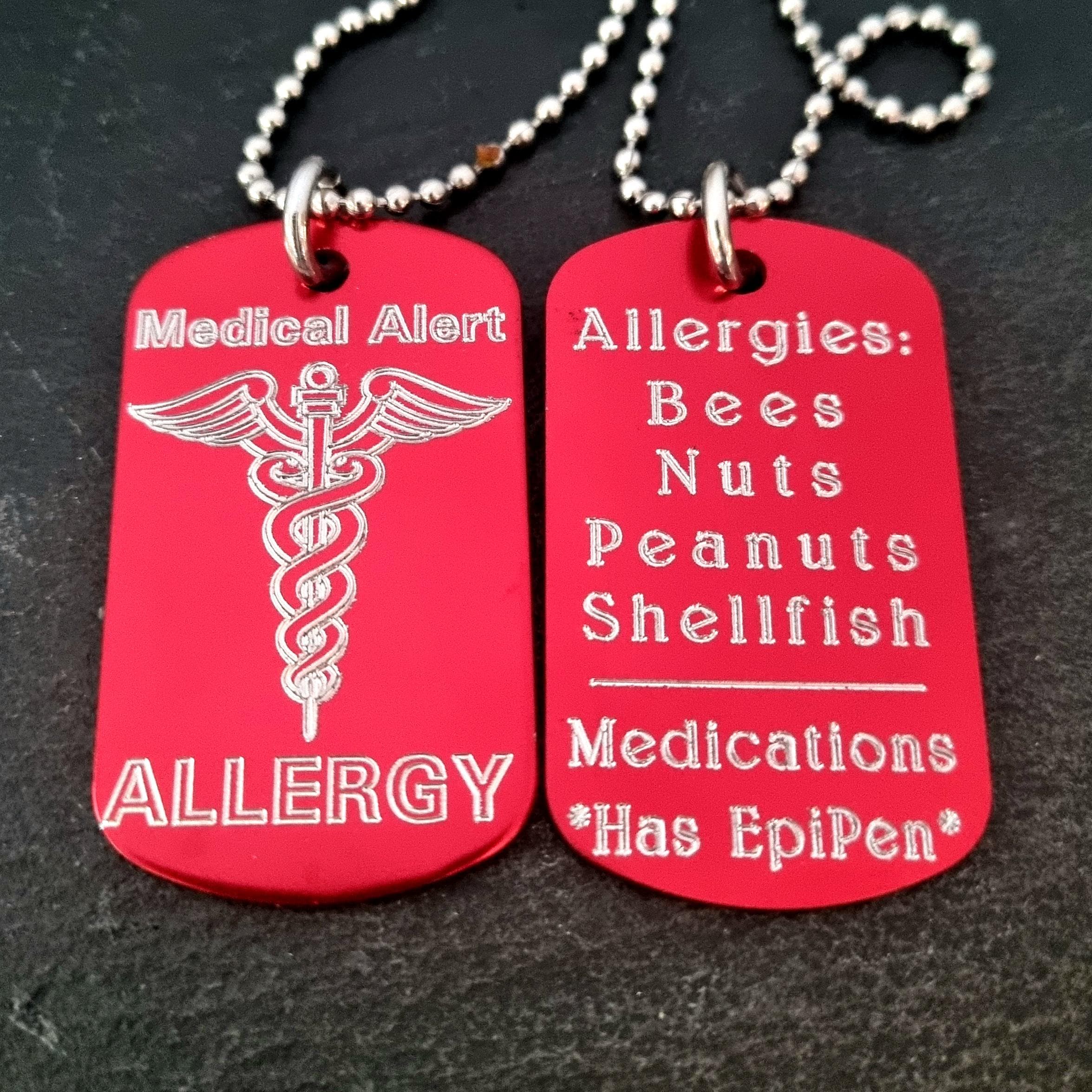Personalized Medical ID Necklace in aluminum with personalized Medical Alert
