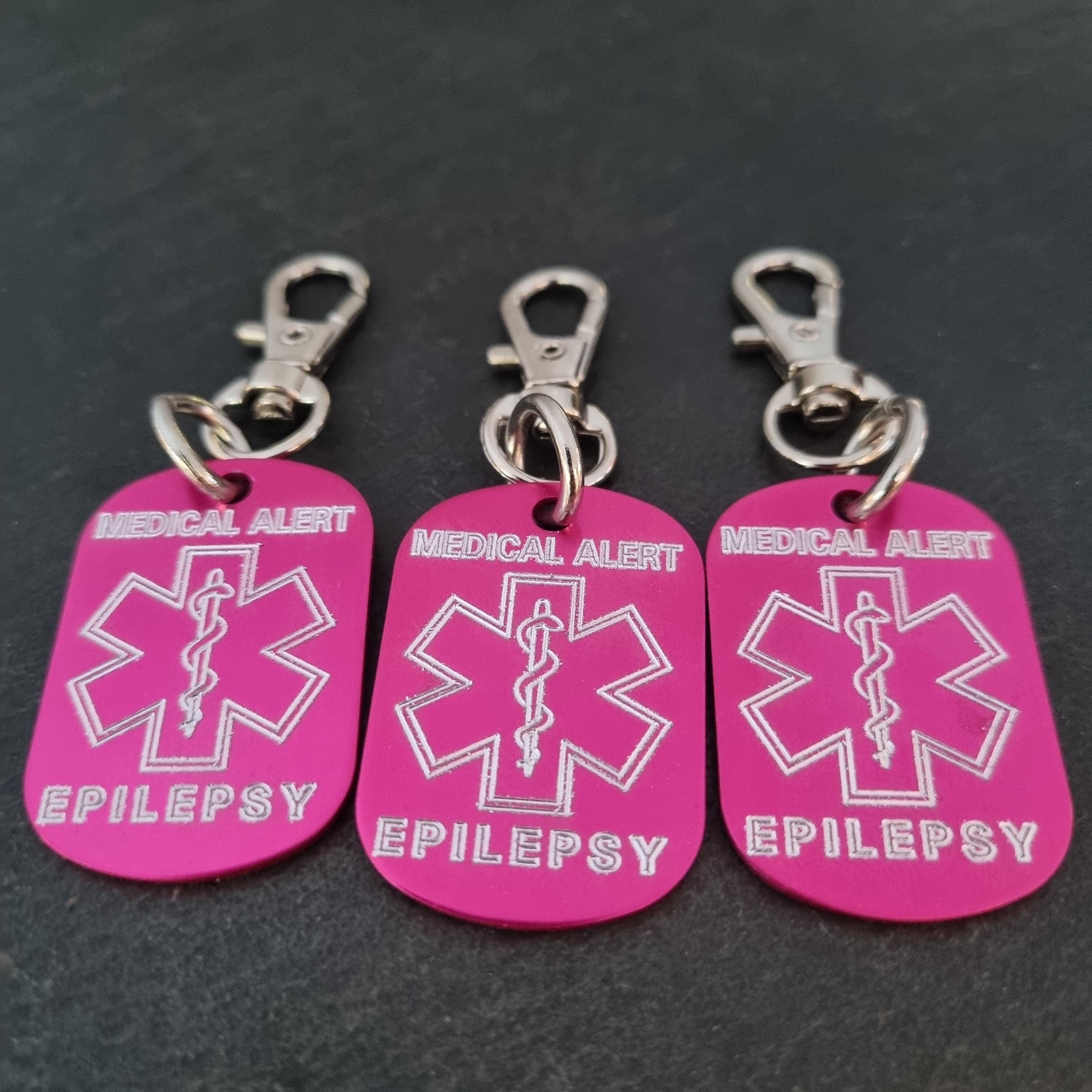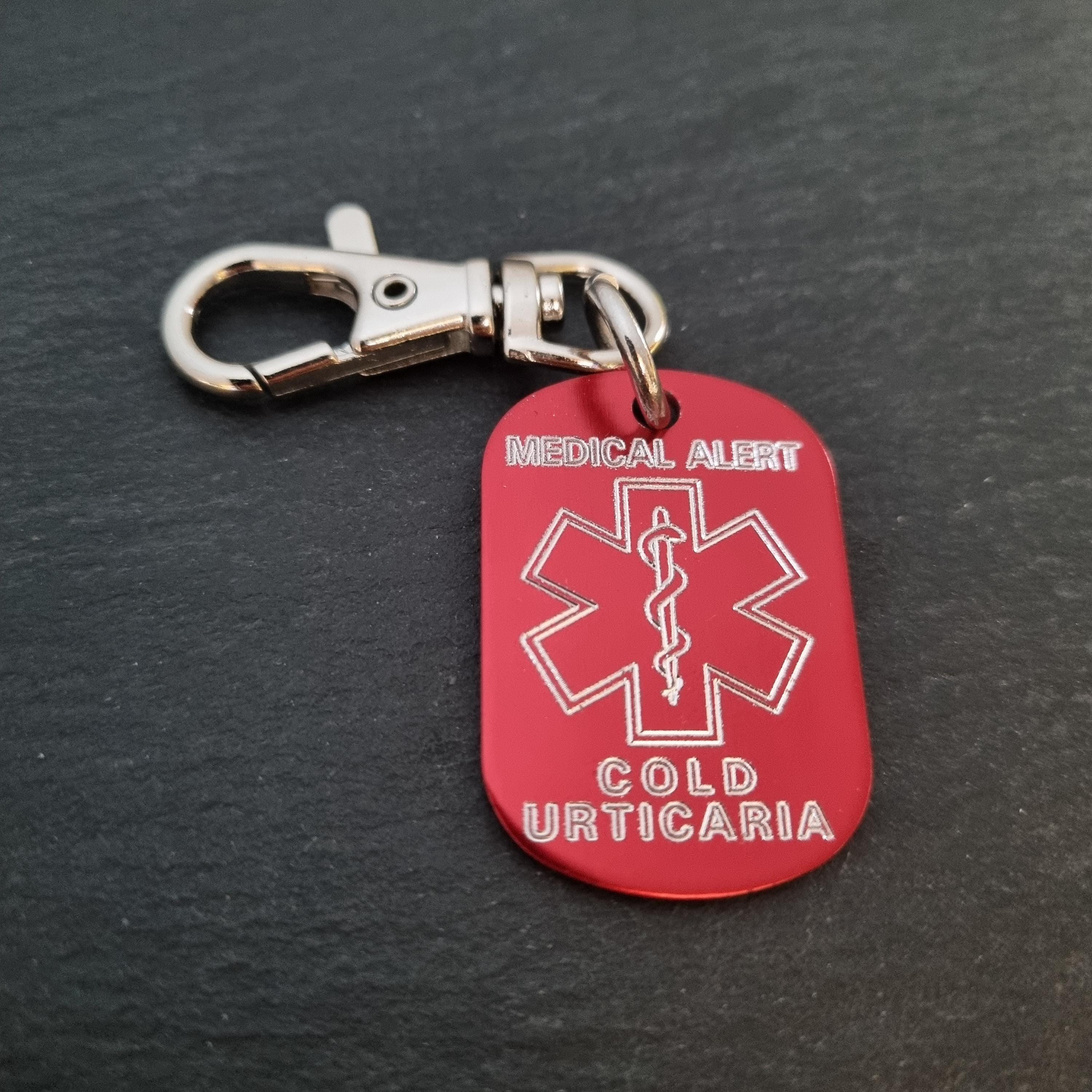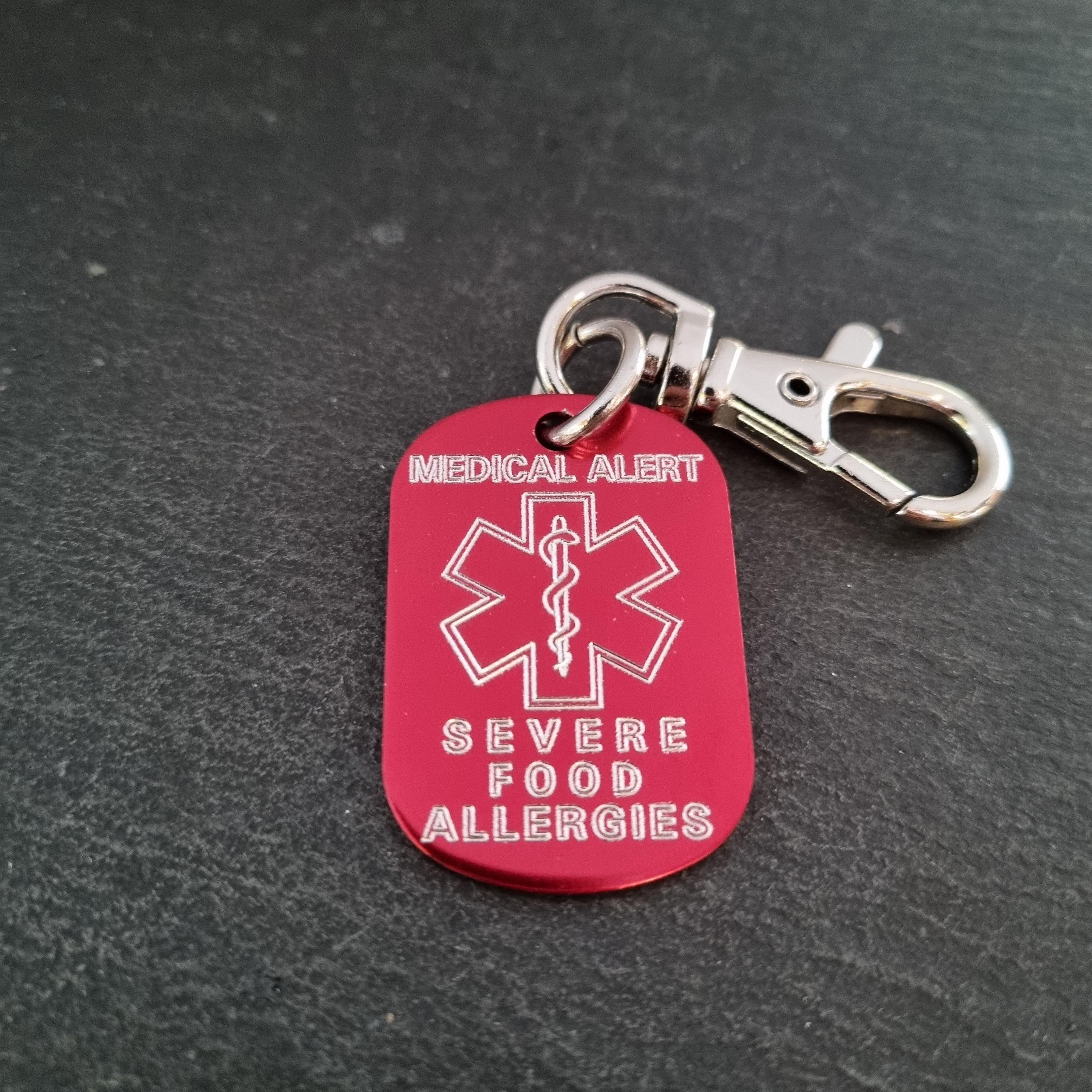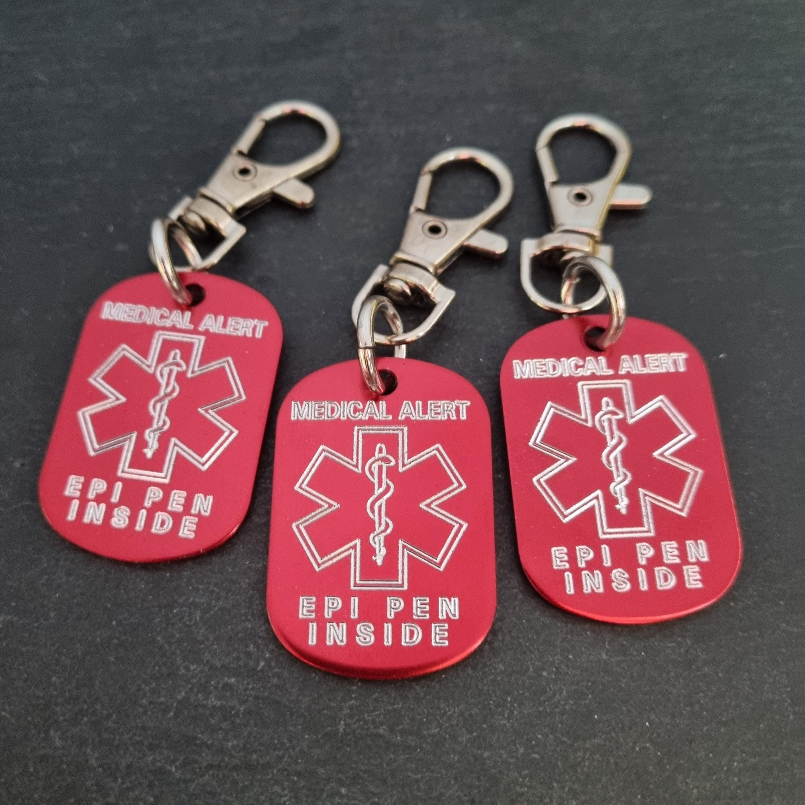 • Personalised medical alert tag for your keys, luggage, bags etc.