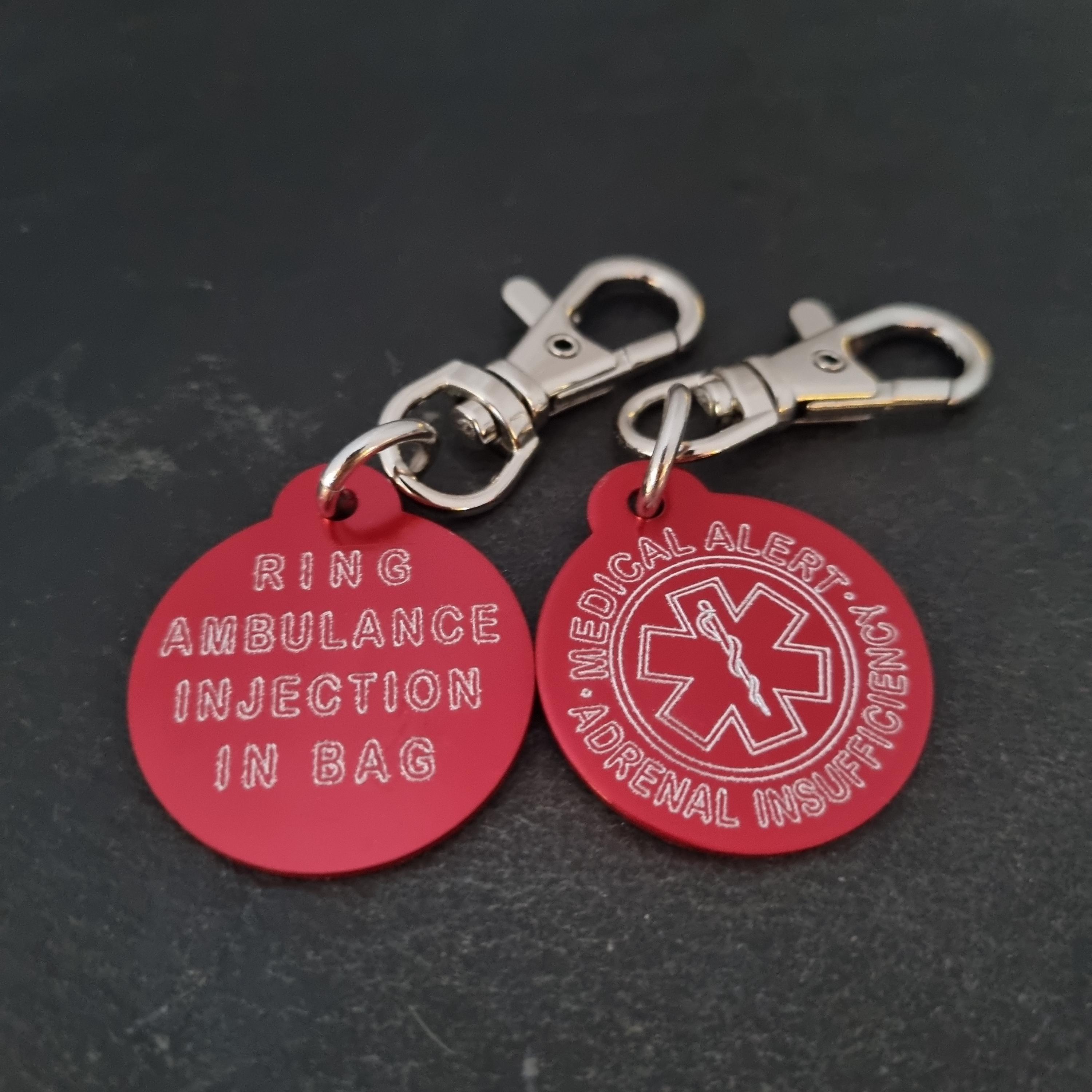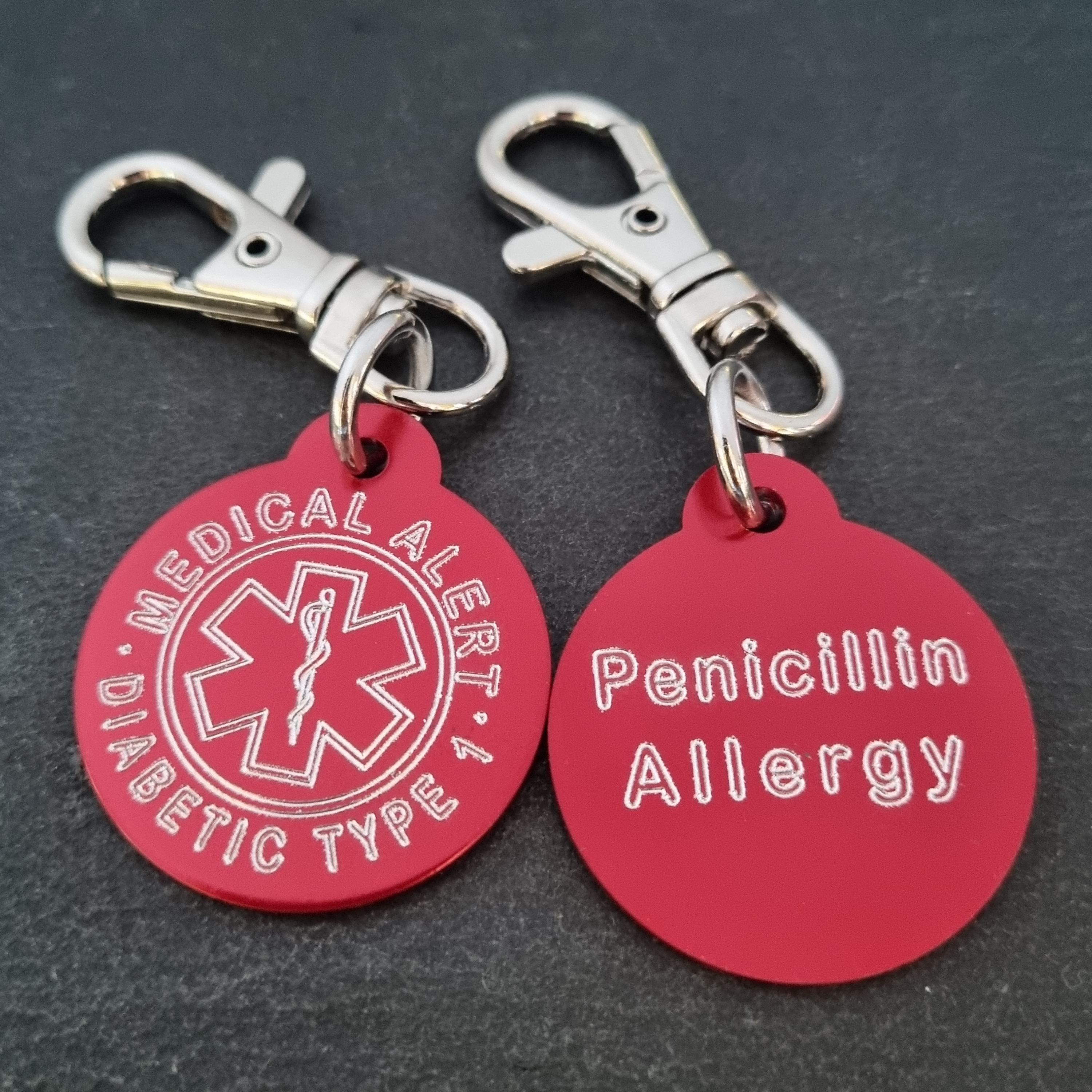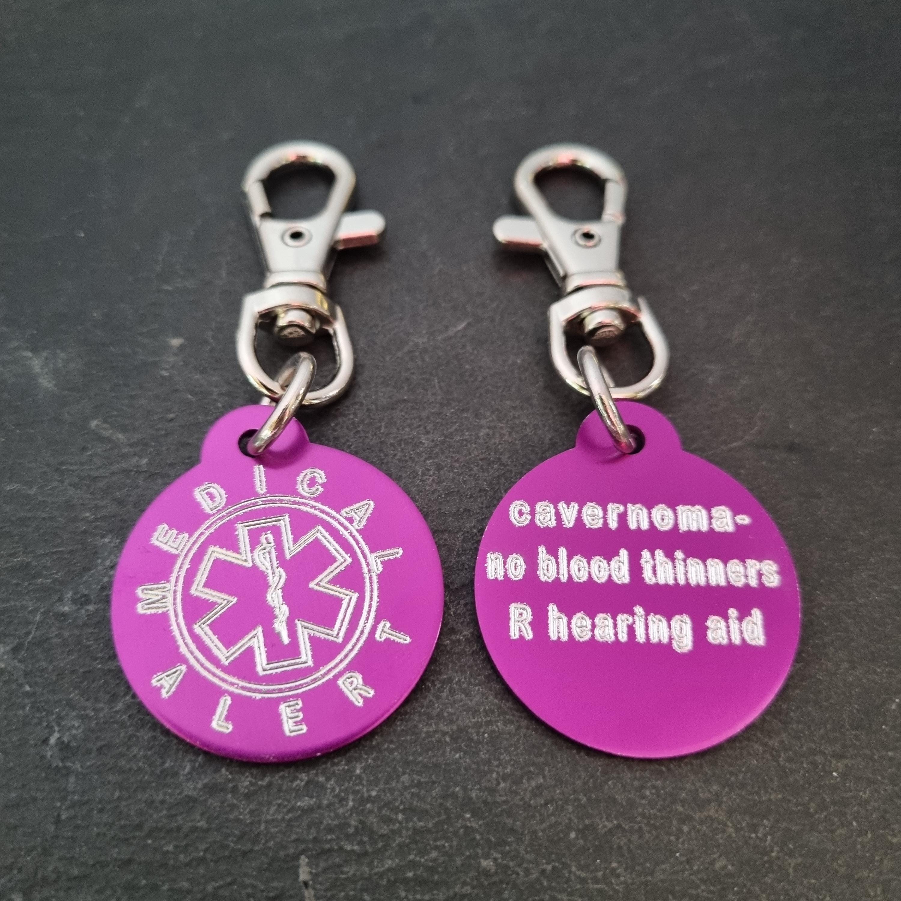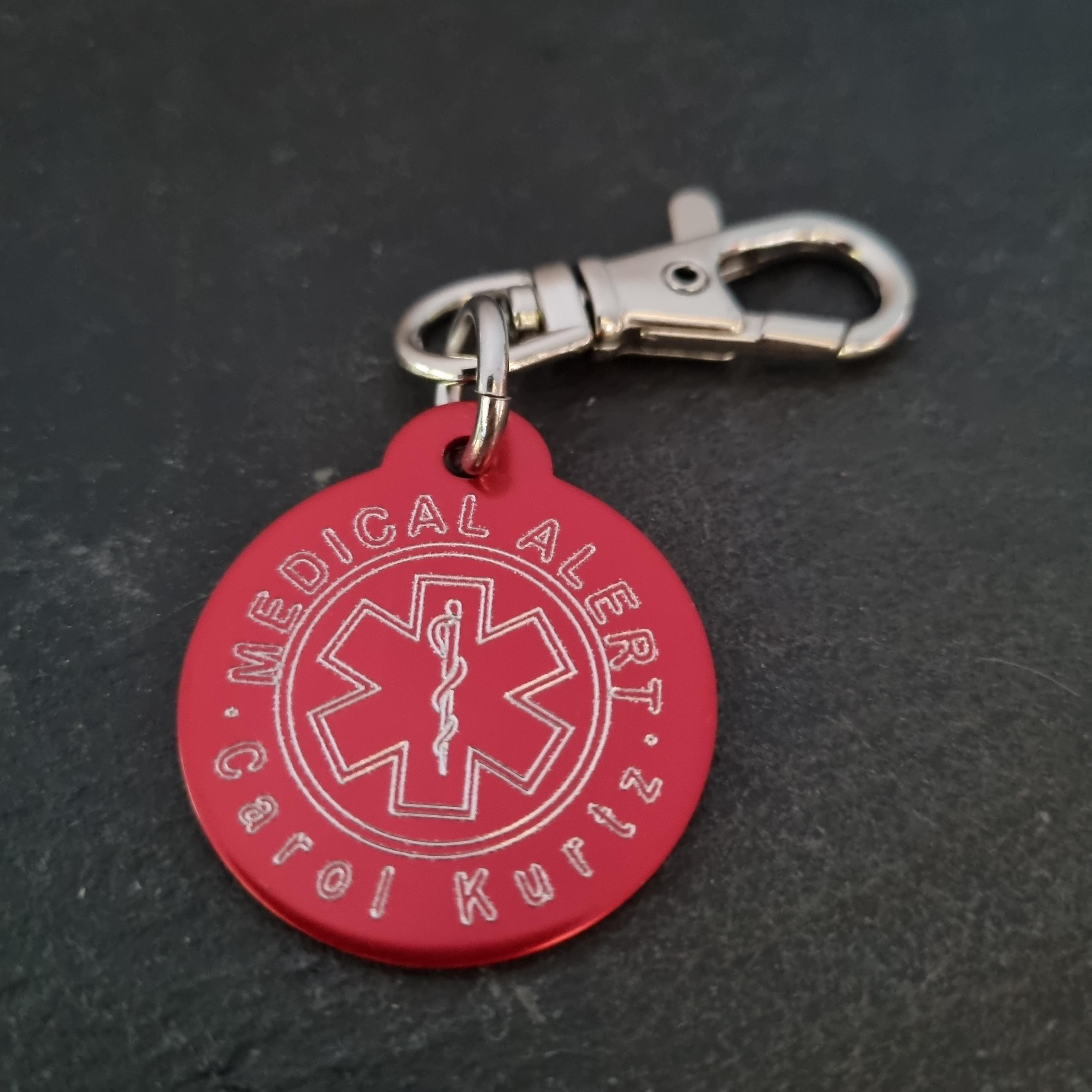Emergency Medical Alert Tag in aluminum Round 32mm with personalized Medical Alert