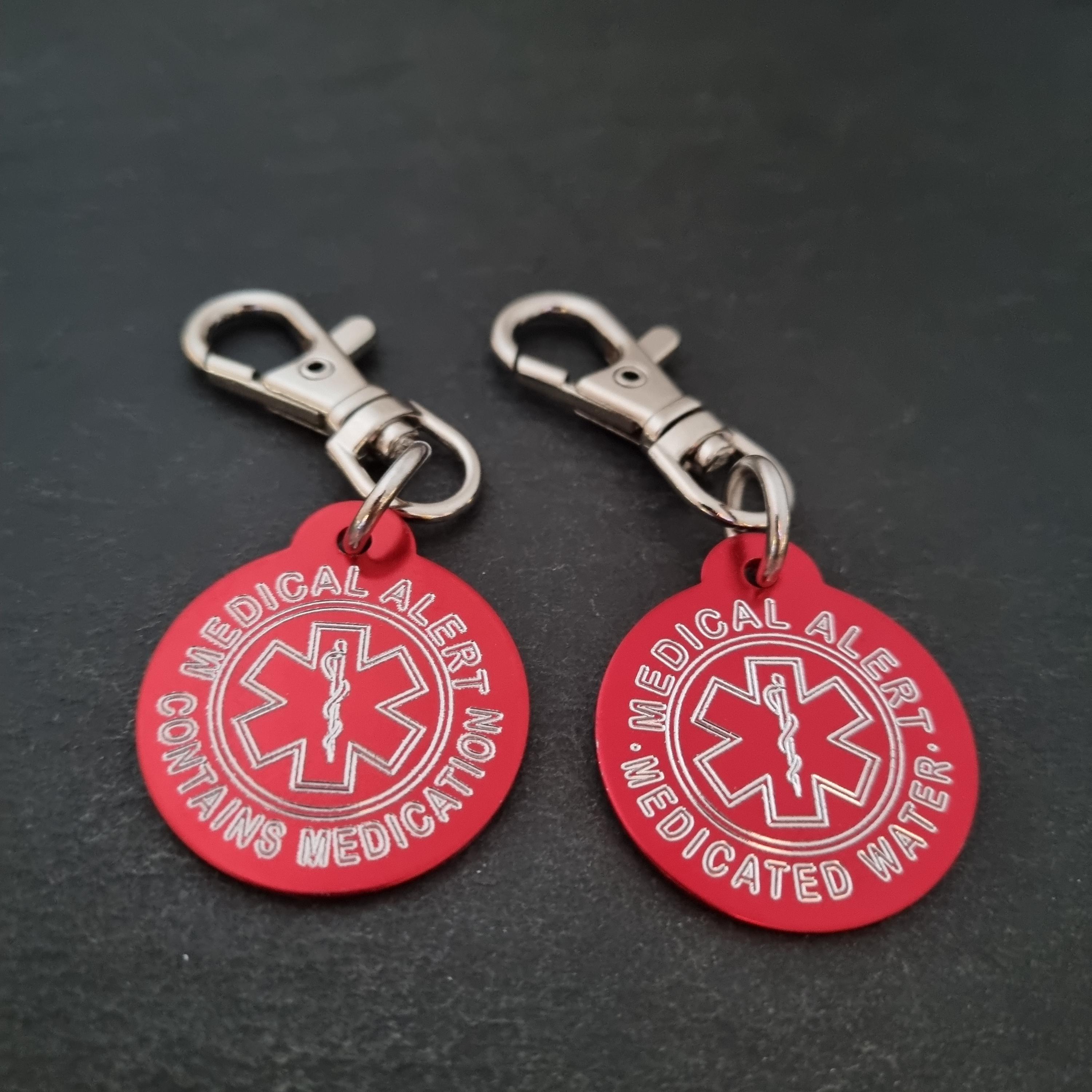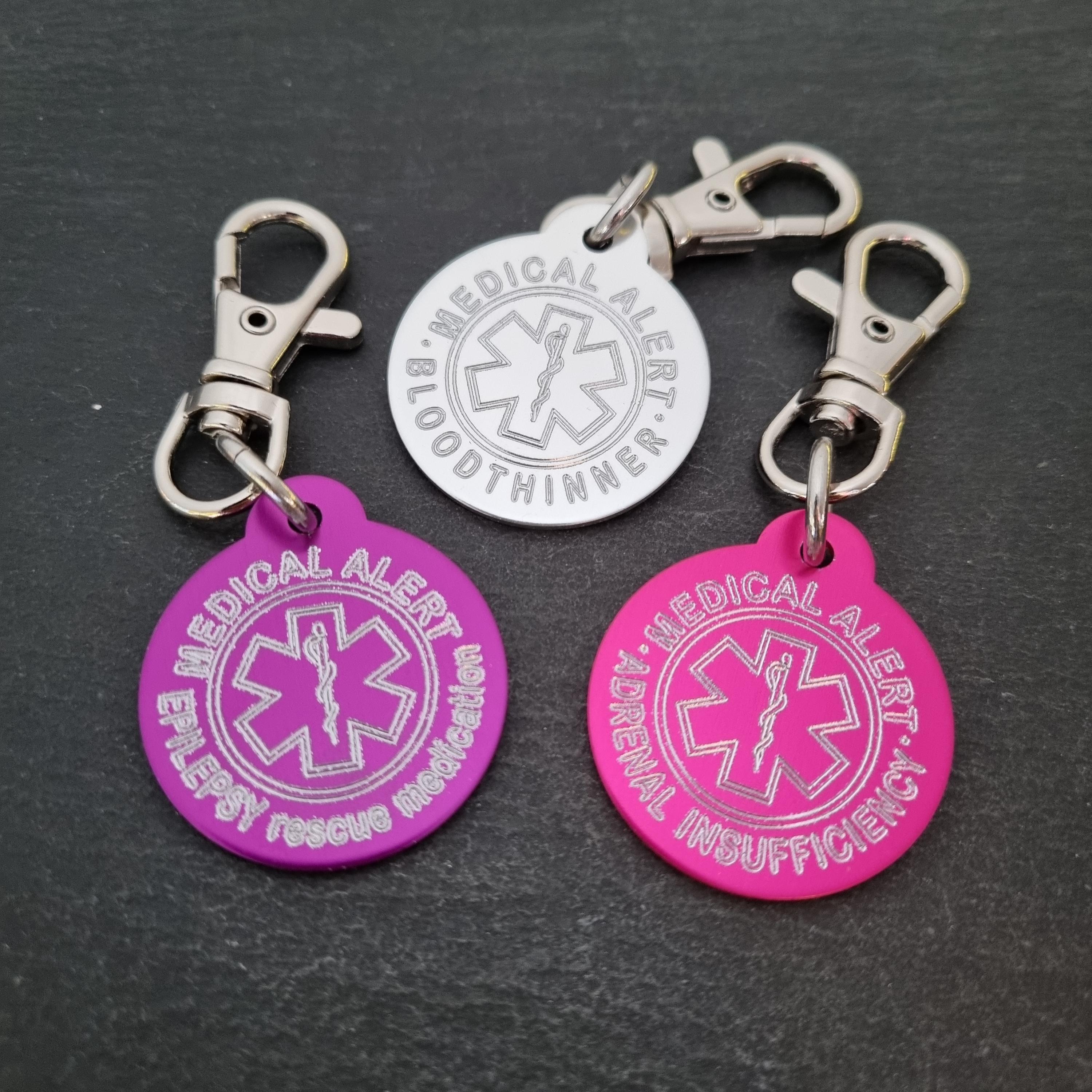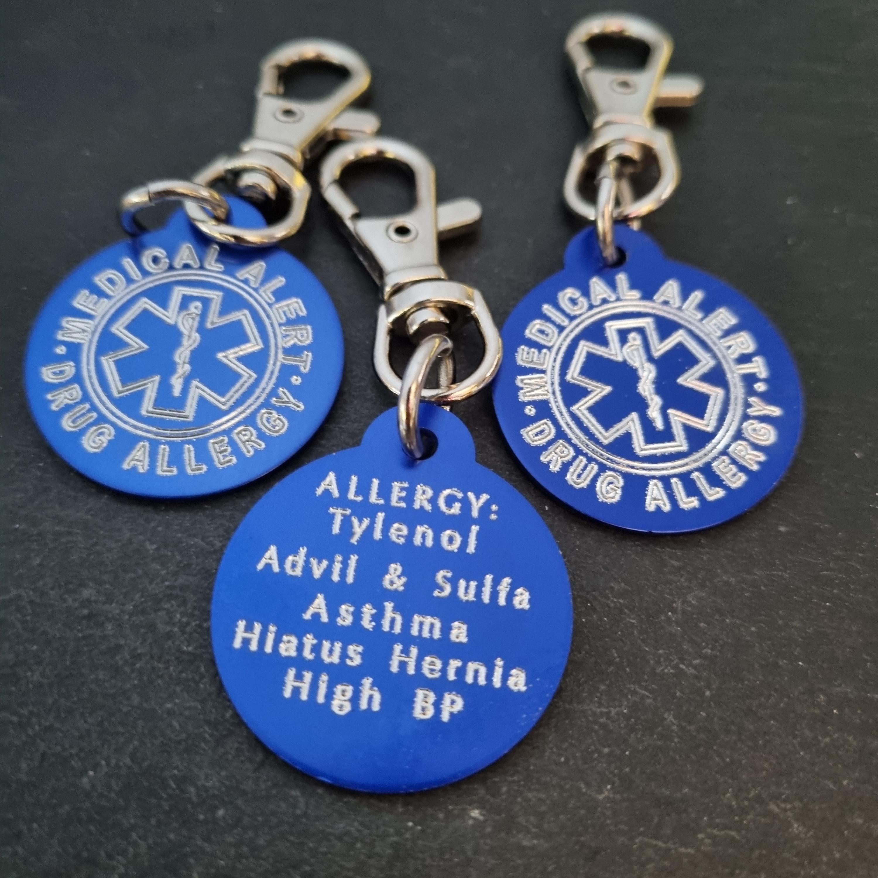 SET 2 Emergency Medical Alert Tag in aluminum Round 32mm with personalized Medical Alert