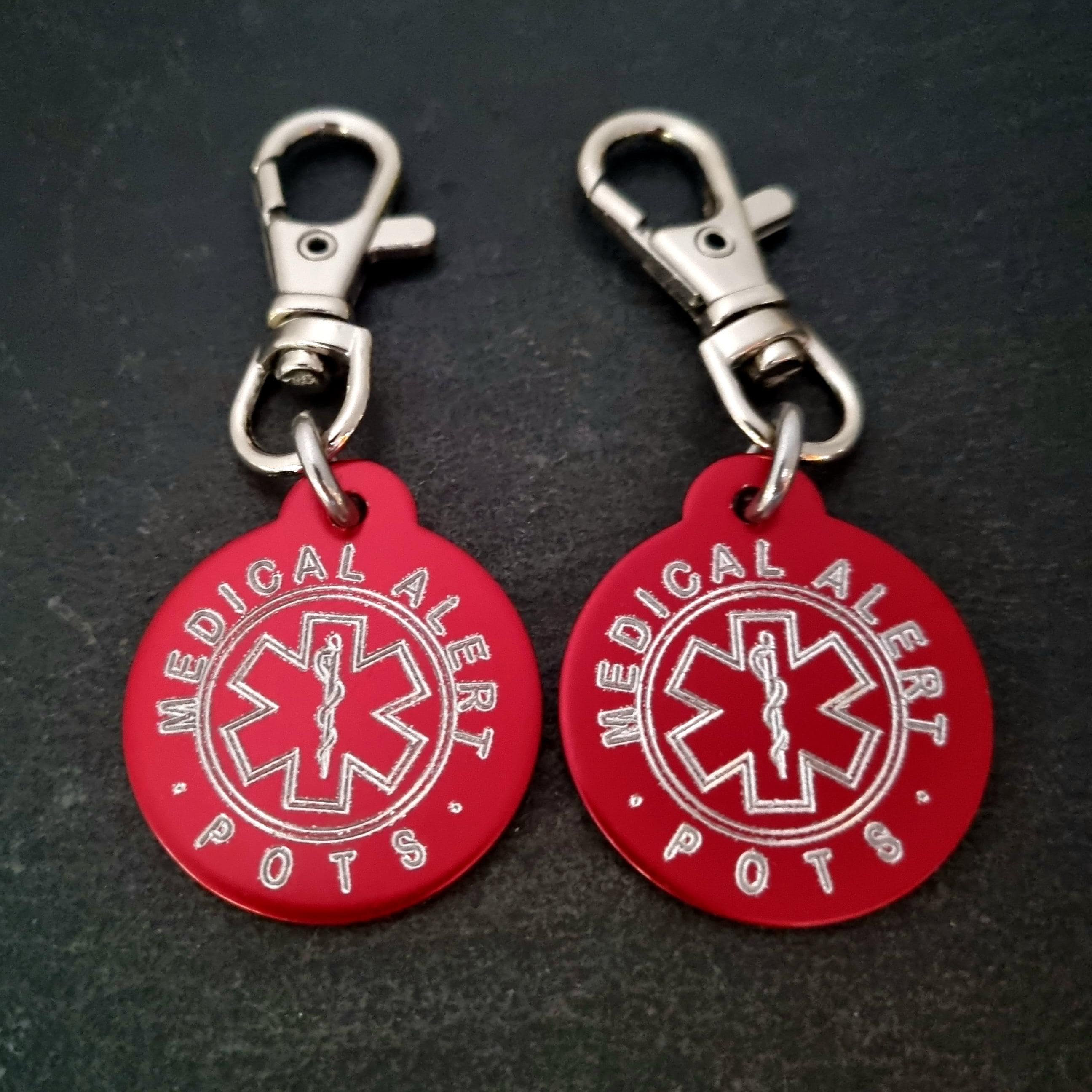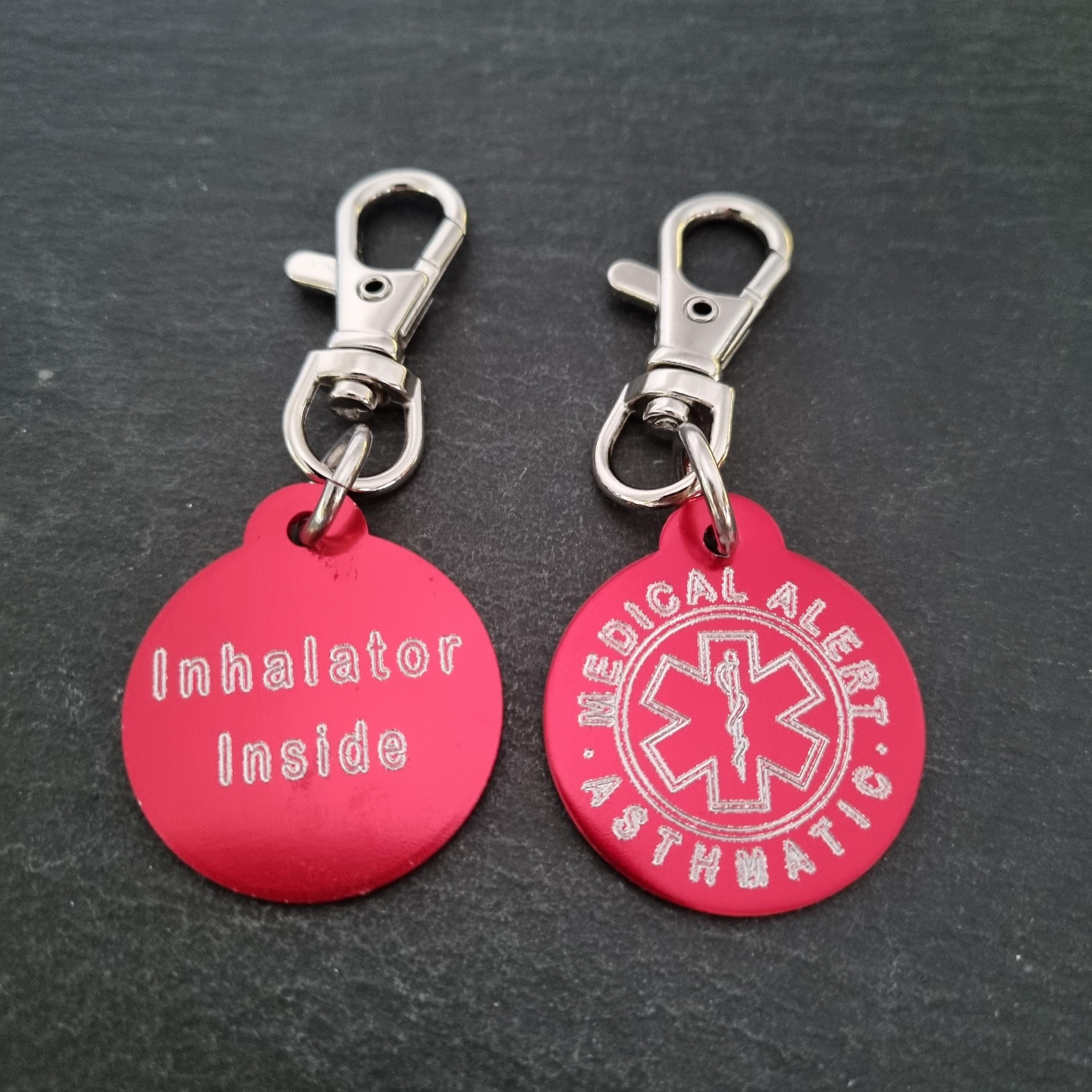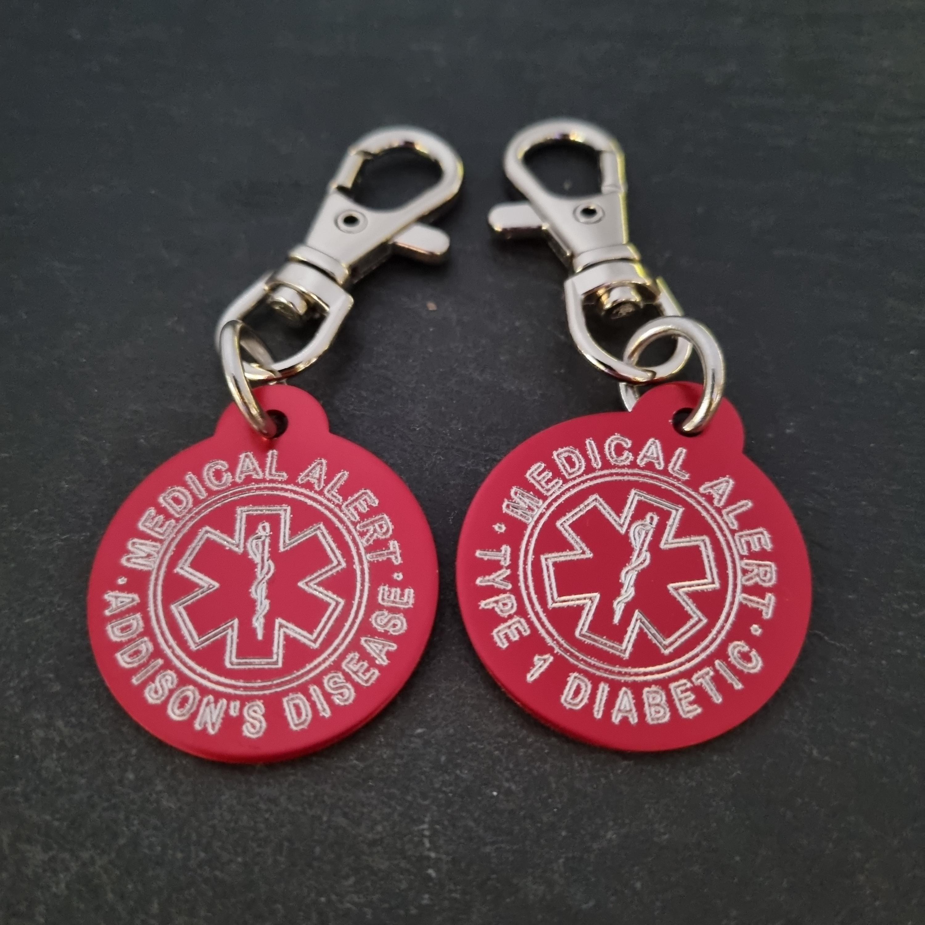 SET 2 Emergency Medical Alert Tag in aluminum Round 32mm with personalized Medical Alert