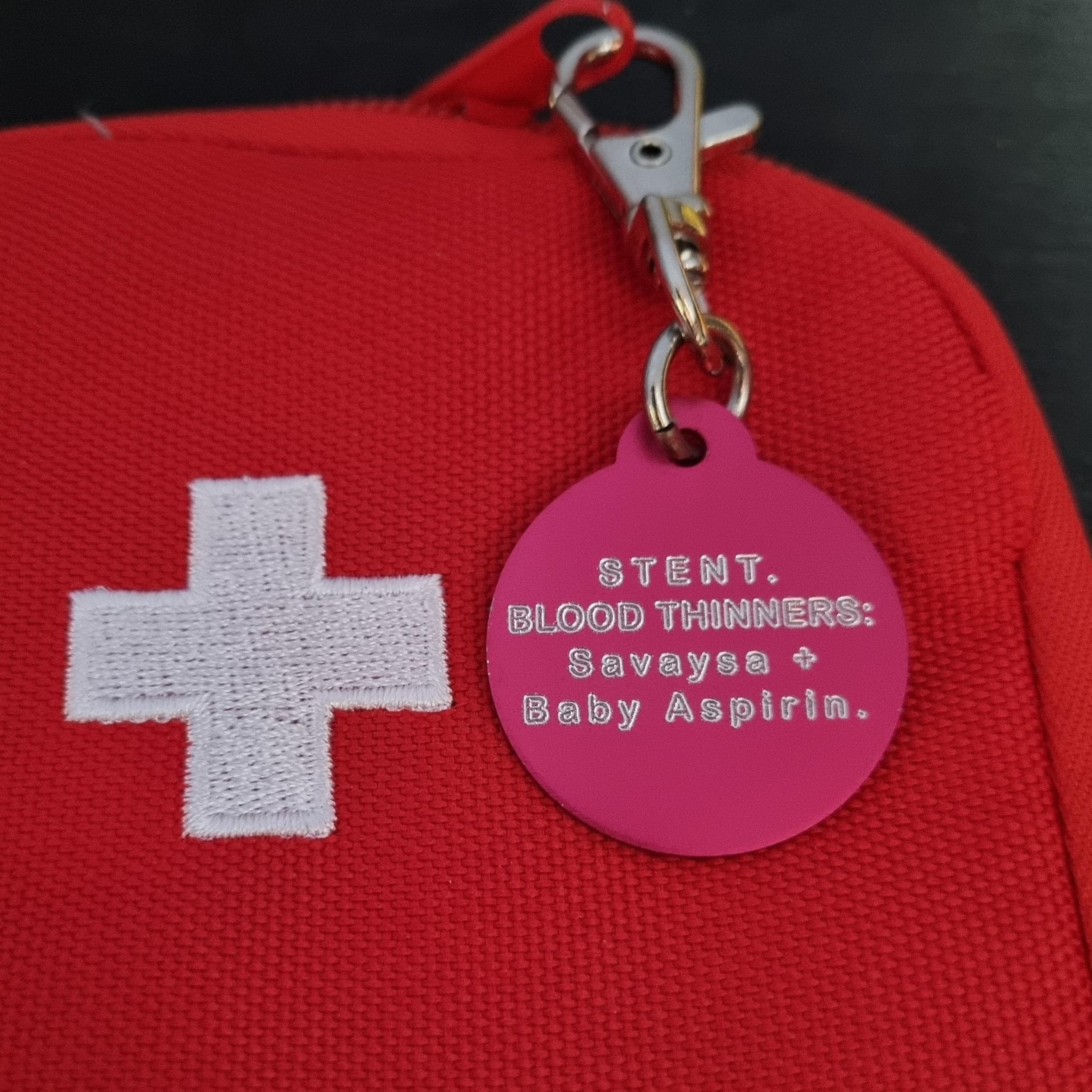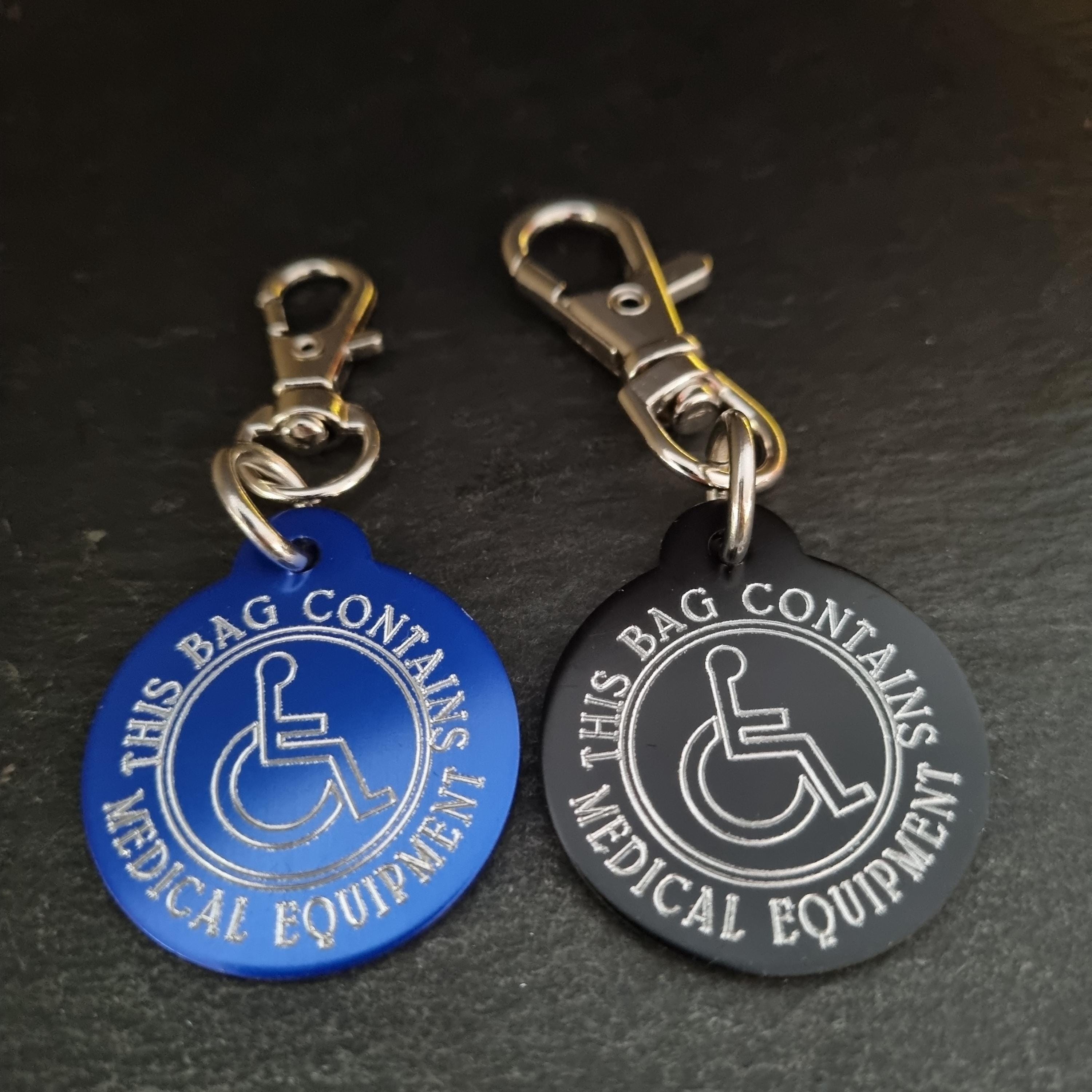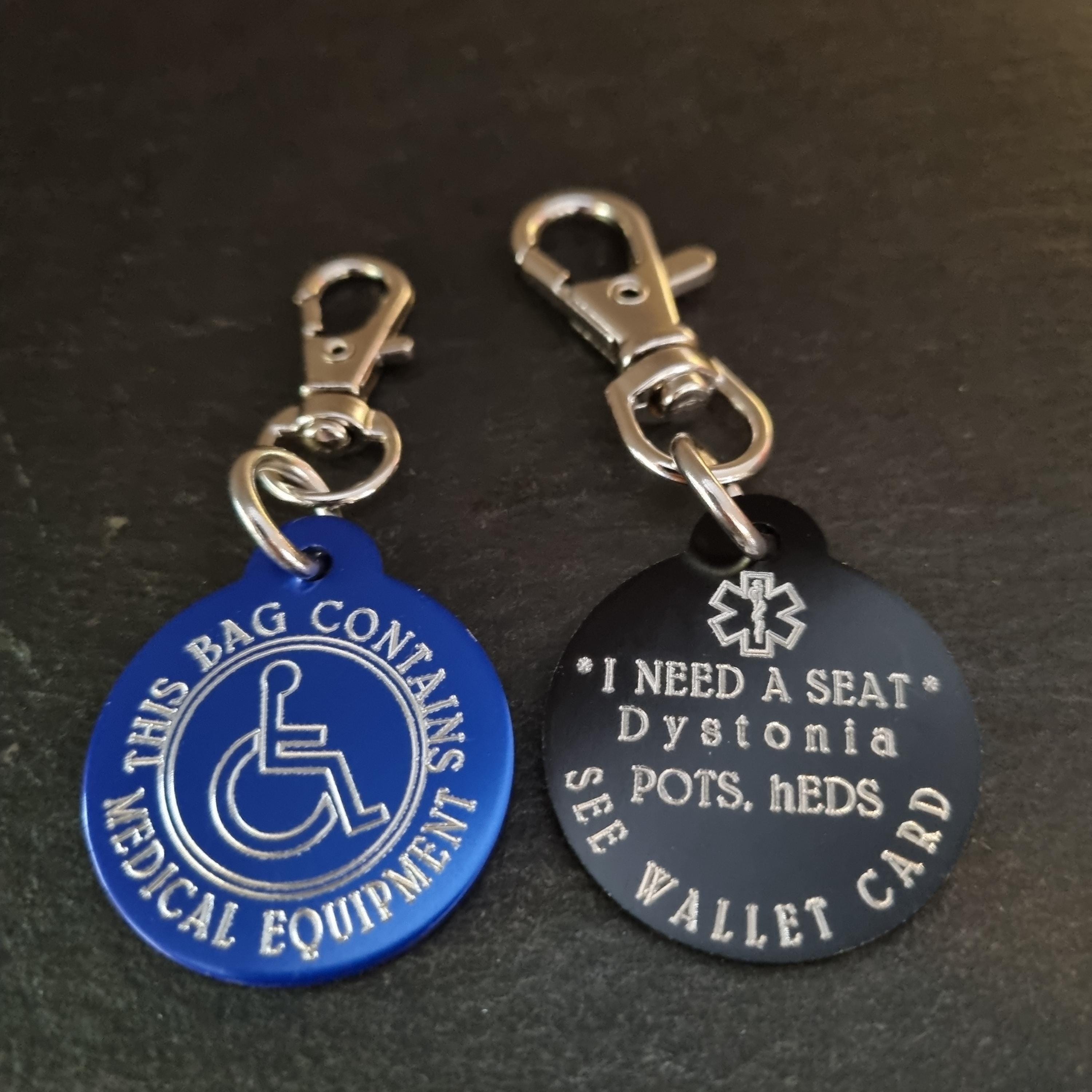 Emergency Medical Alert Tag for the disabled in aluminum Round 32mm with personalized Medical Alert