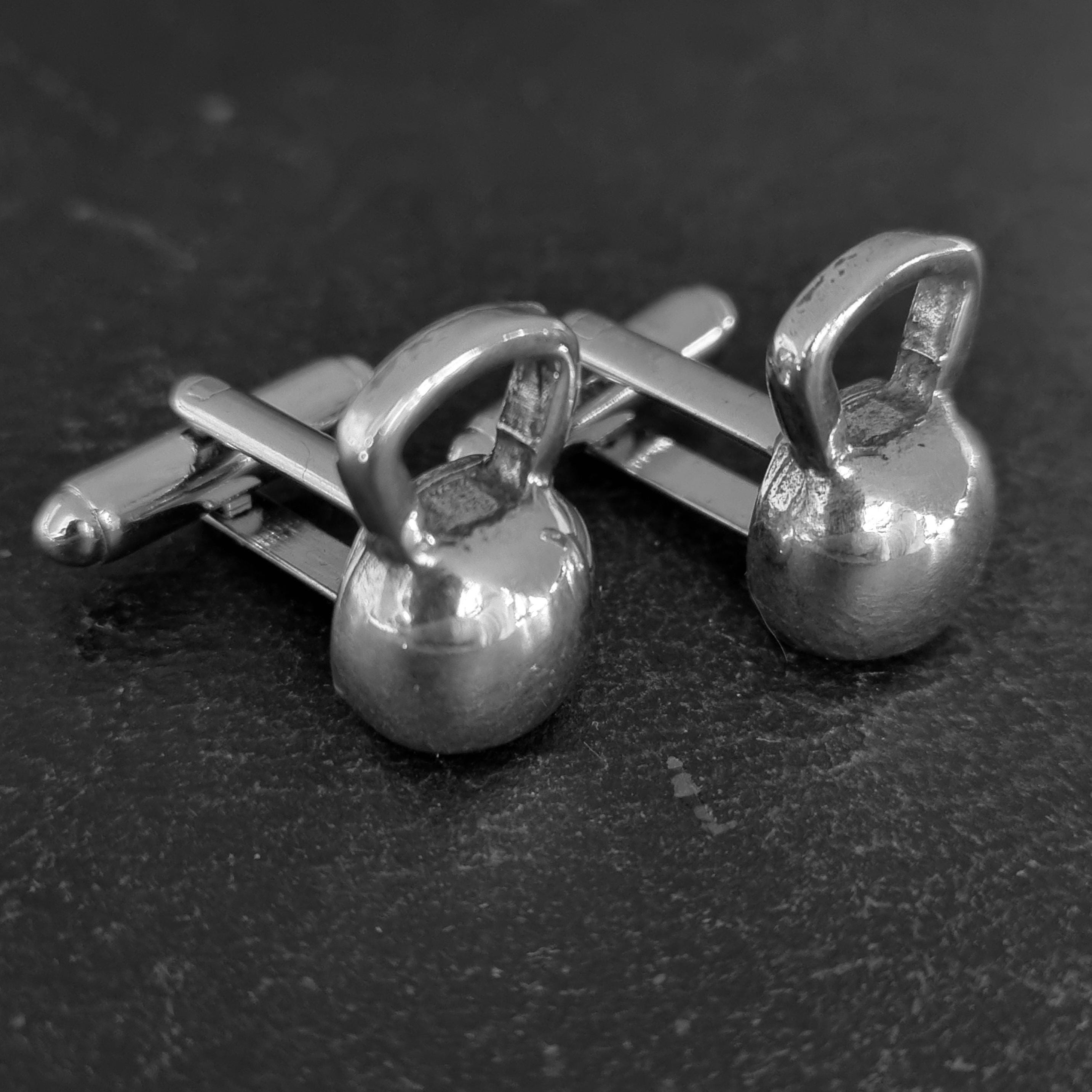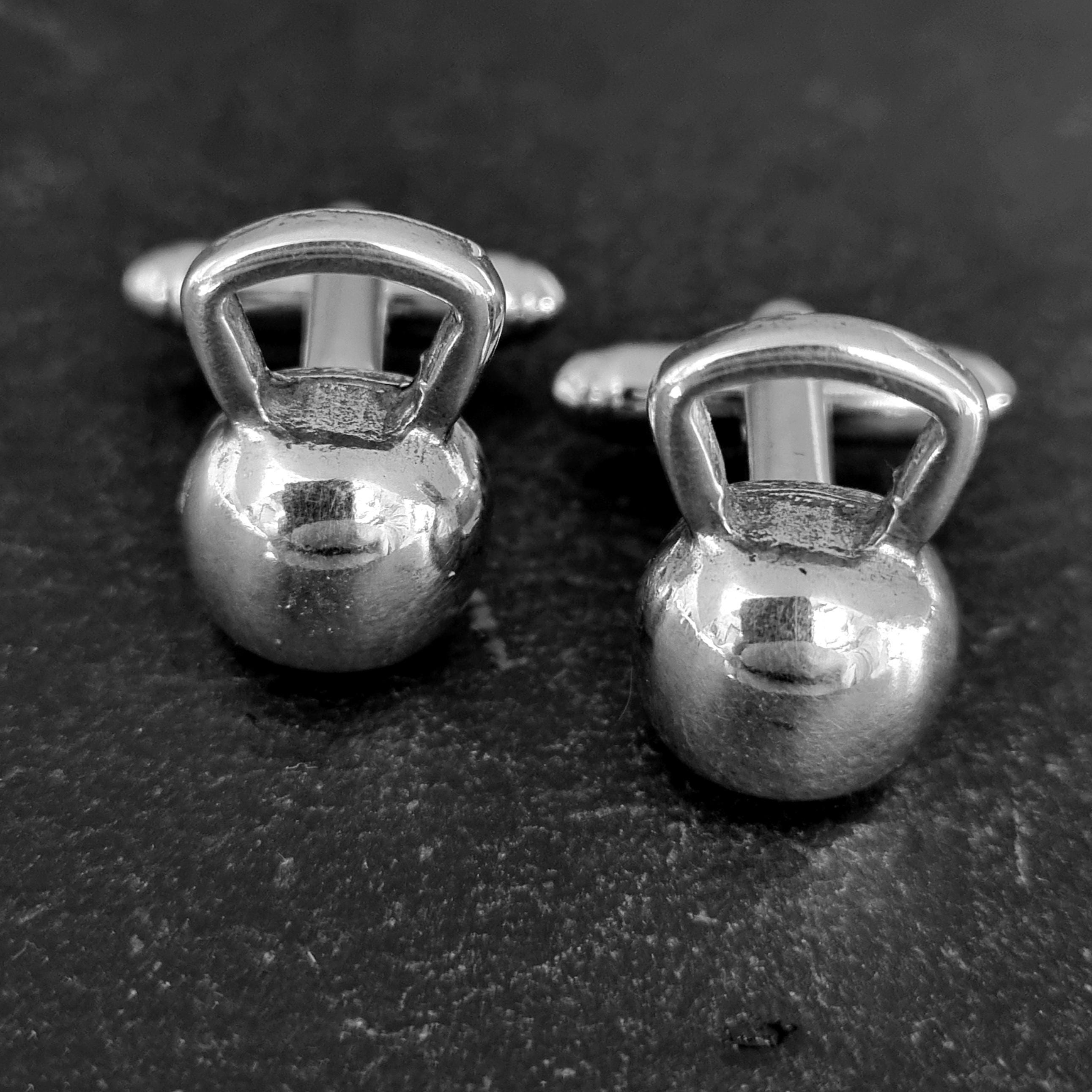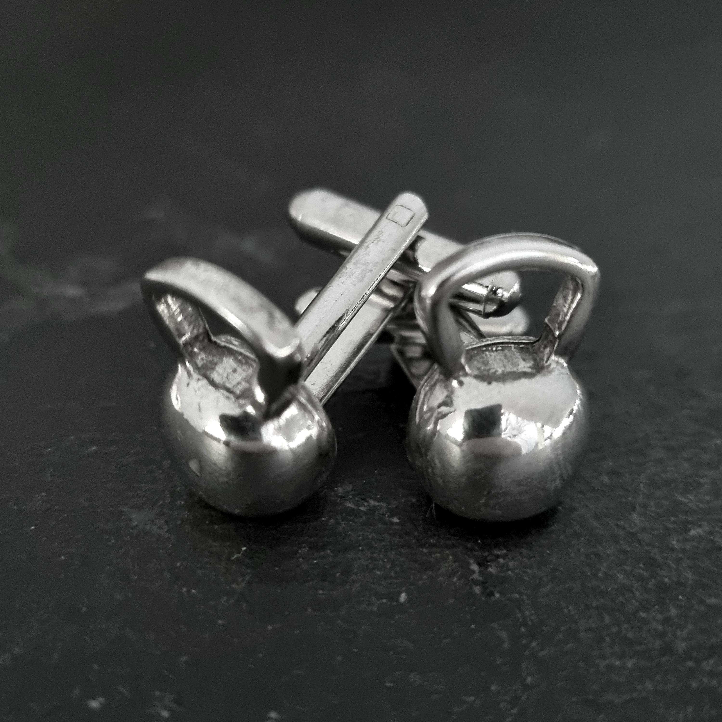 ⭐ Cufflinks Kettlebell Metall Silver Plated Steel wire brush.