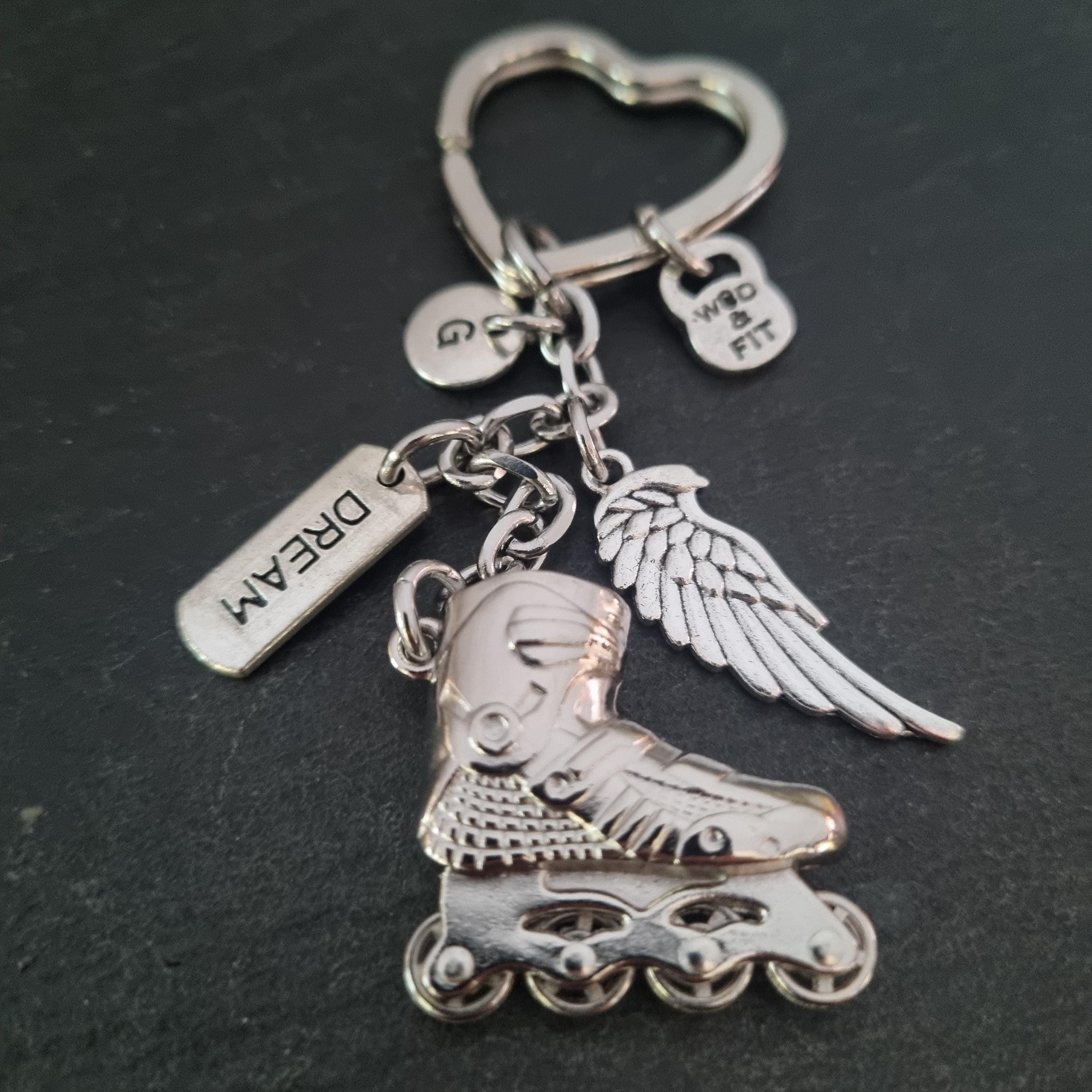 Custom Skate keychain I Love Skatingthe Ideal gift for inline skates lovers, line hockey, skater, skating lover gift, roller, figure skating