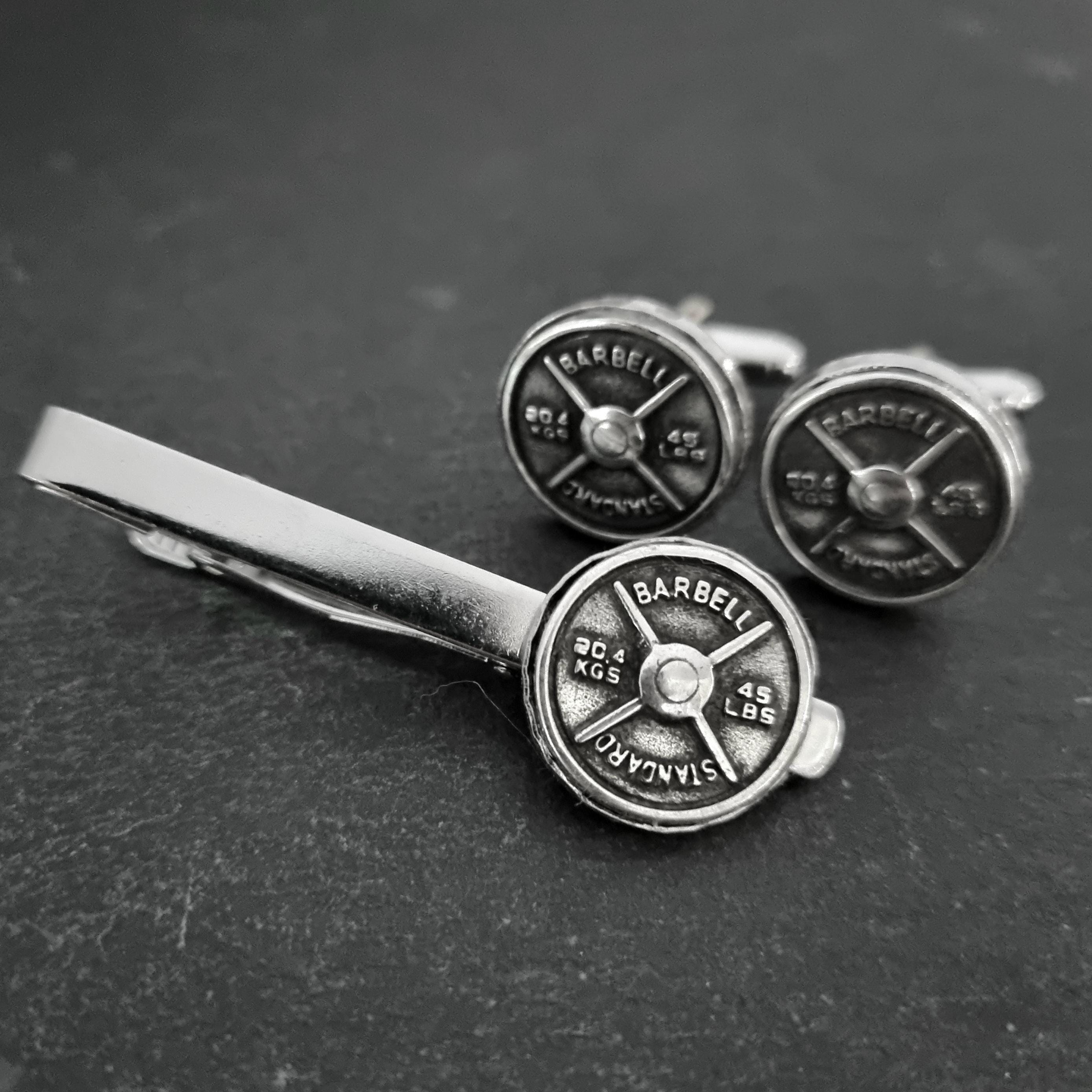 ⭐Cufflinks Weight Plates Barbell Standard 45lbs Metal
