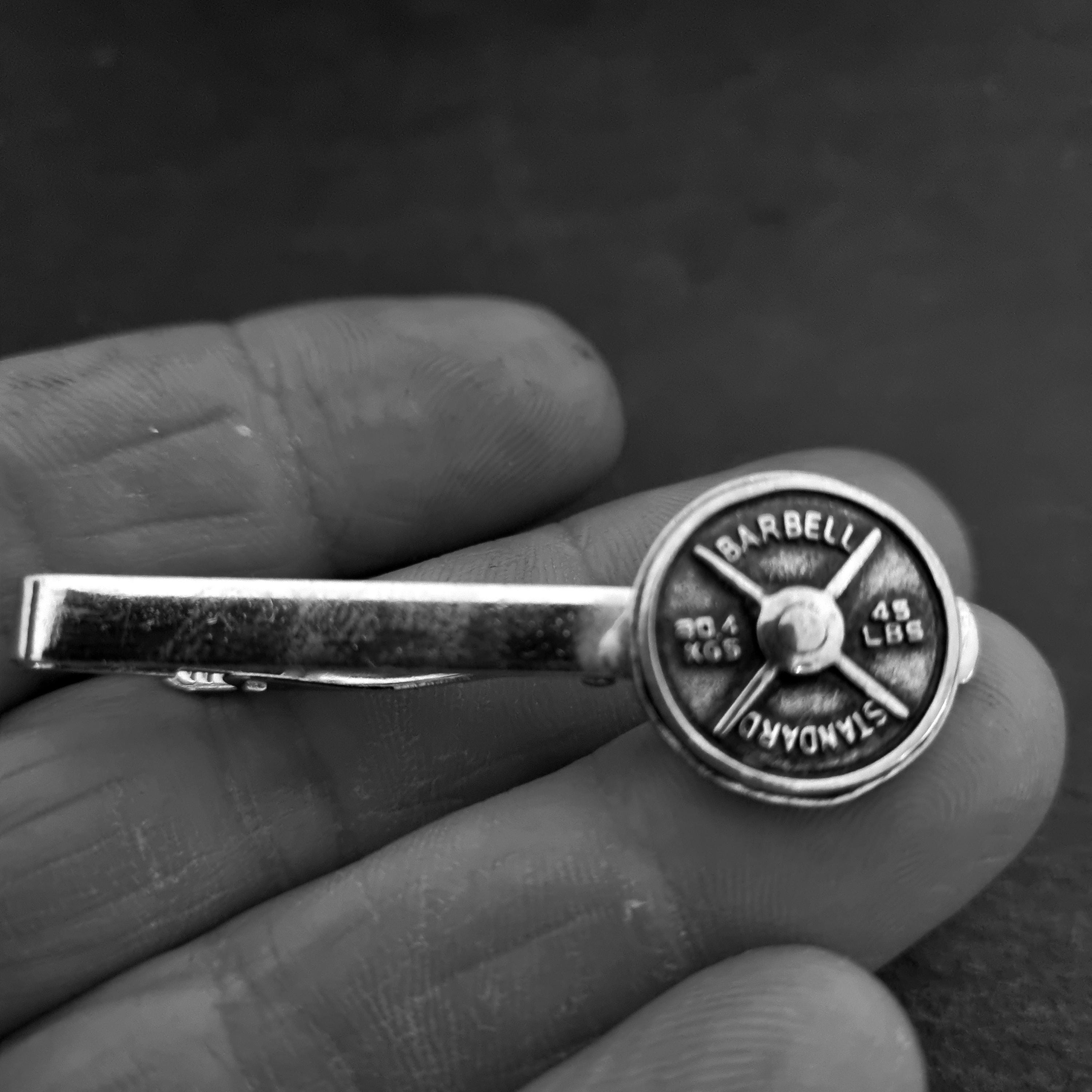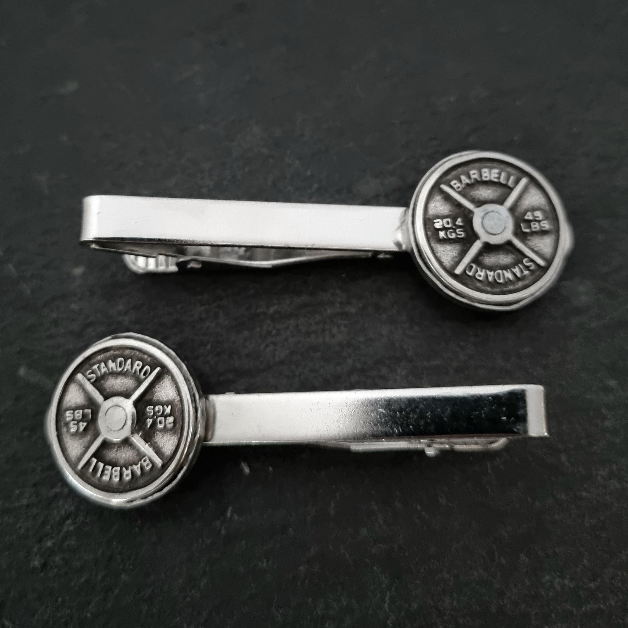 Tie Clip Steel wire brush, rhodium with metal silver plate Weight Plate