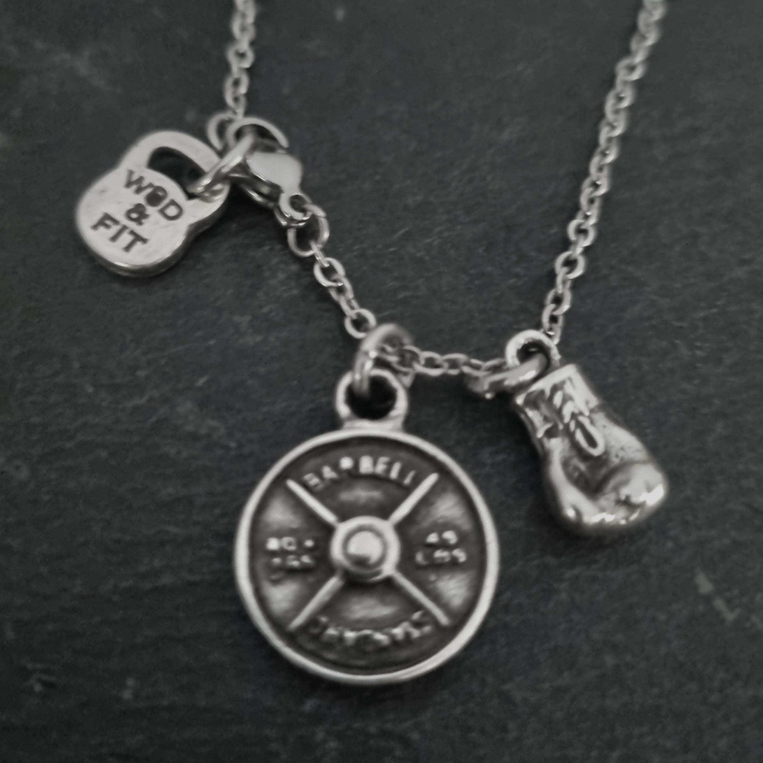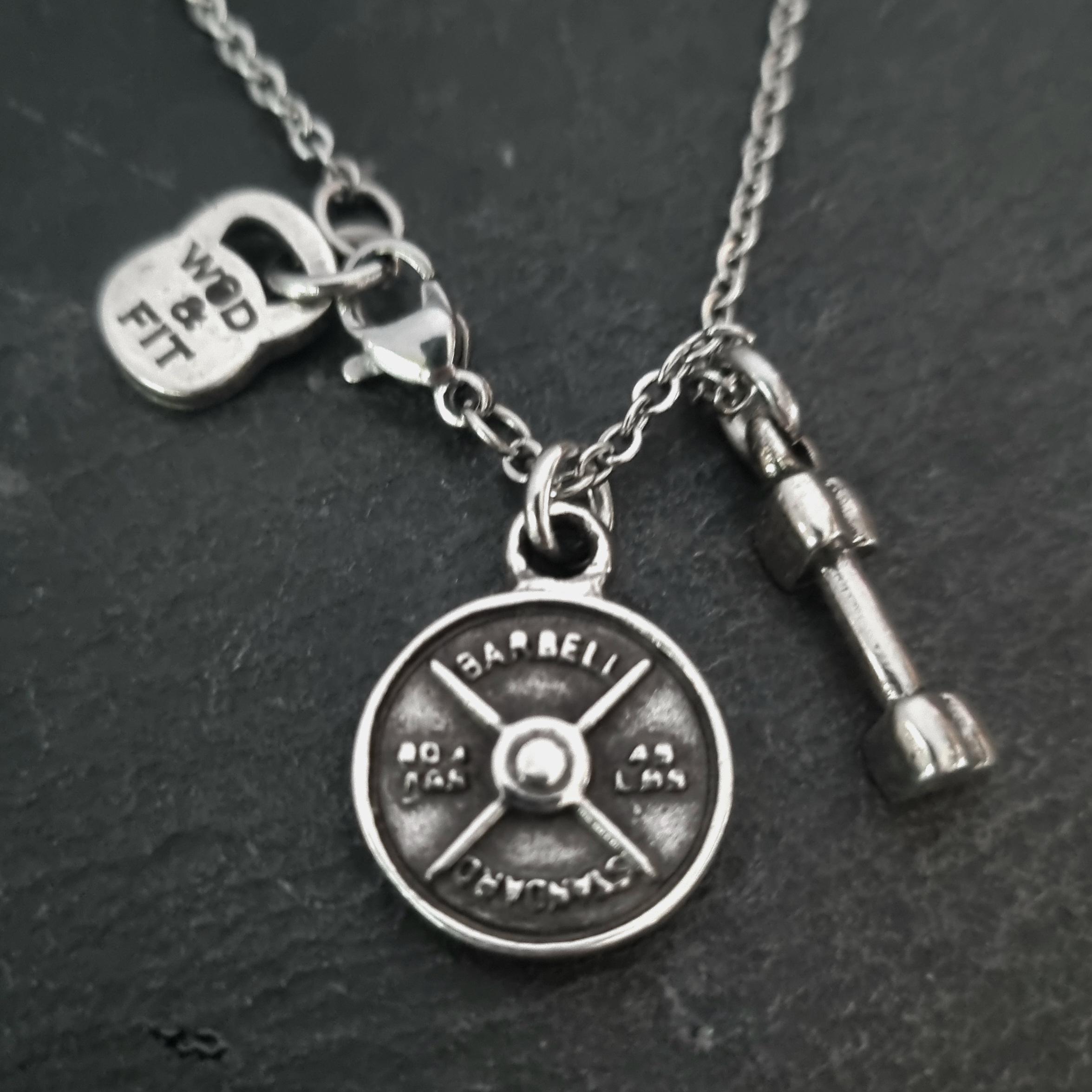 This unisex necklace features a 45lbs barbell plate pendant with a beautiful silver metal finish, paired with a high-quality stainless steel chain.