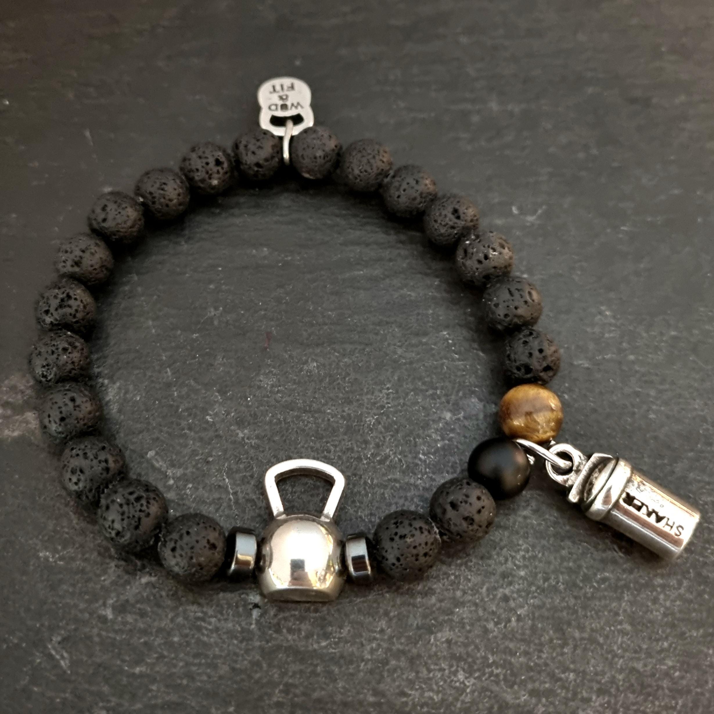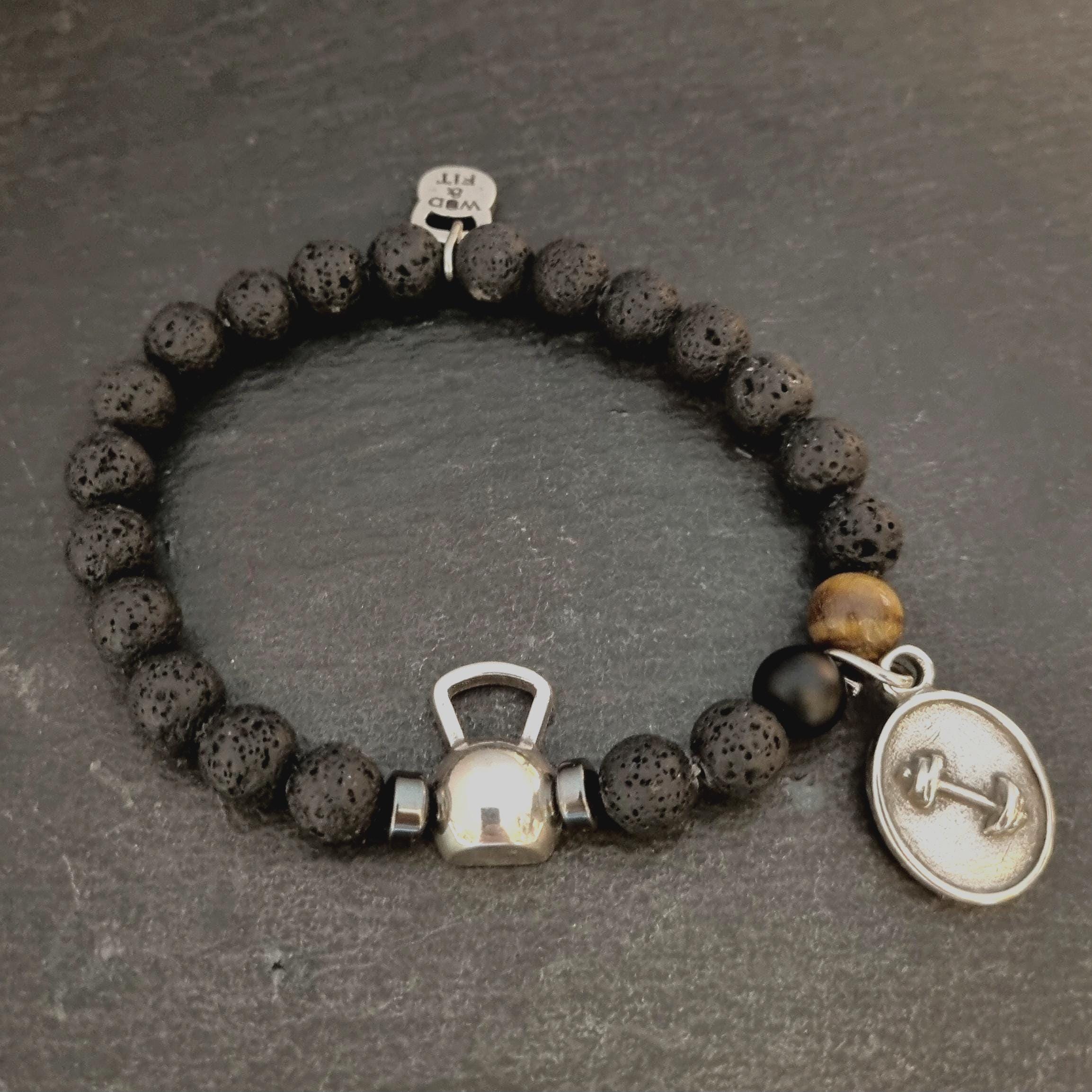 GYM Bracelet Kettlebell Swing Lava Natural Stone & Motivation by Wod & Fit