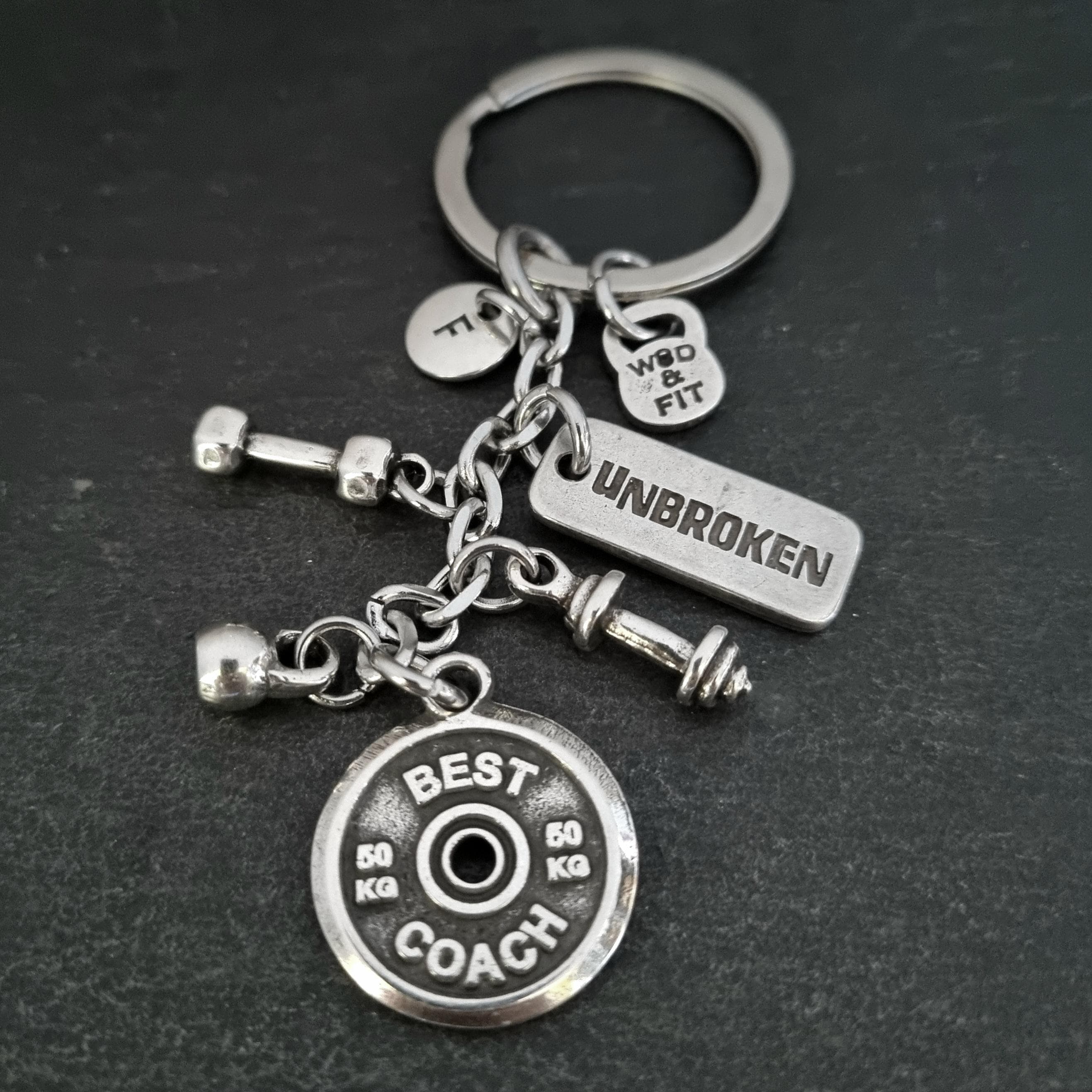 Gym Keychain Best Coach Ideal gift for lovers of gym, bodybuilding, weightlifter, Fitness girl, Crosstraining,, Motivation gift gift for him, gift for her, personalized couple gift Wod & Fit Original.