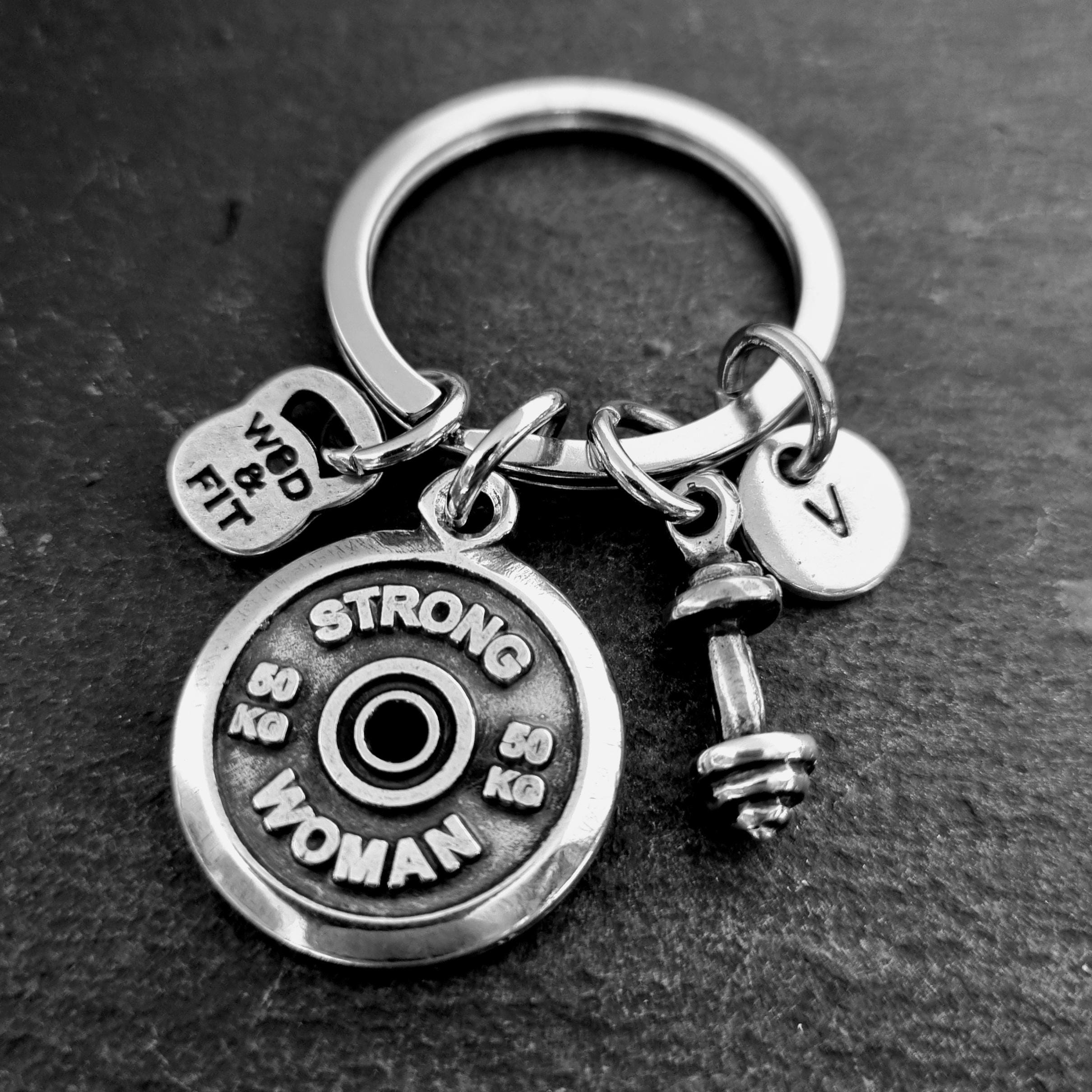 ⭐This keyring moivational Weight Plate, Barbell & Initial