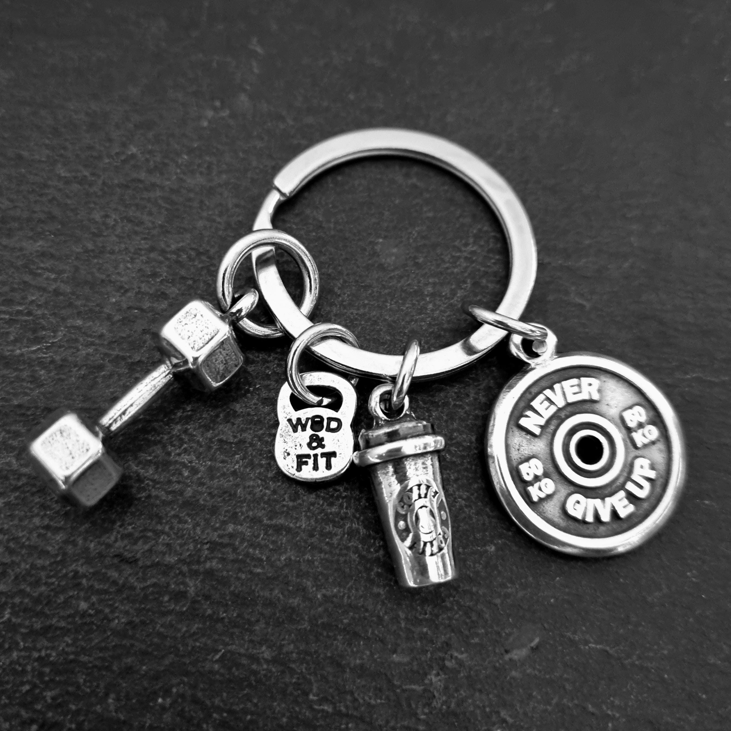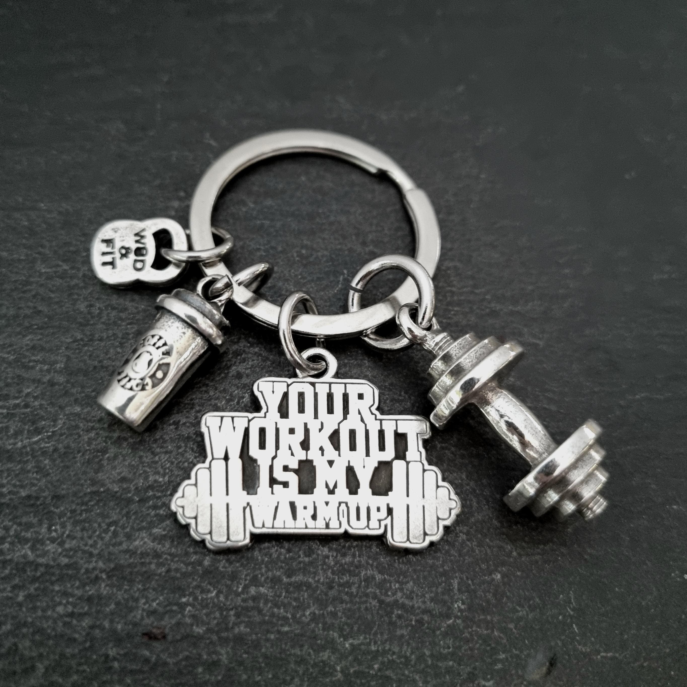This handmade fitness keychain is the perfect gift for gym lovers, CrossFit athletes, HYROX competitors, boxers and anyone who can't live without coffee and training.