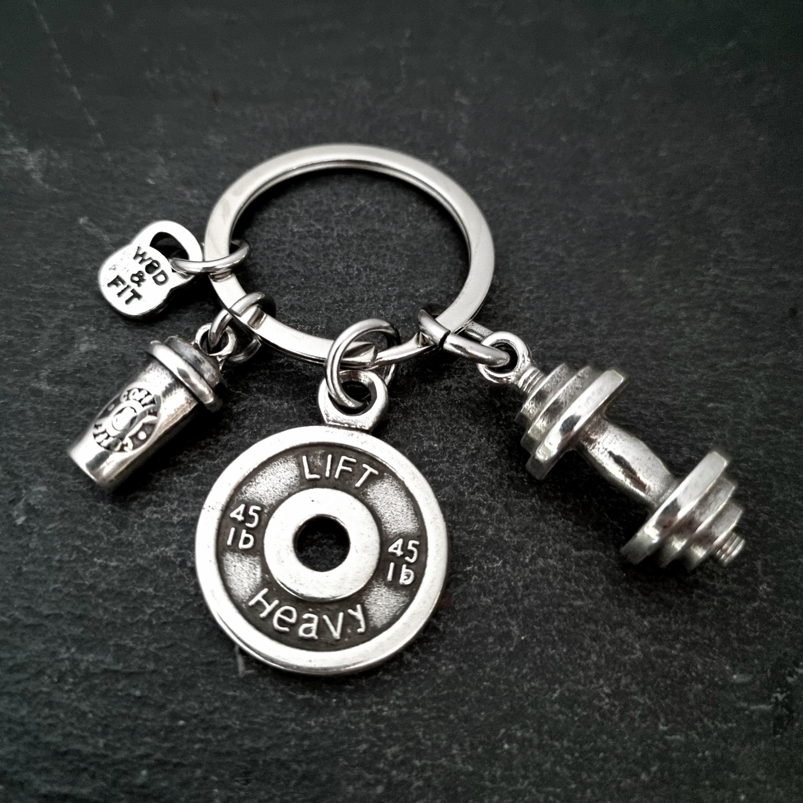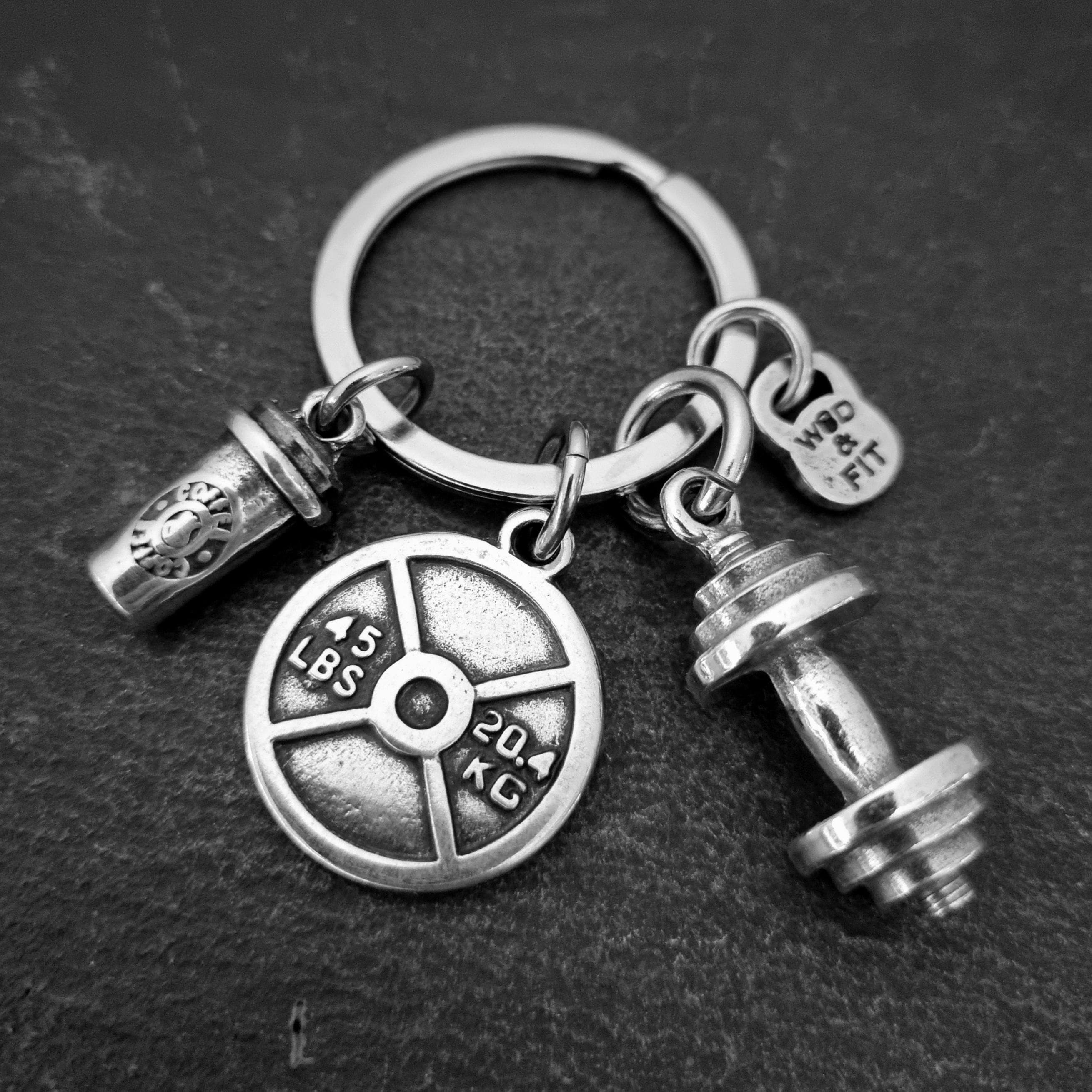 Key ring Dumbbell, Coffee Workout MotivationWeight Plate 50kg With your Motivational Word, Coffee Drinkware and Big Dumbbell.