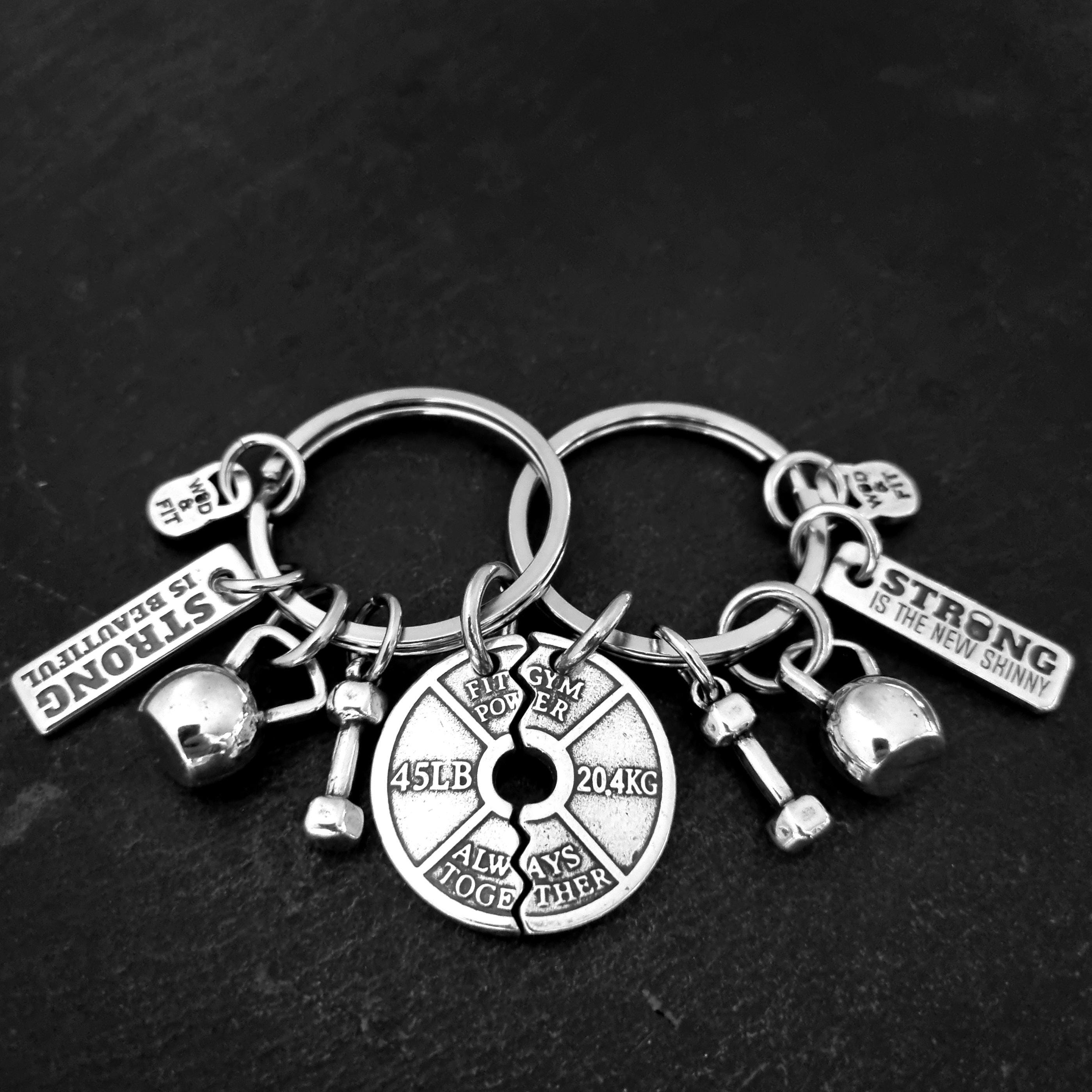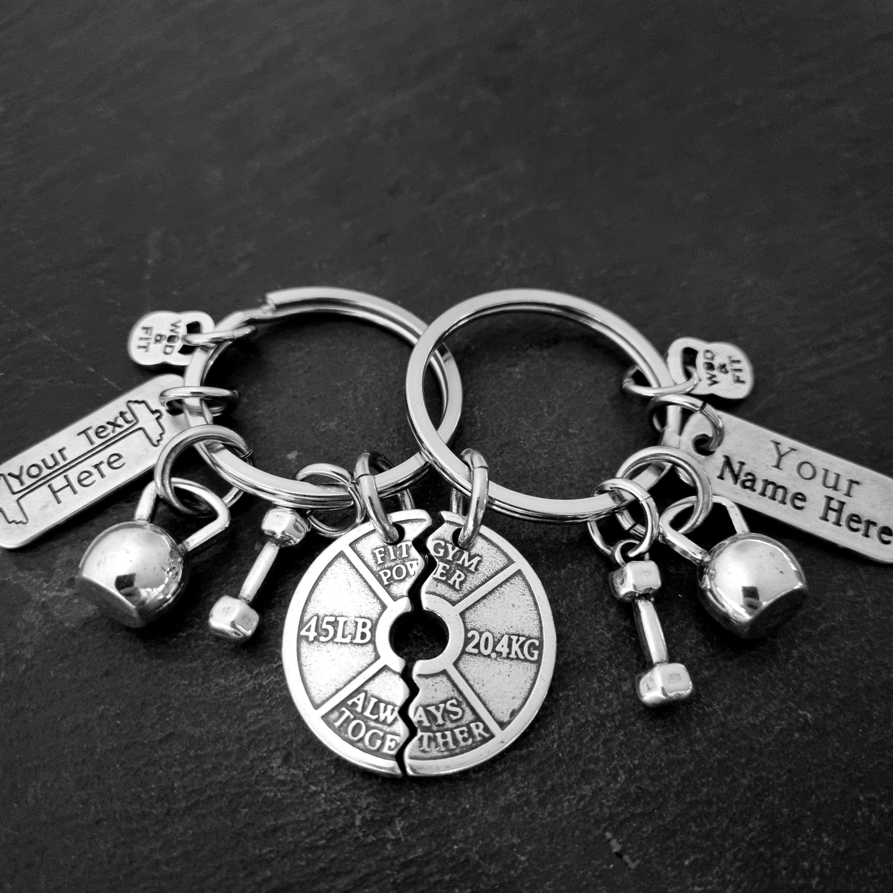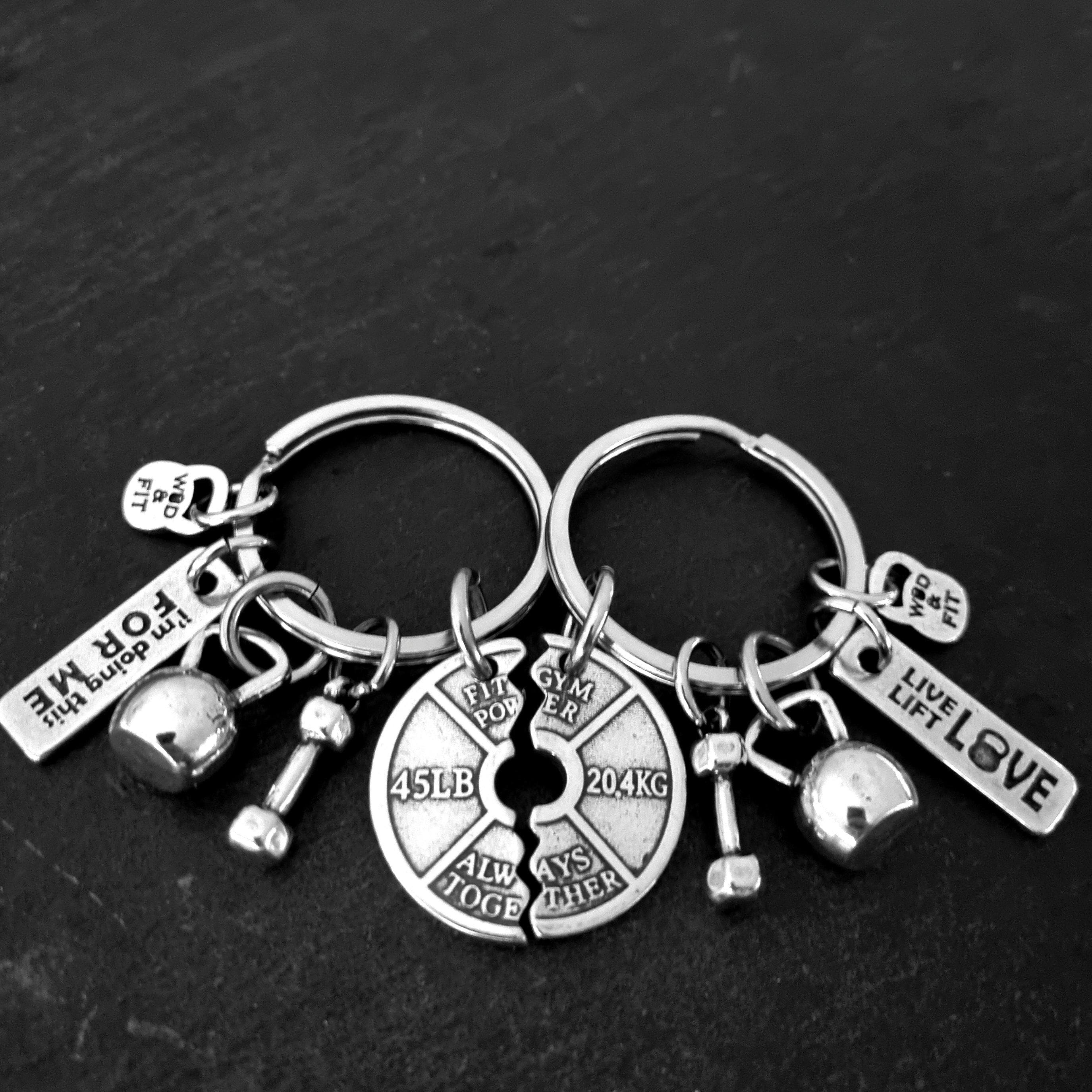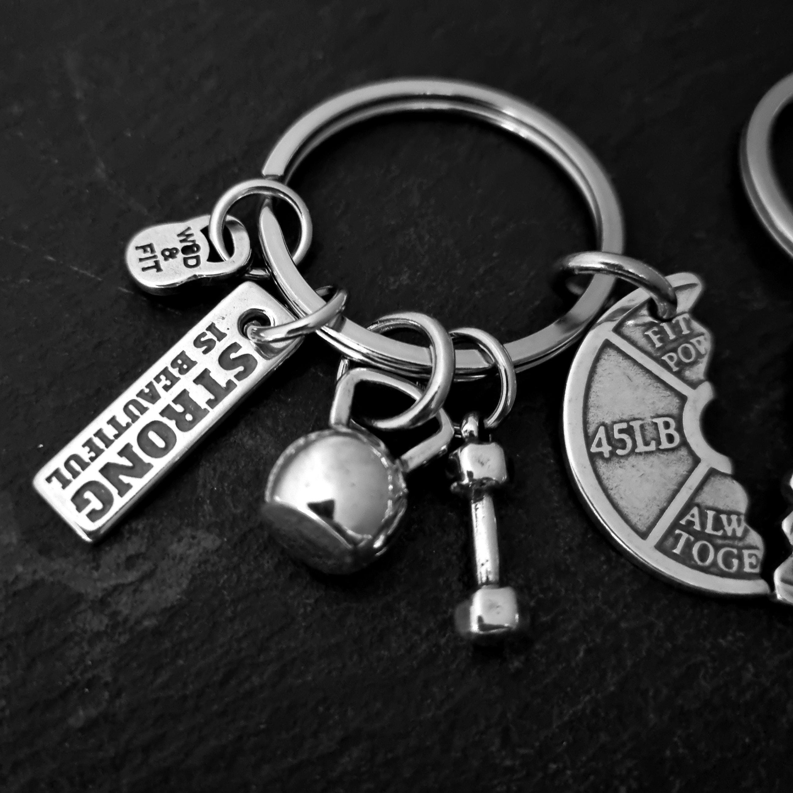 Set 2 Gym Keychains Ideal gift for lovers of Fitness, bodybuilding, weightlifter, Crosstraining, Personal Trainer, Power lifter, Motivation gift gift for him, gift for her, personalized couple gift Wod & Fit Original.