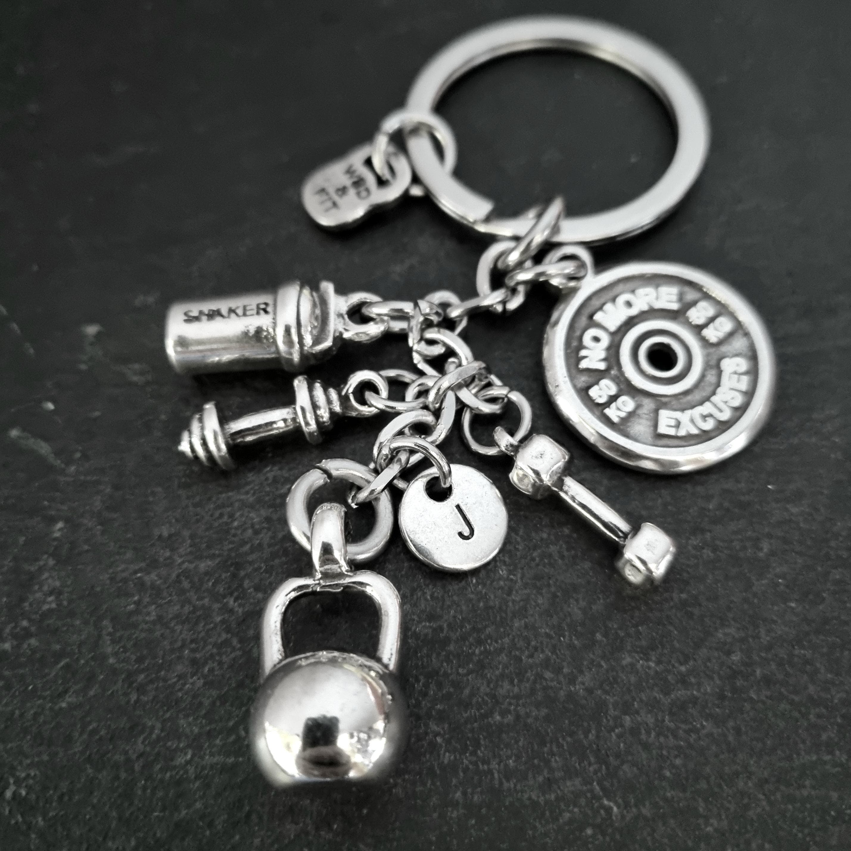 ⭐Gym Keychain, Kettlebell, Initial, Dumbbell Hex, Barbell, Shaker Bottle & Motivational Weight Plate.
