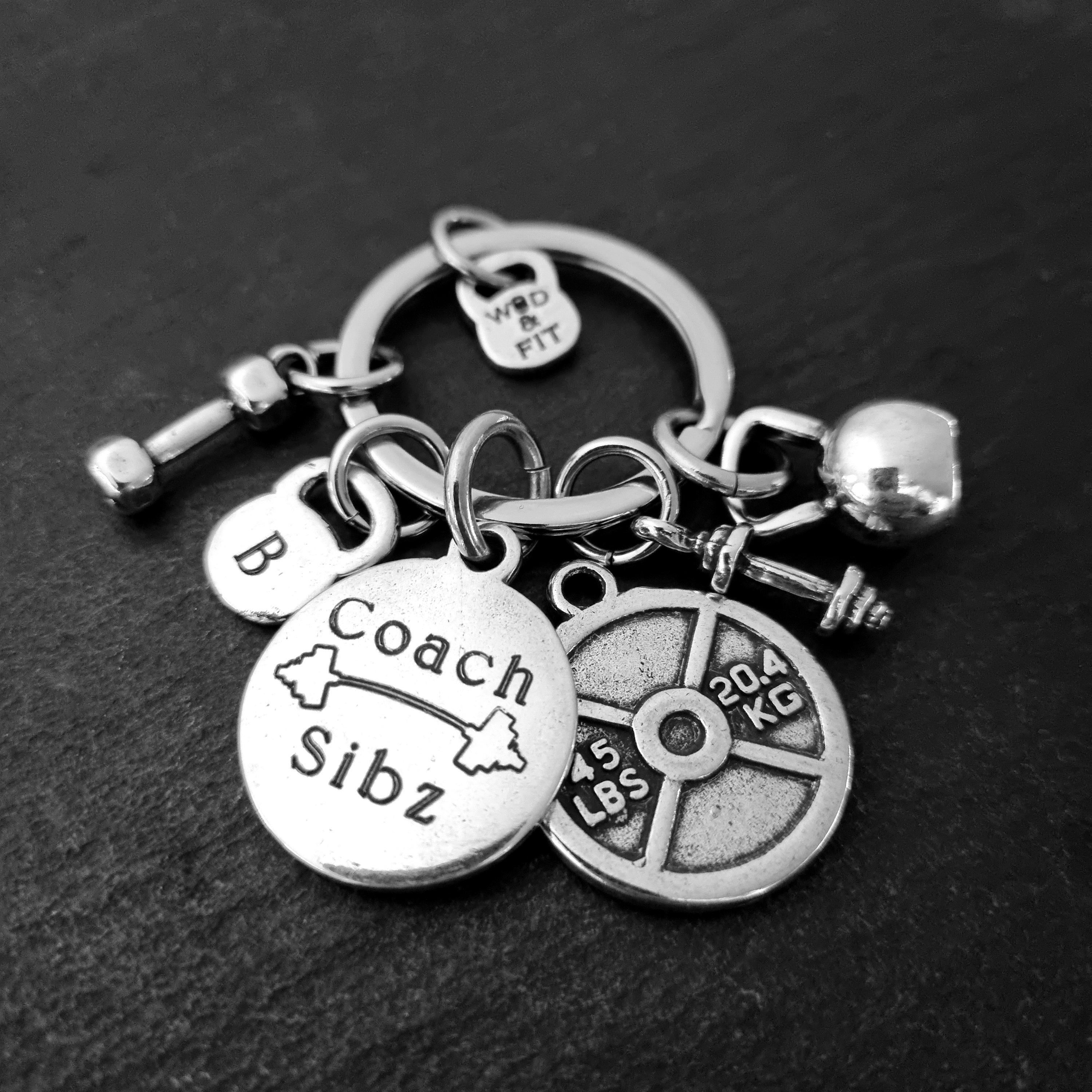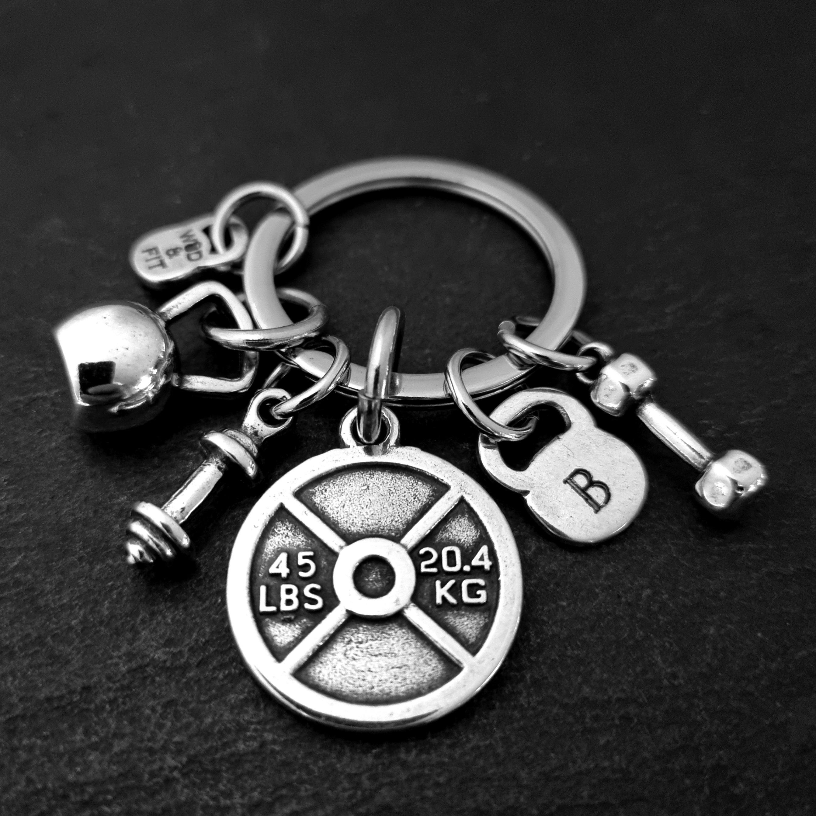 Gym Custom Keyring 45lbs Lumberjack Workout Kettlebell Initial by Wod & Fit