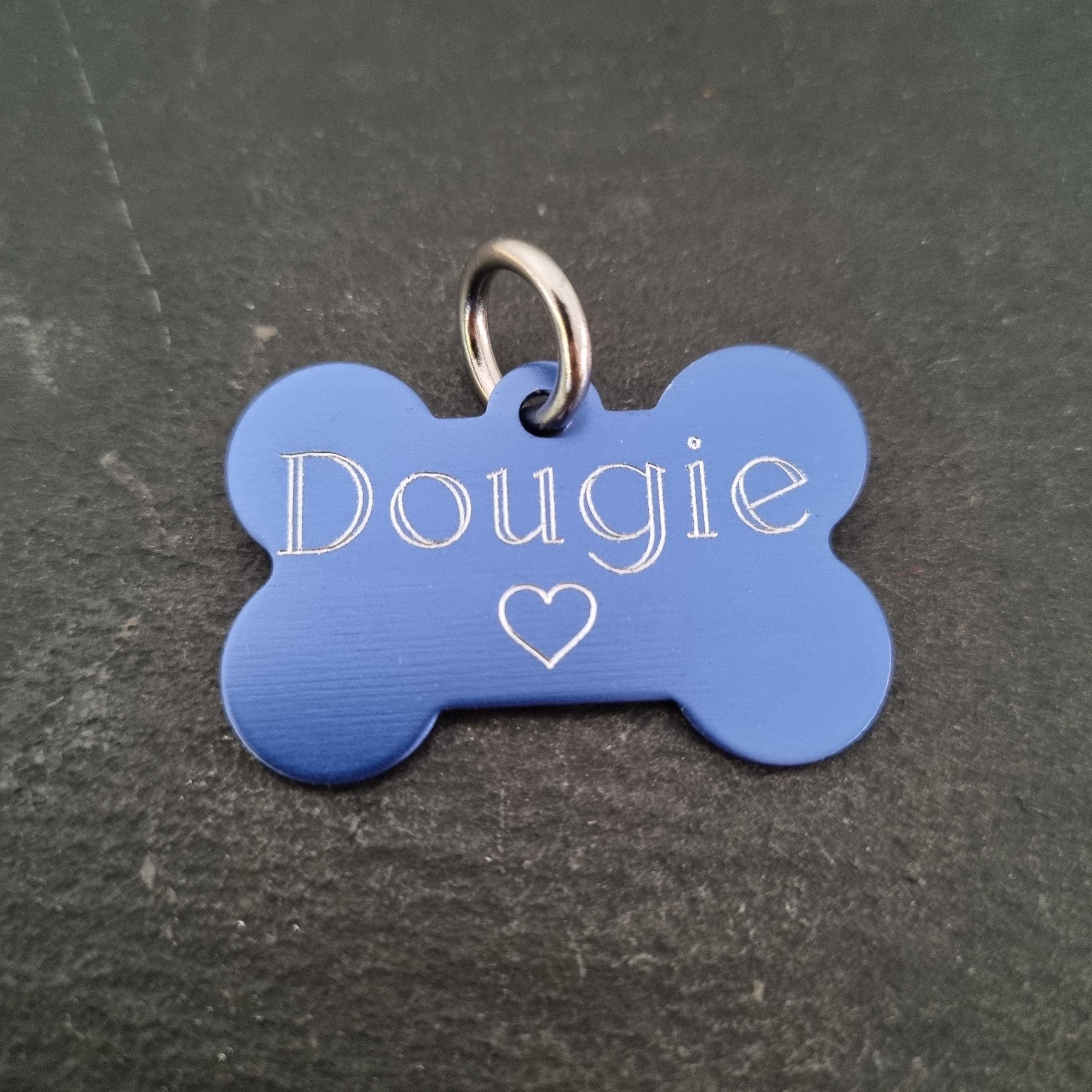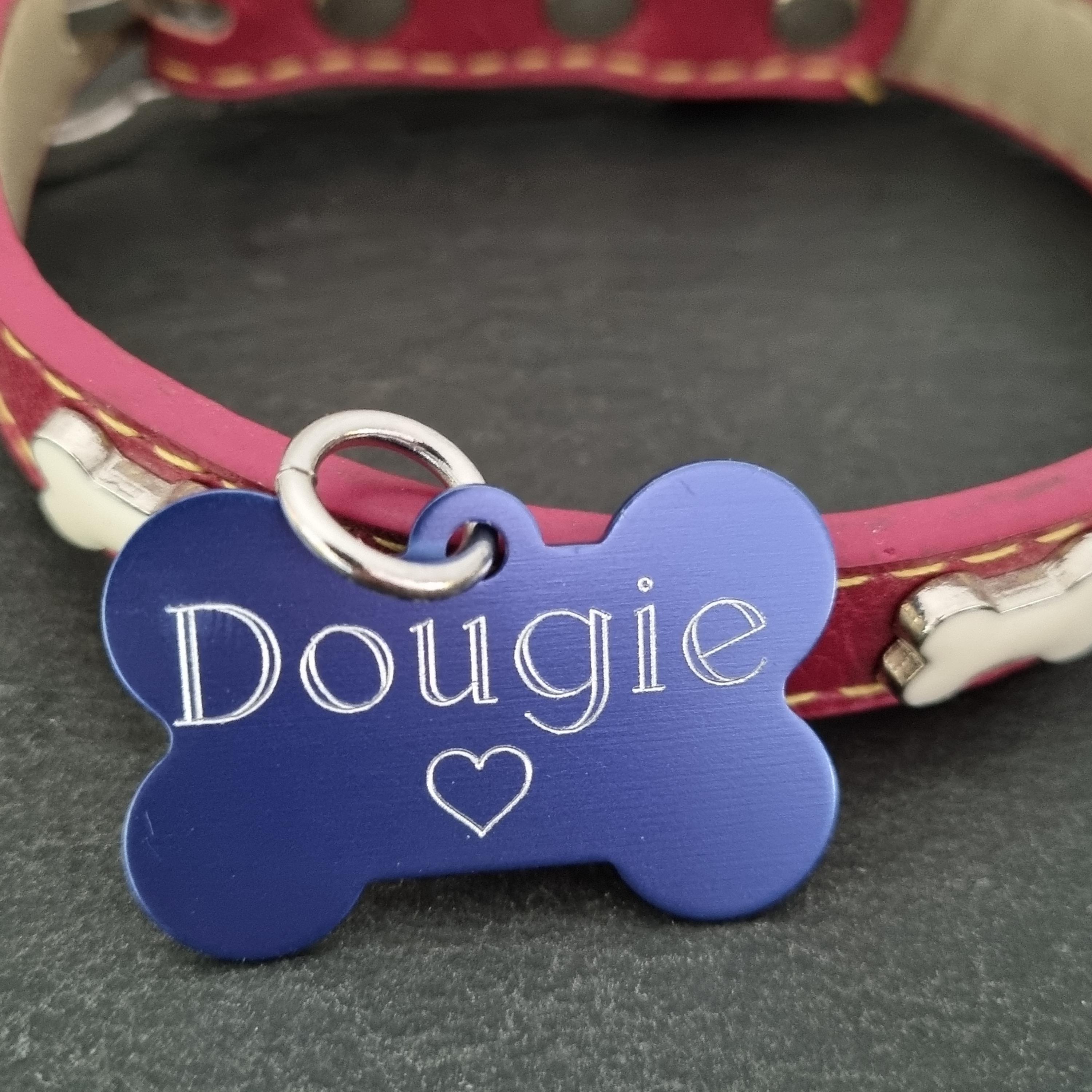 Aluminum Bone Custom Tag with your personal Message.