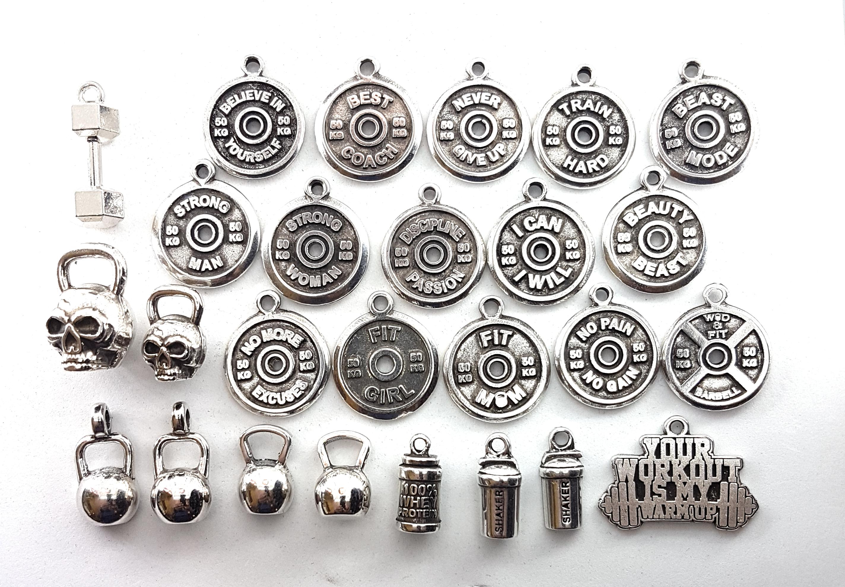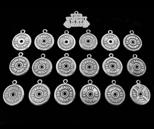 ⭐Charms Motivation Weight Plate Word all in metal silver plated ideal for Bracelet anc necklaces.
