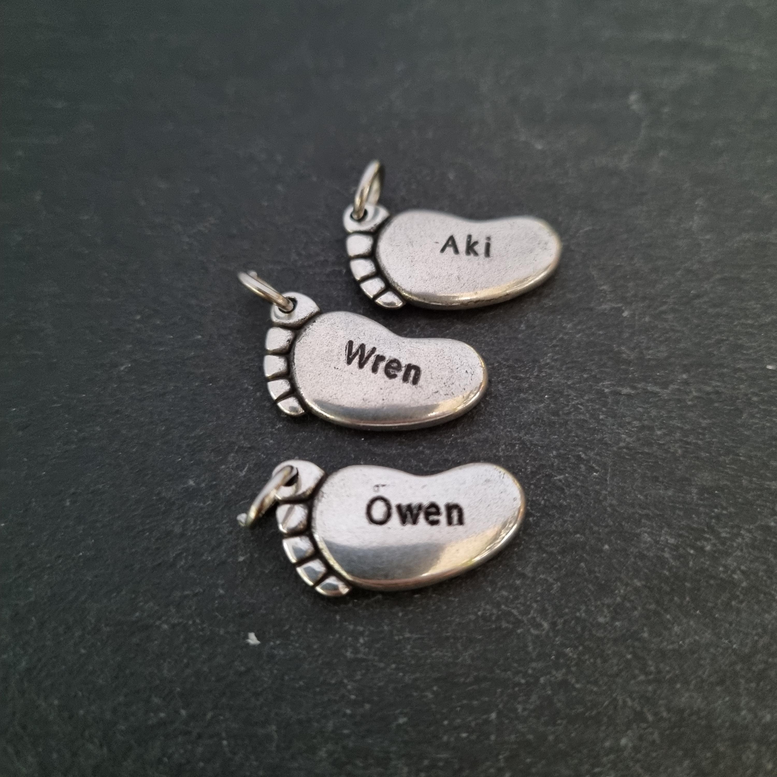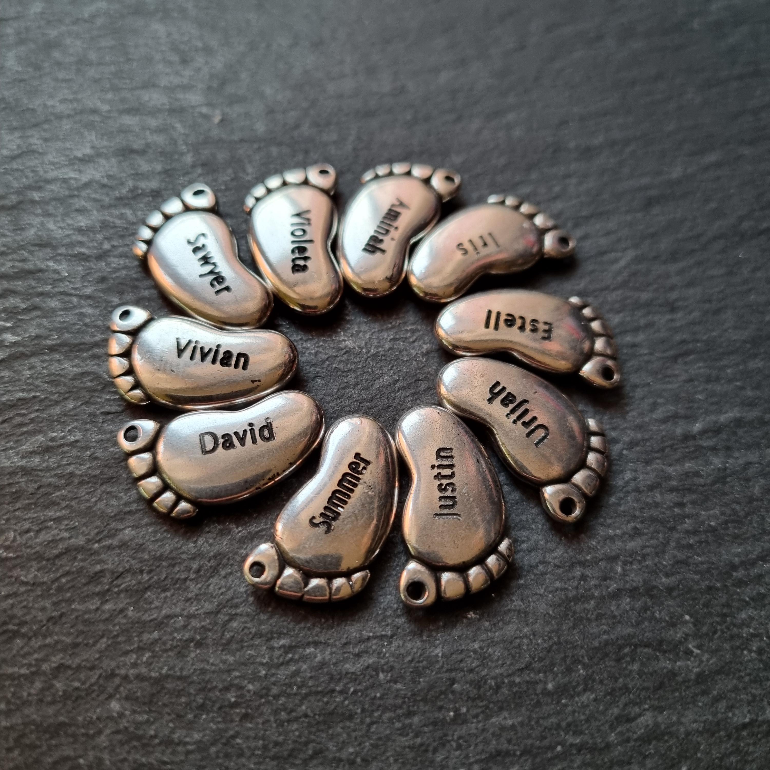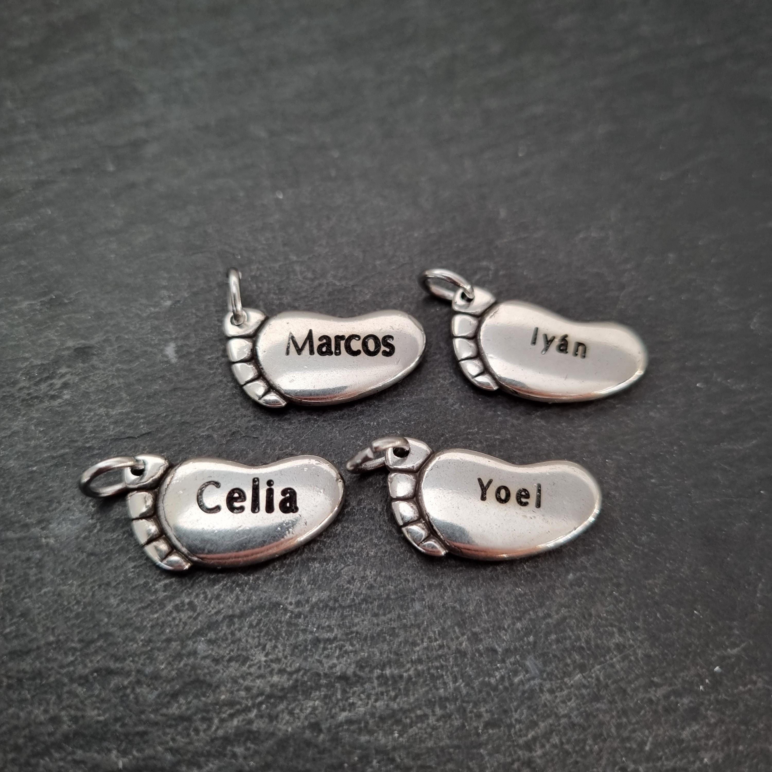 Personalized charms, foot name, personalized pendant, name charms, baby foot, bracelet charms, chain pendant, personalized pendant, mom gift, grandma gift