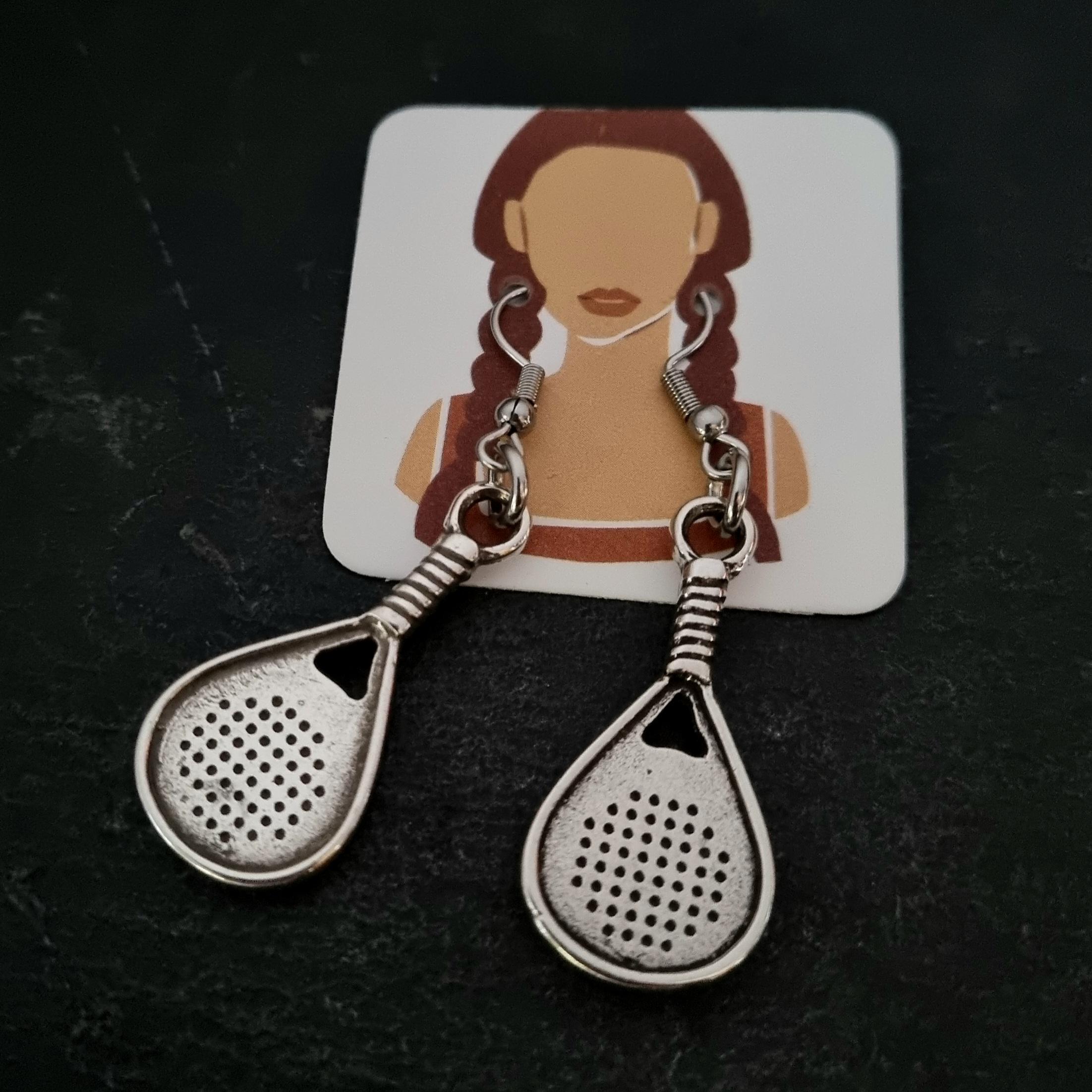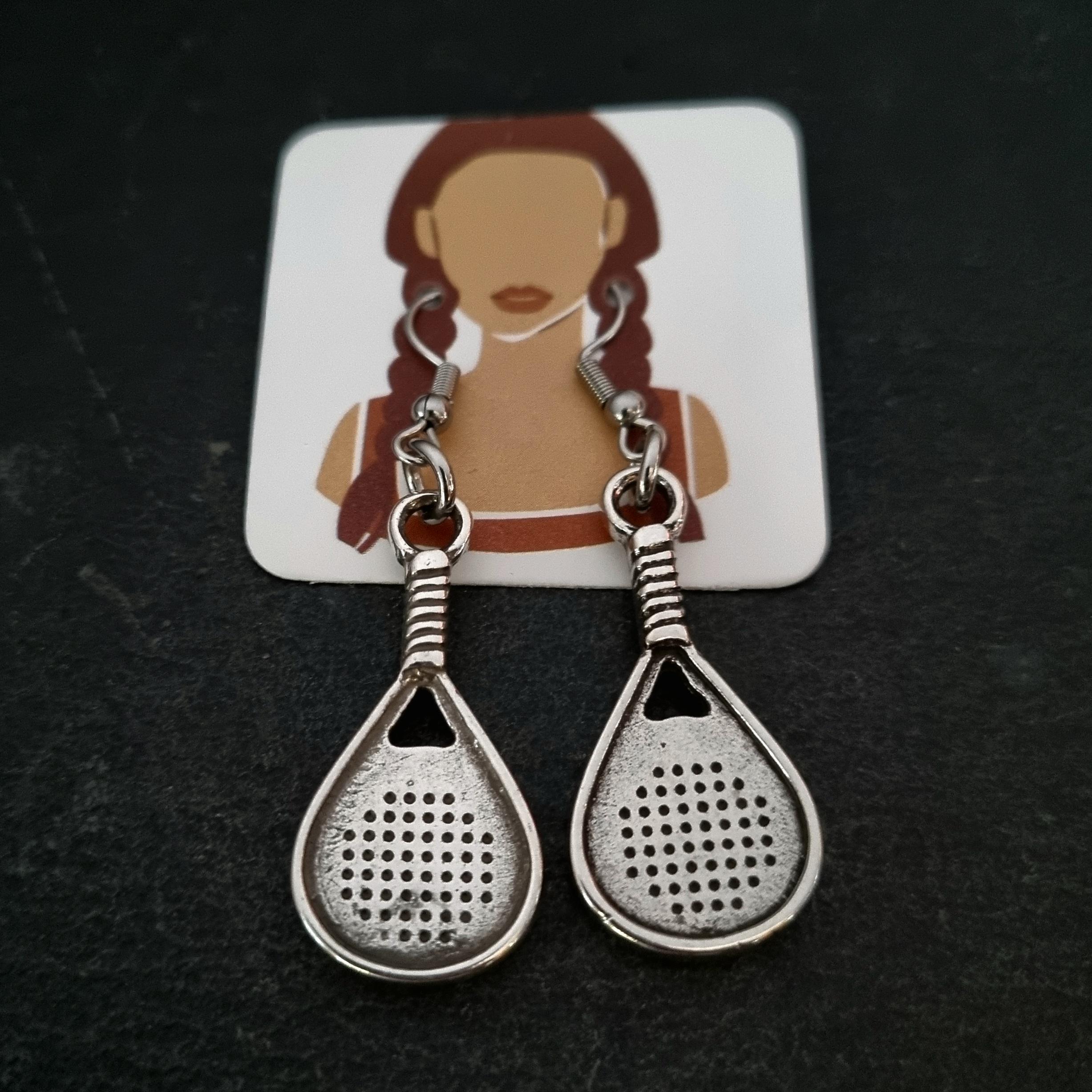 Earrings Hook Stainless stell with Paddle/Padel/Tennis Silver Plated